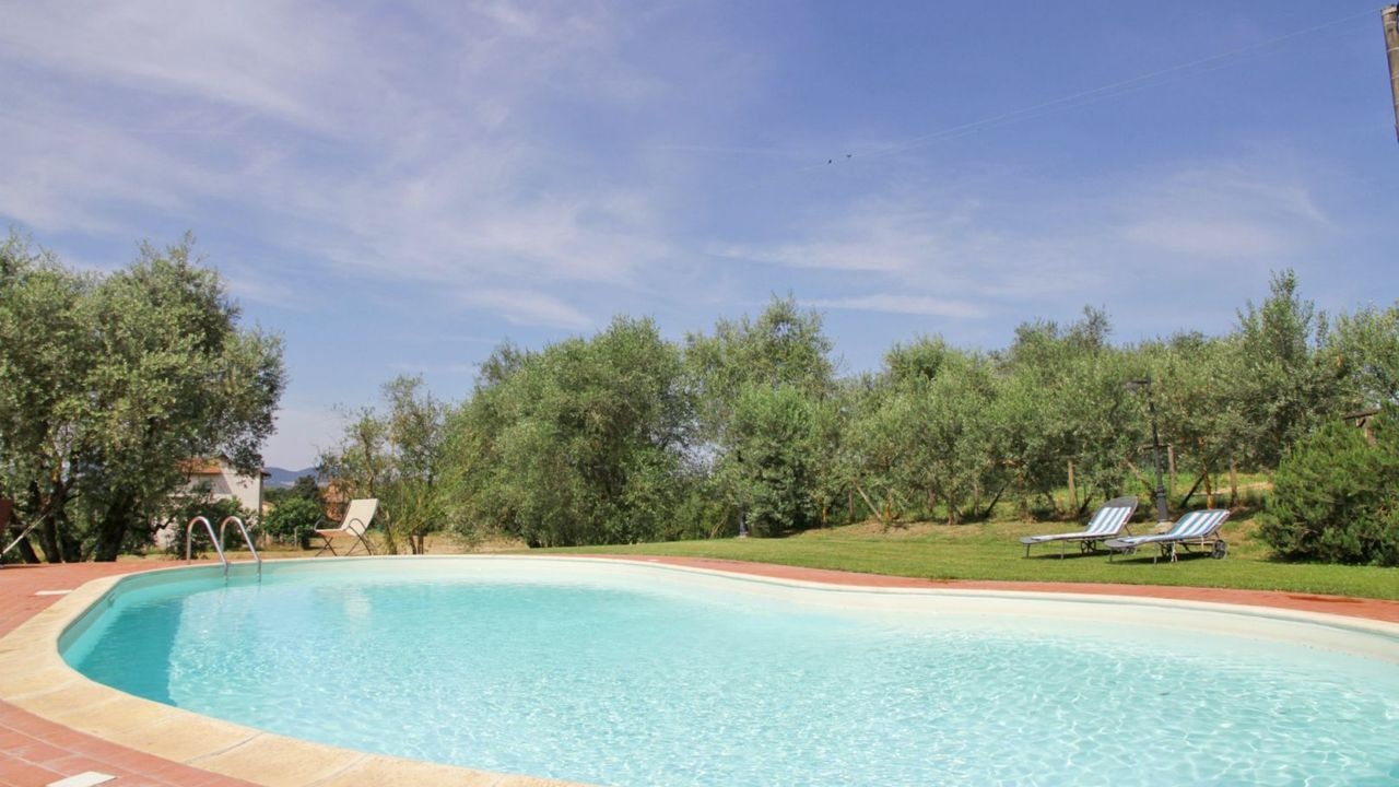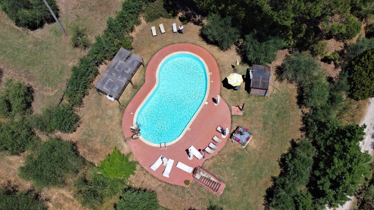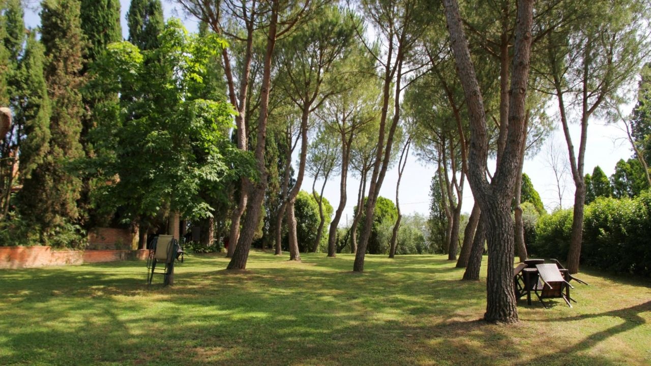 In front of the farmhouse stands a pine forest leading to the swimming pool (6 x 12 m), surrounded by a lawn with automatic irrigation.