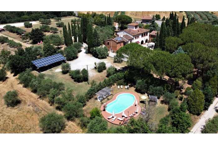 Outside, a large area equipped with garden furniture is the ideal place to relax and admire the magnificent view of the hills of Siena.