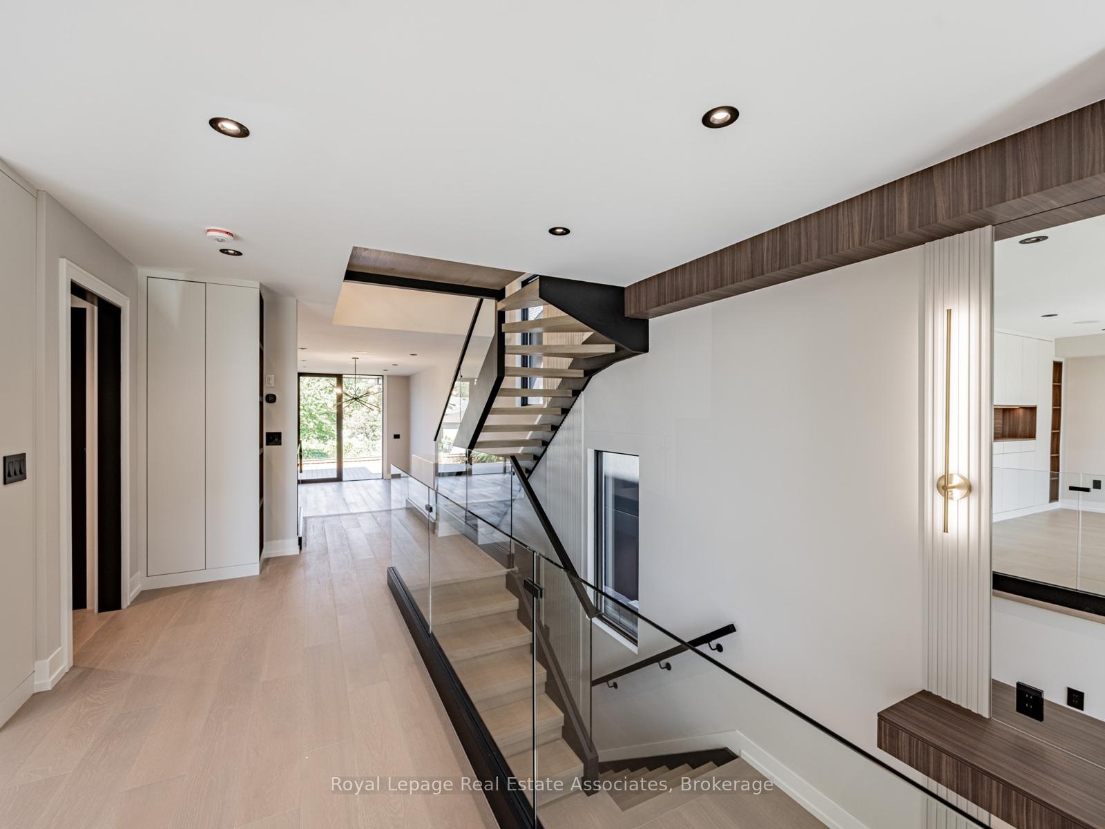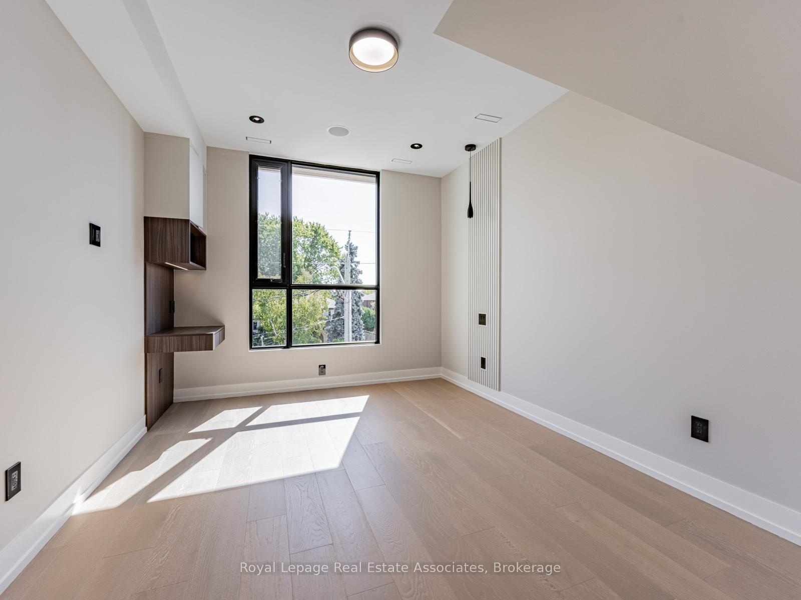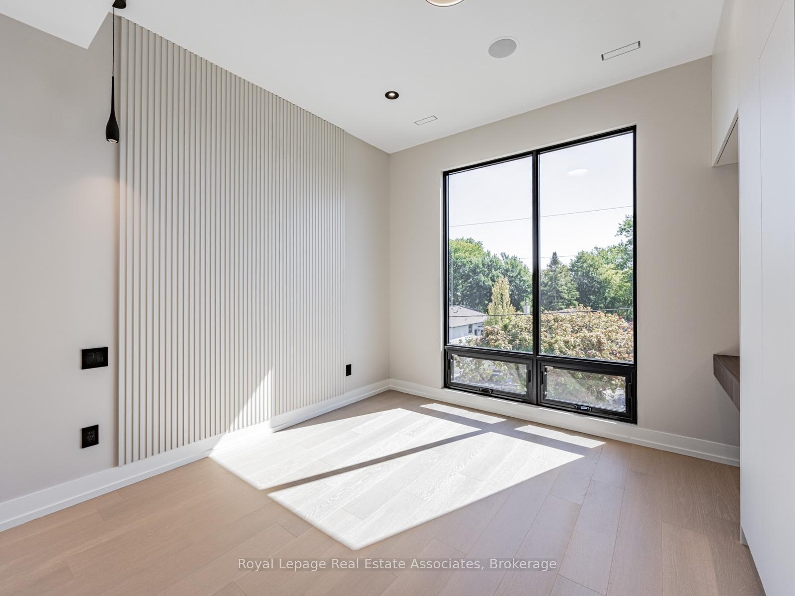 Luxury, perfected. A Montbeck Developments masterpiece yours to move into today! This masterfully designed open-concept home exudes sophistication with white oak flooring, soaring ceiling heights, and floor-to-ceiling windows that flood the interiors with natural light. Seamless indoor/outdoor living is achieved with the living room, dining room, and kitchen each opening to a partially covered balcony patio perfect for year-round enjoyment. At the heart of the home, the bespoke designer kitchen makes a bold statement in both form and function. Outfitted with top-tier Fisher & Paykel appliances, exquisite quartz countertops with full-height backsplash, and an oversized waterfall island, its an entertainers dream. An abundance of thoughtfully integrated storage enhances both style and practicality. The adjoining living and dining spaces radiate sophistication and warmth, featuring custom millwork and a sleek linear electric fireplace that serves as a striking focal point. The primary suite boasts a spa-inspired ensuite with soaker tub, glass shower, dual-sink vanity, and a fully customized walk-in closet with illuminated built-ins and tailored cabinetry. Three additional bedrooms each offer custom desks, built-in closets, and stylish ensuites with designer finishes. The finished lower level expands the living space with a large family/recreation room, 3-piece bath, radiant heated floors, a wet bar, and a rough-in for a home theatre or fitness studio. Additional features include a versatile front room for office or formal living, integrated ceiling speakers, and an attached garage with a striking black-tinted glass door.