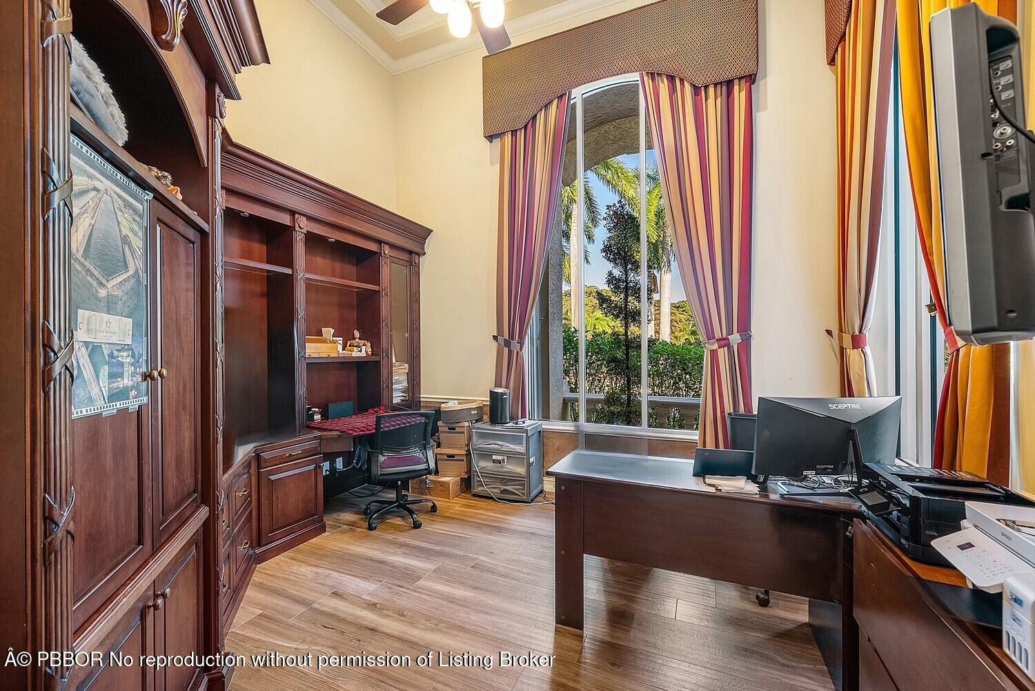 Set within the exclusive, gated club community of Breakers West—one of Palm Beach County's most prestigious private enclaves—this property embodies prestige, privilege, and privacy. Residents can enjoy a refined, low-density lifestyle anchored by 2 Championship designed gold golf courses, an elegant clubhouse, fine dining, tennis, fitness, and a highly social private-club atmosphere, available through a Sports & Social membership. Renowned for its manicured grounds, privacy, and understated luxury, Breakers West offers the Palm Beach lifestyle just minutes from the island, world-class beaches, Worth Avenue, private aviation, and Palm Beach International Airport—delivering exceptional value at this level. Located in the coveted Estate Section, 1811 Breakers West Court is tucked away on a quiet cul-de-sac and sits on one of the largest lots in the entire community approximately 0.85 acres where luxury living is framed by sweeping golf course views and complete privacy. This impeccably maintained one-story residence offers four en-suite bedrooms, a large custom-built private office, soaring ceilings, and exceptional natural light, creating an effortless flow ideal for both everyday living and elegant entertaining. In addition to the four suites, the home also features a well-appointed powder room. Members enjoy the privileges associated with access to The Breakers Hotel.