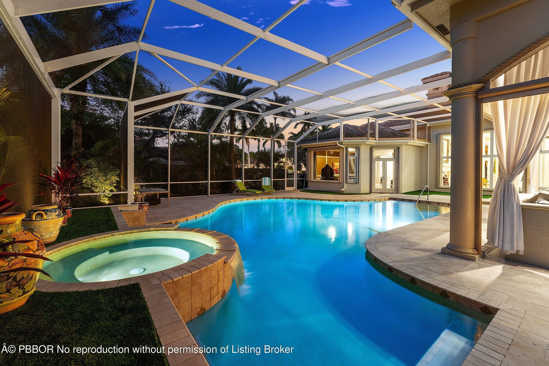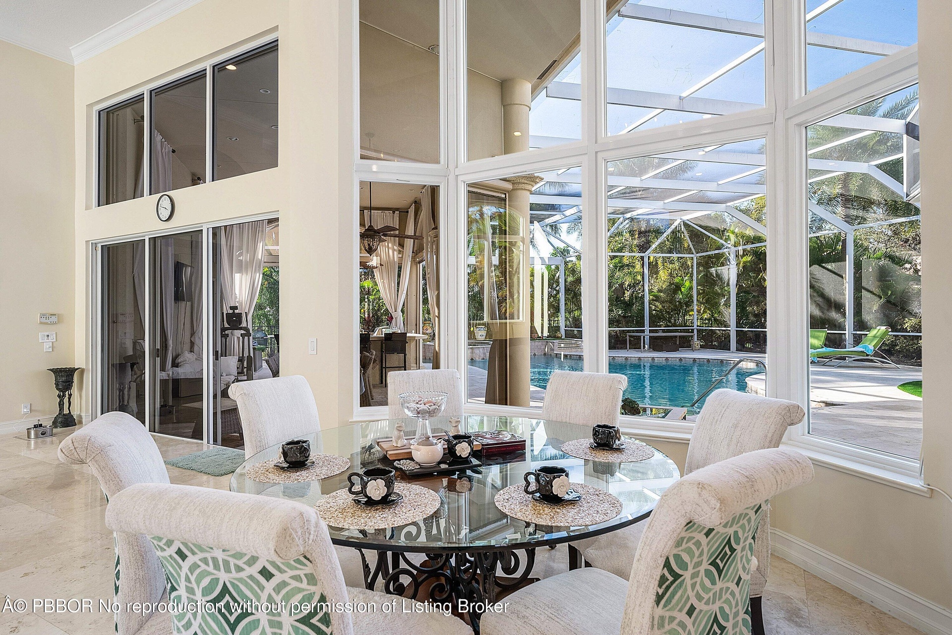 Outdoor living is a standout, featuring a heated saltwater pool and spa-one of the largest pools in the enclave-a screened enclosure, electric patio partitions, a newly updated pool deck with artificial turf, and expansive grounds ideal for entertaining or relaxation. Along the side of the home, a private dog park and training area offers a rare, thoughtfully designed space for pets, while golf course views remain unobstructed and privacy is exceptional throughout.