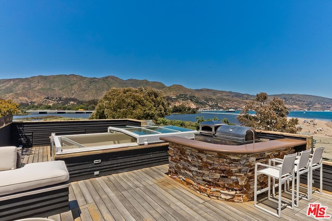 Behind the guarded gates of the legendary Malibu Colony, this East Coast-inspired coastal retreat offers a rare blend of timeless elegance and laid-back luxury.With approximately 64 feet of prime sandy frontage, this residence, designed by acclaimed architect Richard Landry, sits just 50 feet from one of the most iconic surf breaks in the world. The home captures the essence of Malibu living at its most elevated. Four en-suite bedrooms in the main house and a detached guest house are thoughtfully arranged to maximize privacy while maintaining an effortless connection to the sea. Expansive bi-folding glass doors dissolve the boundary between indoors and out, inviting in salt air and an ever-changing canvas of ocean blues. The views, arguably the best in the Colony, stretch across the shimmering coastline, framed by the curve of Surfrider Beach and the distant mountains. From the rooftop spa retreat to the open-air barbecue lounge, every detail invites celebration, reflection, and the kind of inspiration only the Pacific can provide. Just minutes from Nobu, Soho House, and the world's finest shopping and dining, this is more than a home. It is a front-row seat to the Malibu dream, offered on one of the widest beachfront lots in the Colony. An extraordinary, once-in-a-lifetime opportunity to live where luxury meets legend.