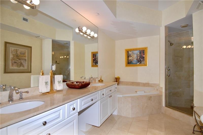 Two bed/ two bath split plan beautiful fully furnished apartment with marble throughout main living, dining, kitchen, laundry & balcony. Floor-to-ceiling windows fitted with custom Silhouette Blinds; both bedrooms fitted with wood Plantation shutters. California King bed in Master & King (twin conv.) Guest bedroom. SE exposure facing pool and tropical lanai with partial ocean views. Enjoy all the amenities of this resort-style beachfront property- 2 swimming pools, a poolside cafe, jacuzzis, beach cabanas, beach attendants, state-of-the-art gym, locker rooms with steam and sauna, clay tennis courts, billiard room, brand new renovated Lobby, Concierge, and 24 hour Security team. Also available for the winter season at $7,900/ month or for the off-season at $4,800/ month.