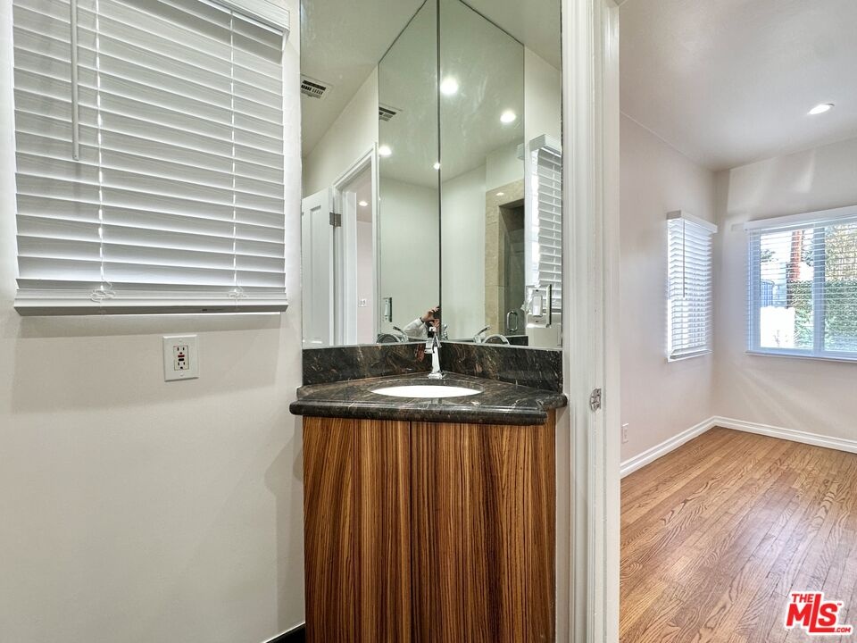 Home next door is under construction thru July 2026. Landlord is offering a generous concession on rental for the duration. Cul d' sacs in West Hollywood are quite rare!. You may think you are dreaming, but this street does exist! This rare offering is located on what many deem "A Secret Street"!! It is prized and maintained by all those fortunate to reside on it. And now, is your opportunity! This beautifully maintained, immaculate, authentic 1940's 2 Bedroom, 2 bath Bungalow PLUS a separate detached 380 sq. ft. auxiliary structure (gym, office space, spare bedroom or multipurpose/media room, replete with hardwood floors) is now ready for a new occupant. The original 1940's oak floors have been beautifully cared for and meticulously maintained. Each of the two spacious bedrooms have their own walk in closets! There is a separate linen closet and even an entry coat closet!. The 20'x14' living room has a working, wood burning fireplace.. The full bath features Zebra wood cabinetry, chrome fixtures and travertine bath/shower. A travertine stall shower boasting body spray features, zebra wood cabinetry and granite floors are featured in the second en suite bath. A classically styled kitchen, thoughtfully rejuvenated with white cabinetry, yards of new quartz countertops, white oak wood laminate flooring, stainless steel appliances and closeted stack washer/dryer. The central dining room opens to a 5'x15' covered patio overlooking new, lush and professionally designed backyard oasis. This home is fully air conditioned with forced air/heat. Lots of room to park off street with covered on site spaces. . Street parking is plentiful and limited primarily to residents. .The gardener is included! NOTE: MLS Square footage includes separate 380 sq. ft auxiliary building. Tenants must have excellent credit!!.