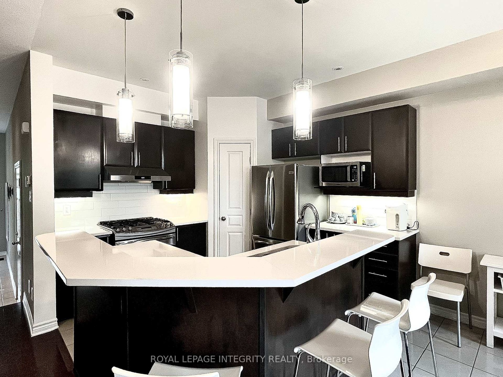SHORT TERM LEASE ONLY, FROM MARCH 1 TO JULY 31. Welcome to this beautifully maintained Urbandale END unit townhouse featuring 3 bedrooms and 2.5 bathrooms, backing onto a ravine with no rear or side neighbours. This home offers a stunning, private, and fully fenced backyard complete with a patio and gazebo, perfect for outdoor enjoyment. Inside, you'll love the modern finishes, hardwood and tile flooring on the main level, wall-to-wall carpet upstairs, large windows, and an open, airy layout. The kitchen features elegant cabinetry, quartz countertops, under-cabinet lighting, a raised breakfast bar, corner pantry, and a bright eating area. The living room boasts a cozy corner fireplace, ideal for relaxing or entertaining. Upstairs, the spacious primary bedroom showcases large windows, a beautiful chandelier, a walk-in closet, and a linen closet, along with a well-appointed ensuite offering ample counter space, a soaker tub, and a separate shower. Located in a great area within walking distance to parks and amenities. Rental application, proof of income (T4 or employment letter), full credit report, and references required.Deposit: $5,300. Short-term lease only, from March 1 to July 31.
