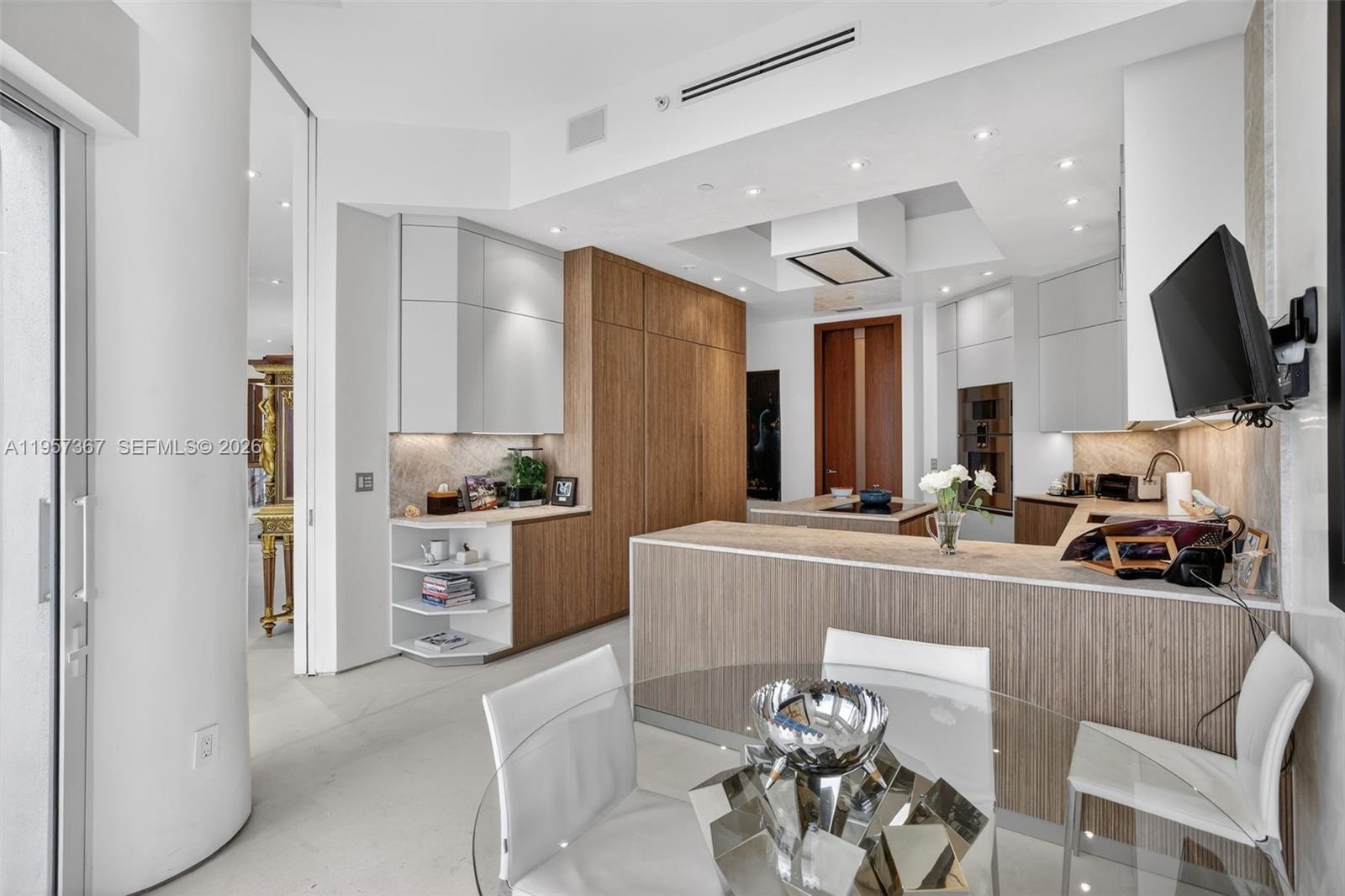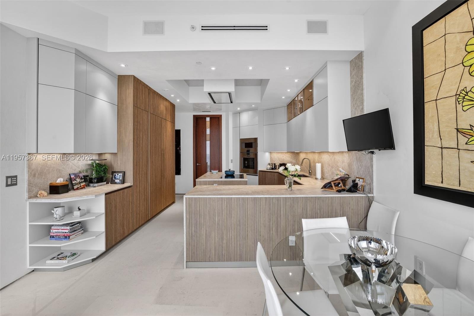Enjoy limestone flooring throughout, custom doors, and the convenience of an internal private elevator. The renovated chef’s kitchen features state-of-the-art Gaggenau appliances, sleek European cabinetry, and stunning Taj Mahal marble countertops that elevate the space with timeless luxury. A rooftop terrace offers the ultimate outdoor setting—decorator-ready and ideal for creating your dream summer kitchen and entertaining space under the Miami sky.