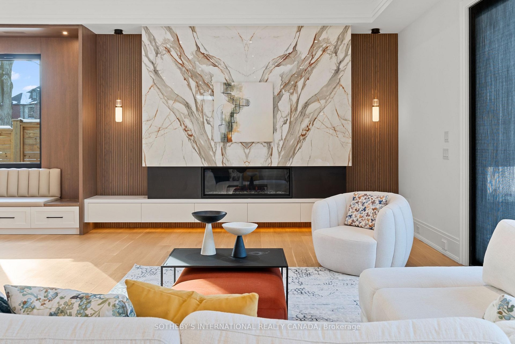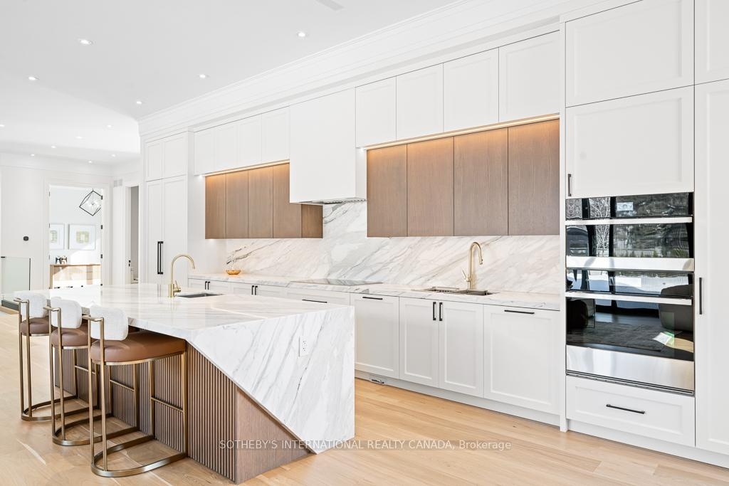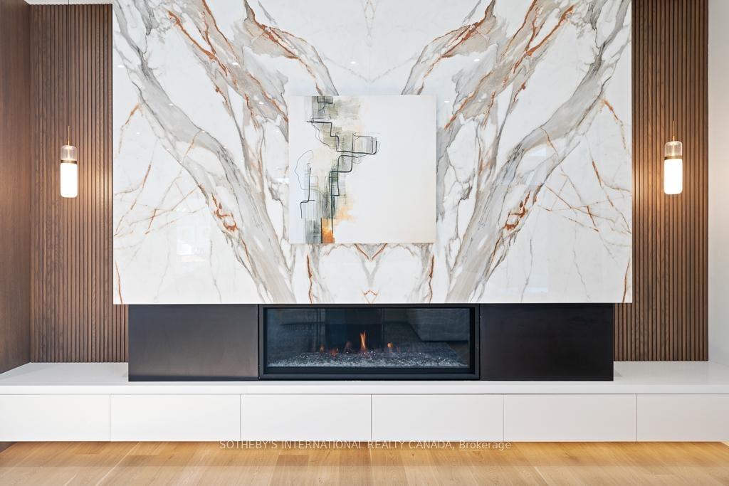 An exceptional custom residence nestled in one of Kleinburg's most coveted enclaves, where refined design meets an unparalleled lifestyle. Just minutes from the iconic McMichael Canadian Art Collection and the charming boutiques, cafés, and restaurants of Kleinburg Village, this home offers a rare blend of cultural richness, natural beauty, and modern luxury.The striking exterior showcases a tall mahogany front entry door, natural stone porch, professionally designed landscape lighting, and composite decking with all-glass railings. The private backyard is an entertainer's dream, featuring a fiberglass inground swimming pool, irrigation system, covered outdoor seating area, and an outdoor gas fireplace, seamlessly extending your living space into the outdoors. Inside, the home is defined by thoughtful craftsmanship and elevated finishes. The main level boasts 11-foot ceilings, engineered hardwood flooring, extra-tall solid wood interior doors, and expansive aluminum windows with integrated screens that flood the home with natural light and offer picturesque views from every room. A stunning interior gas fireplace anchors the living space, while radiant heated floors enhance comfort throughout the main living areas and basement.The chef's kitchen is a true showpiece, appointed with custom cabinetry featuring birch plywood interiors, marble countertops, centre island and backsplash, and premium appliances including a perfect for both everyday living and elegant entertaining. The fully finished walk-out basement offers a versatile layout ideal for entertaining, extended family living, or a private retreat, all while maintaining seamless indoor-outdoor connectivity.Located within walking distance to scenic trails and the heart of Kleinburg Village, and close to excellent public, French, Catholic, Montessori, and private schools, this home delivers an extraordinary lifestyle in a truly timeless setting.