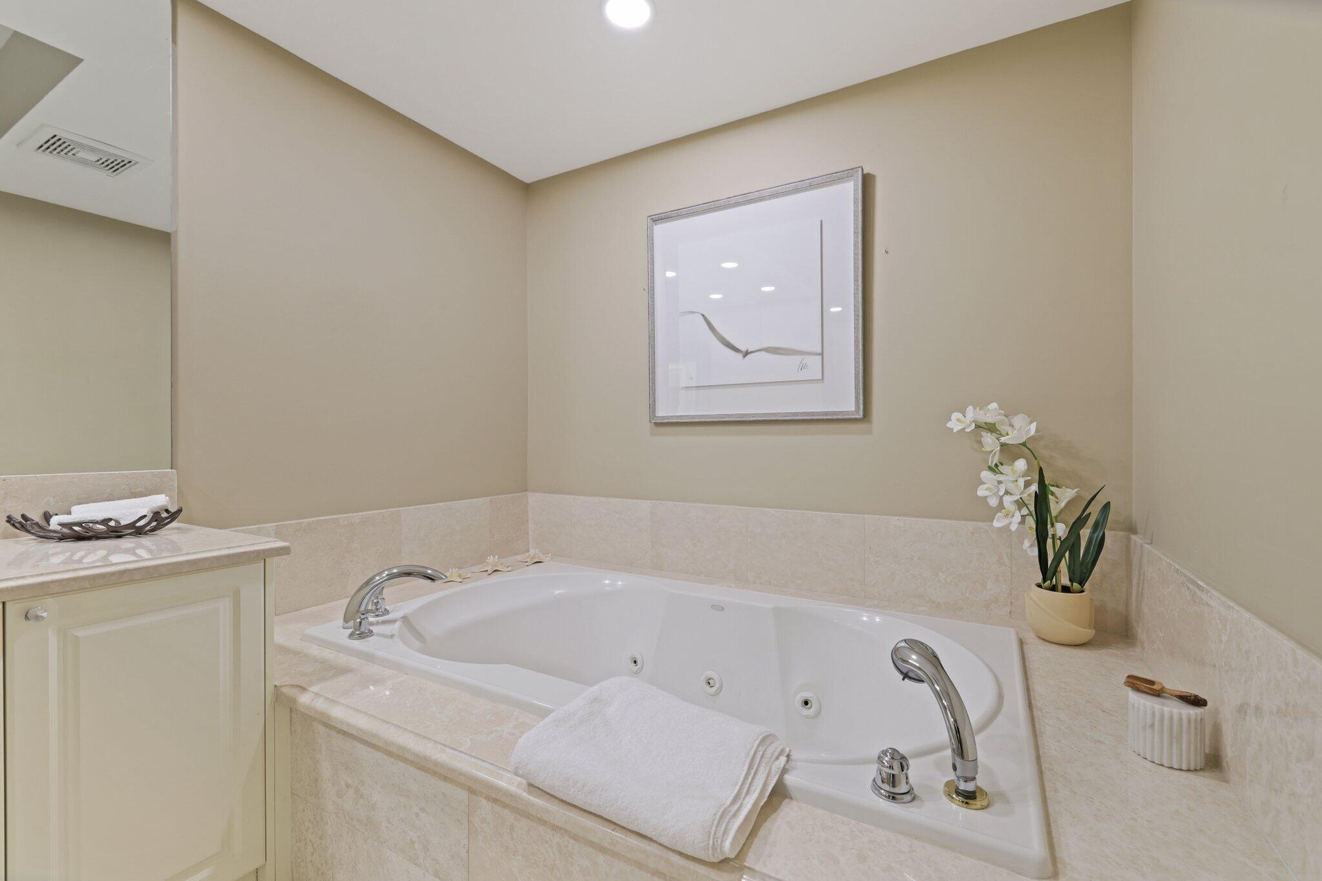 Experience refined coastal living at Ocean Grande, a boutique oceanfront condominium of just 74 private residences on the prestigious Hillsboro Mile. Unit 404 offers a thoughtfully designed layout with dual exposures—Intracoastal and sunset views, and direct Atlantic Ocean views. This spacious 2-bedroom plus den, 2.5-bath residence spans approximately 2,380 square feet and is accessed via a private elevator entry. The open, light-filled floor plan features 9-foot ceilings, marble flooring throughout, and floor-to-ceiling impact windows that enhance both natural light and privacy. Ocean Grande's resort-style amenities include full-service valet and concierge, a two-level fitness center overlooking the pool and ocean, club and business rooms, billiards room, an oceanfront pool, and more