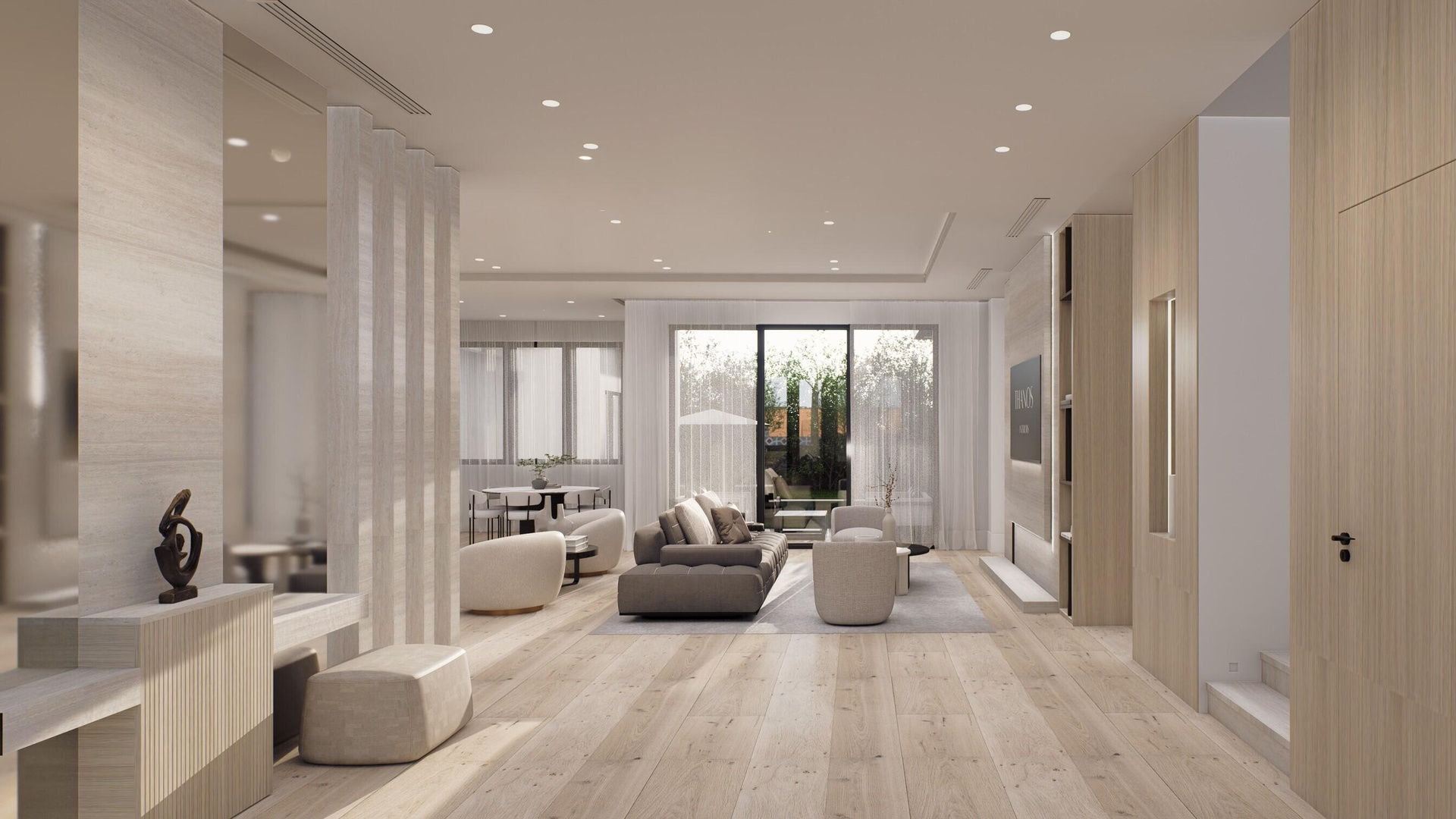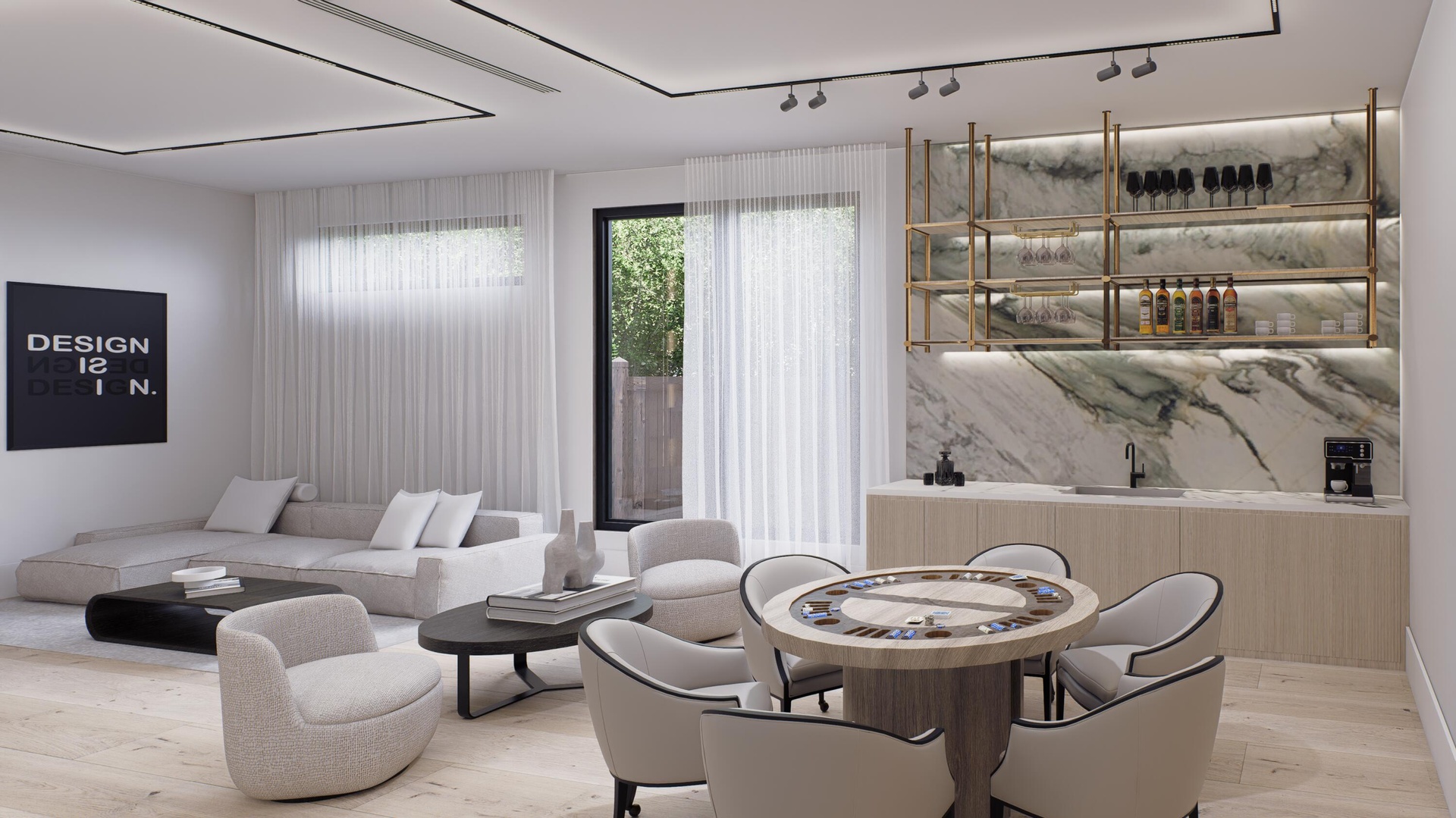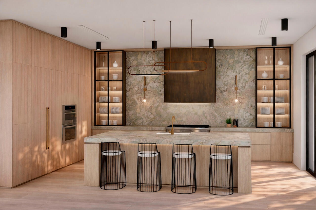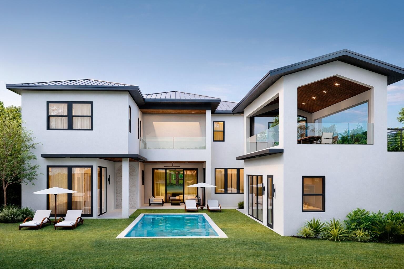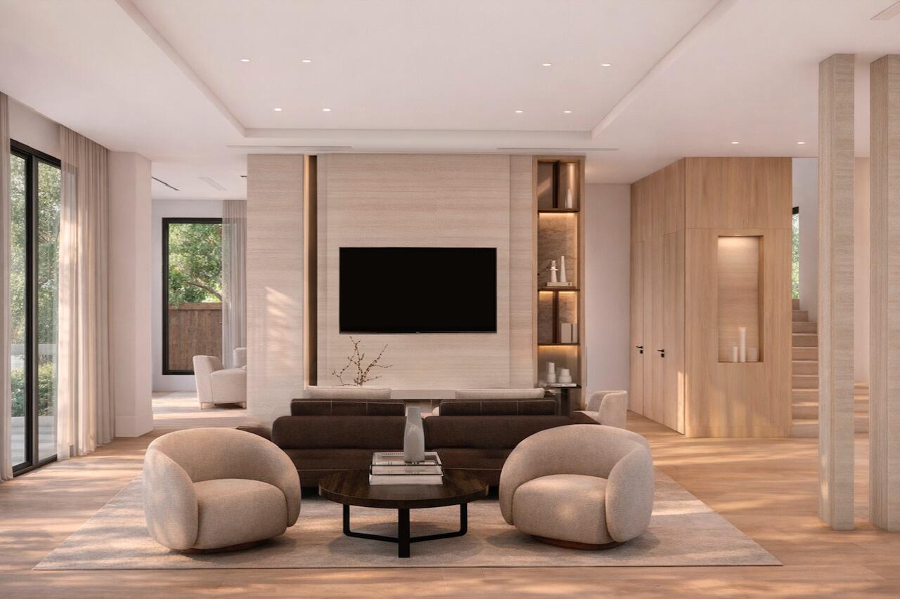 Welcome to this meticulously designed 5 bedroom, 5.5 bathroom residence with a private 1 bedroom, 1 bathroom guesthouse, a masterpiece by VDM Construction with interiors by Thanos. Situated on an oversized nearly 12,200 SqFt lot in the coveted SoSo neighbourhood, this southern facing home is filled with natural light and features soaring ceilings. The kitchen is outfitted with white oak veneer cabinetry, a custom built-in wine wall, along with a spacious pantry with a secondary refrigerator and dishwasher. Designed for entertaining, the main level also offers a spacious club room with a wet bar, paired with a private office and full bath. Upstairs, the primary suite offers a private terrace, a truly expansive walk-in closet, and a spa-inspired bath with all-natural travertine slabs, double vanities, dual shower heads, dual water closets, and a Roman tub, along with three additional ensuite bedrooms. Outdoor living is equally impressive with a marble pool deck, covered loggia, outdoor shower, summer kitchen with island & bar, and a heated saltwater pool with smart controls and autofill. The private guest house includes 1 bedroom, 1 full bath, and an expansive rooftop terrace with serene views of the pool and beautifully landscaped gardens. Additional highlights include a full home automation system, elevator, dual laundry rooms, and an oversized 2-car garage with 12'6" ceilings, providing ample space for a lift. Ideally situated in SoSo, this exceptional residence is just minutes from PBI Airport, downtown West Palm Beach, Palm Beach Island, The Park Golf Course, and the area's premier beaches, dining, and shopping.