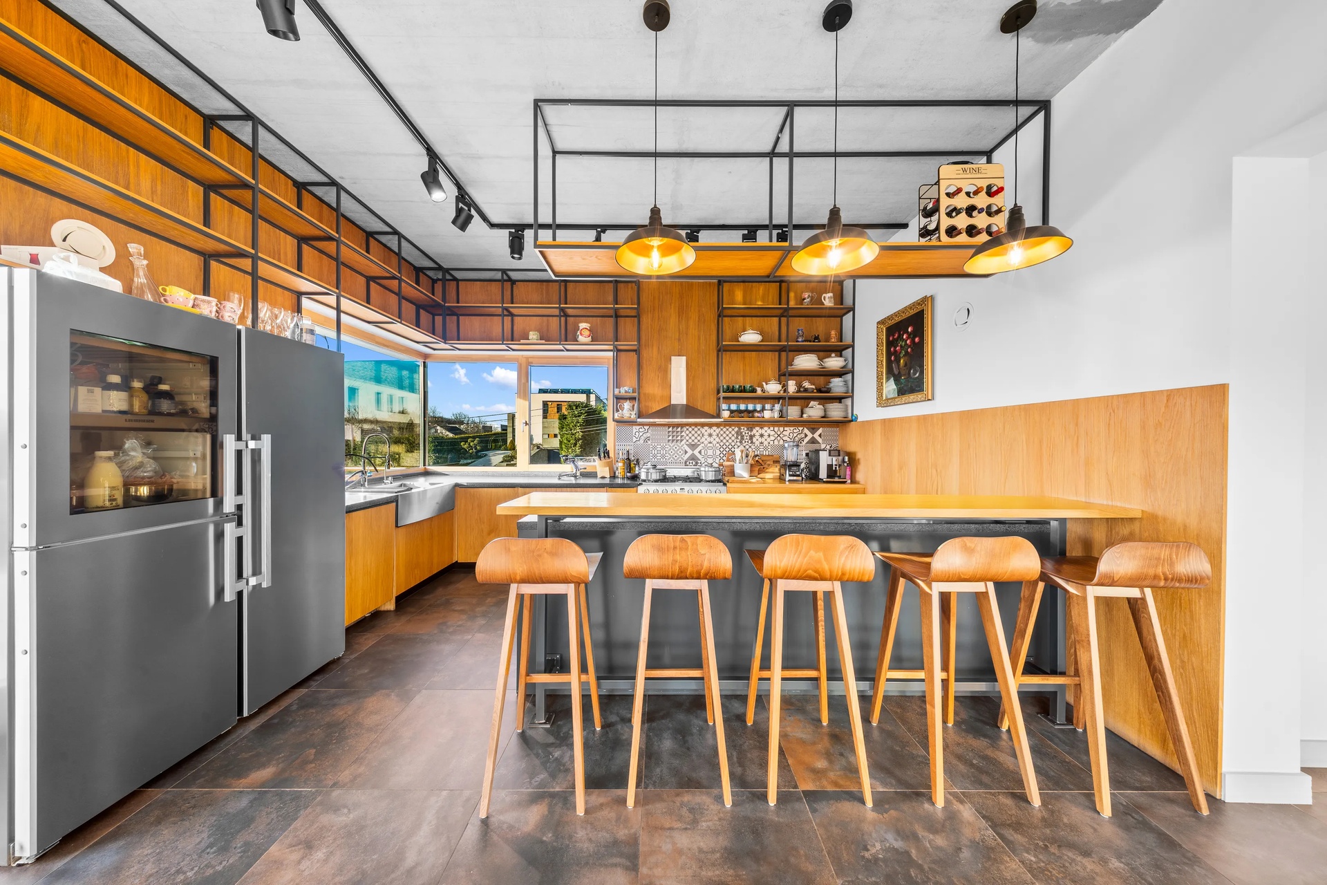 With a usable area of 120 sqm, the ground floor is dedicated to daily living and entertaining. The entrance leads into a fully equipped kitchen with auxiliary spaces, a well-defined dining area, and an expansive living room, ideal for both intimate family moments and sophisticated social gatherings. This level also features a versatile room, suitable as a home office or guest bedroom.