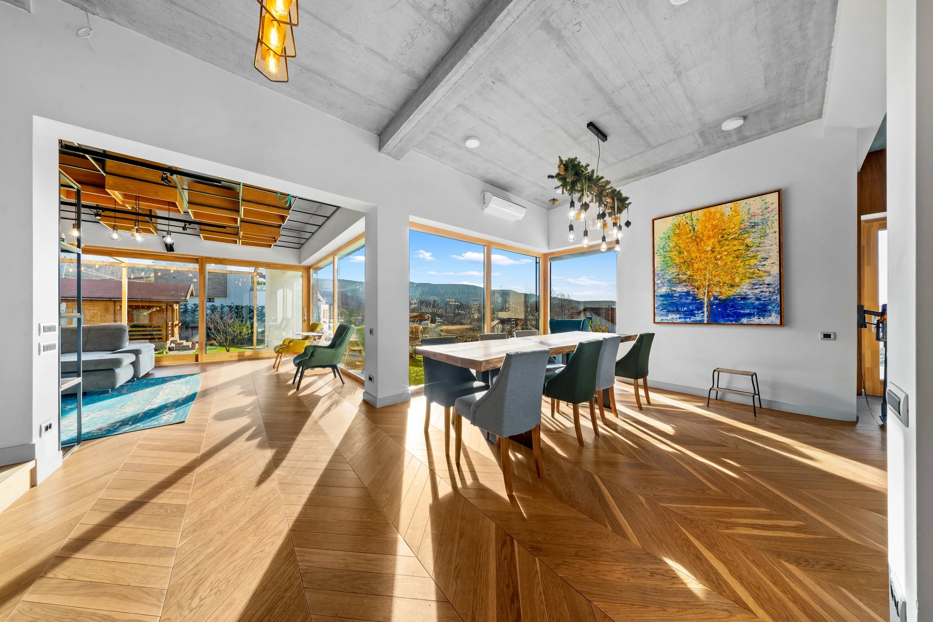 Every interior has been meticulously conceived to deliver a superior residential experience, defined by abundant natural light, expansive panoramic glazing, and a carefully curated selection of premium materials, creating a seamless dialogue between interior spaces and the surrounding forest landscape.