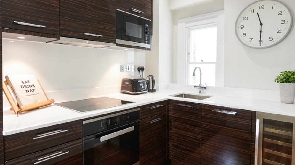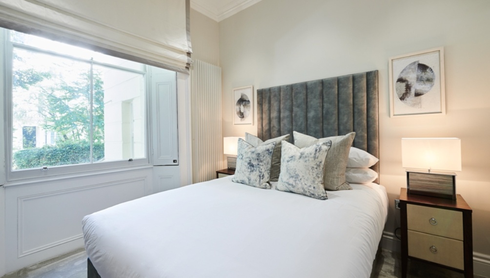 The apartment comprises a generous double bedroom with excellent storage, an elegant reception area enhanced by bespoke furnishings, and a luxurious polished marble bathroom in addition to a private en-suite. The fully integrated custom-designed Miele kitchen is ideal for those who love to cook and entertain, while smart home technology—including Smart TVs in both the bedroom and reception room—brings contemporary comfort to this refined home.
