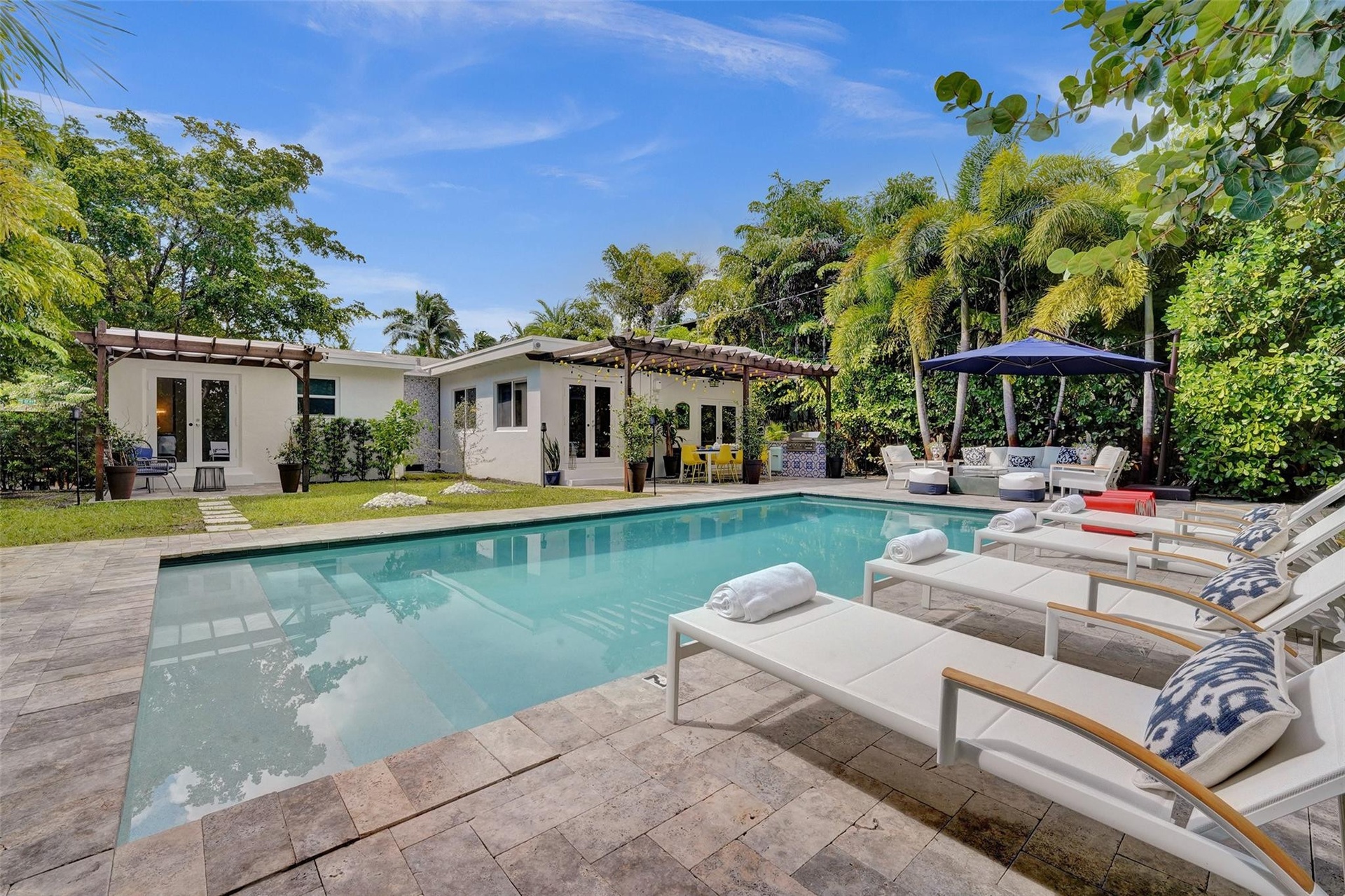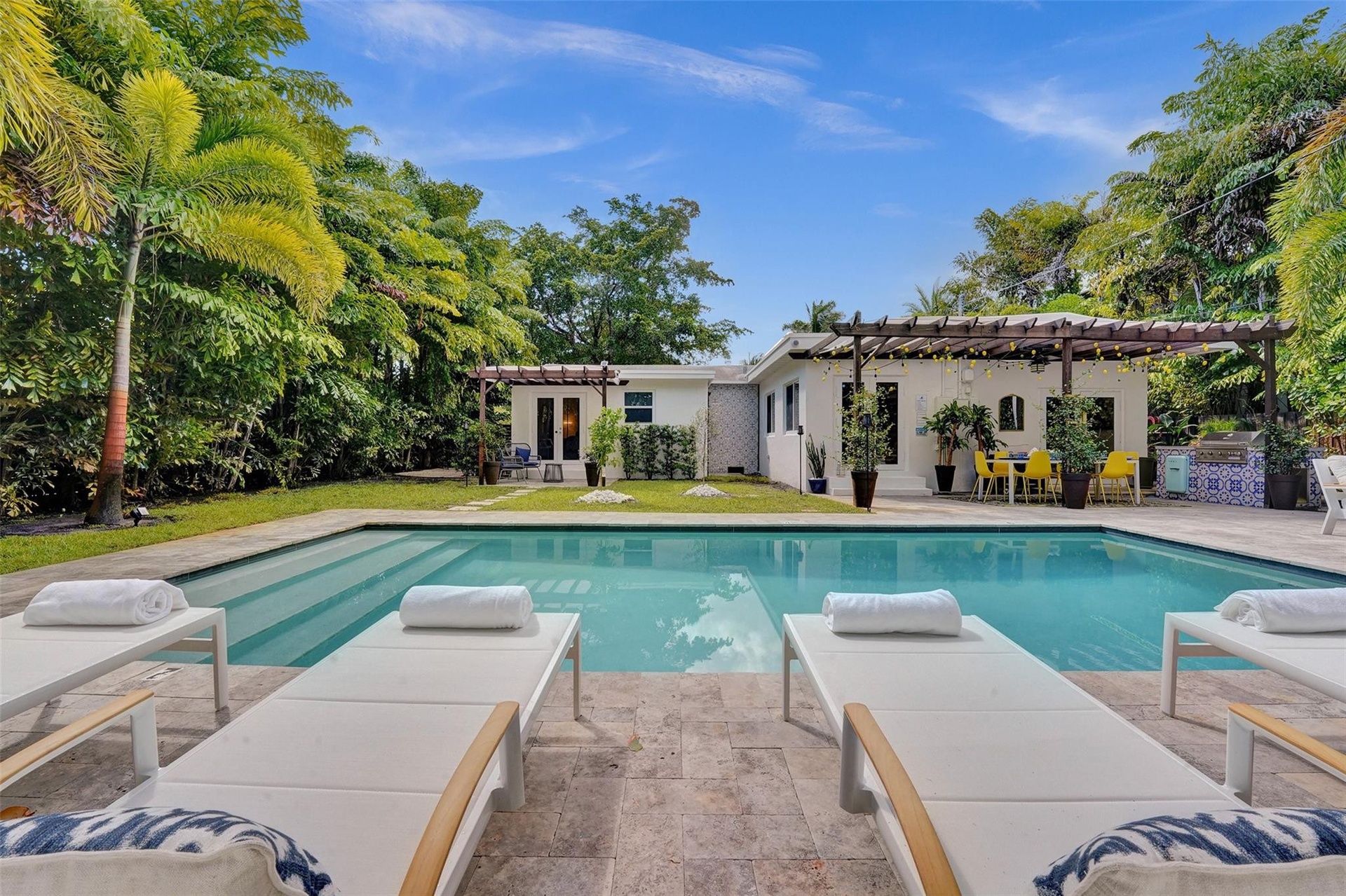 Elegantly updated 4-bedroom, 2-bath residence offering 1,798 sq ft of living space on an expansive 9,812 sq ft lot. The substantially remodeled interior showcases modern finishes and hurricane impact windows throughout. The private, resort-style backyard is an entertainer’s dream, featuring a beautiful pool, lush tropical landscaping, built-in barbecue area, and outdoor shower—creating a true outdoor oasis. Located just two blocks from vibrant Wilton Drive and moments from premier dining, nightlife, and entertainment. Ideal as a primary residence, luxury retreat, or income-producing property.