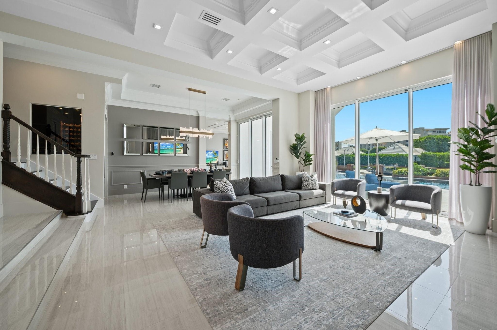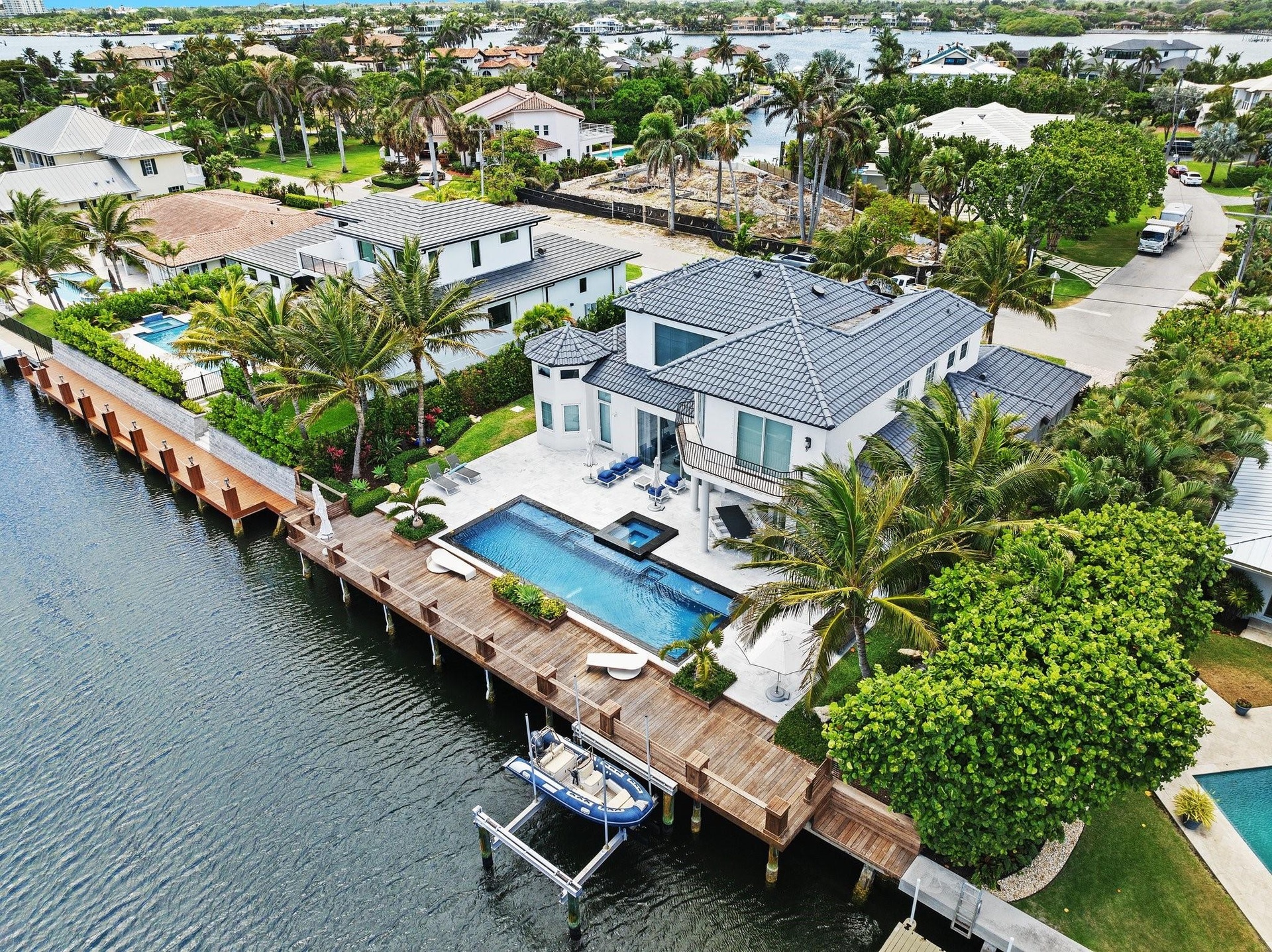 Step into quiet sophistication at this meticulous waterfront estate, offering over 5,100 square feet of refined living with 100 feet of deepwater frontage just two minutes from the inlet. Set in the exclusive community of Ocean Ridge, this six-bedroom, five-bath residence blends timeless elegance with thoughtful upgrades, delivering both luxury and peace of mind.The home’s airy main level offers a seamless flow of formal living and dining spaces alongside an open kitchen, family room, and breakfast area, each designed to capture serene water views. A 500-bottle wine room anchors the entertaining experience, while upstairs, the grand primary suite opens to a wraparound balcony overlooking the water. Outdoors, a newly constructed IPE Brazilian walnut dock adds over 1,200 square feet of additional living and entertaining space. Valued at $500,000, it includes a 20,000-pound lift and ample capacity for boating. Beyond lies a zero-edge, heated saltwater pool and spa, framed by marble pavers, lush gardens, and multiple lounge and dining areas.Every detail reflects a meticulous commitment to quality: triple-pane argon-filled impact windows ensure remarkable quiet, supported by five newer air-conditioning units including garage AC. Offered fully furnished, with art and décor valued at approximately $350,000, the residence is move-in ready. For those seeking a more customized experience, there is also the option for a fully renovated kitchen and primary suite design.Residents enjoy exclusive membership at the McCormick Mile Beach Club, a private 700-square-foot oceanfront beach house with kitchen and direct beach access just a block away. It is the perfect complement to the boating, entertaining, and serene lifestyle this property affords.With unmatched craftsmanship, a flawless seawall, and thoughtfully designed infrastructure including propane systems, generator setup, and low-VOC finishes, this estate is both beautiful and built to last. Quite simply, it is the quietest and most refined waterfront retreat in Ocean Ridge. Schedule your private showing today and experience a residence where every detail has been perfected.