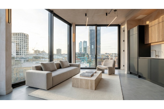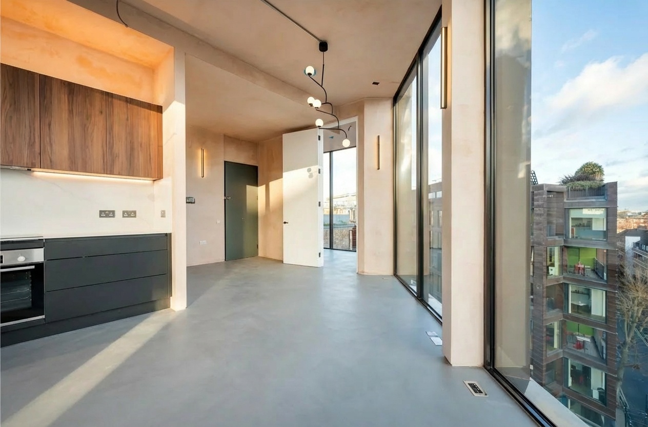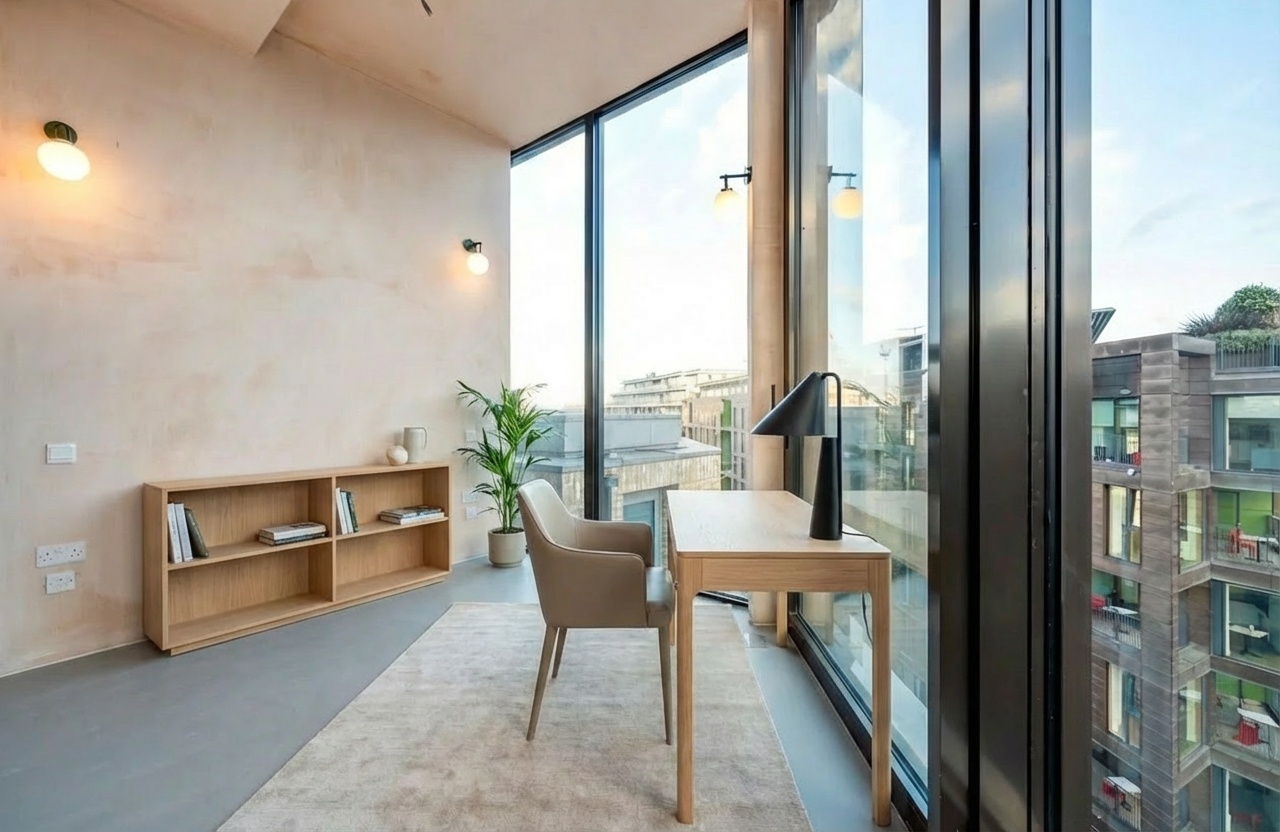 Occupying an entire private floor, this architect-designed three-bedroom residence at Nile Works delivers a rare combination of volume, light, and architectural clarity in the heart of Shoreditch.
