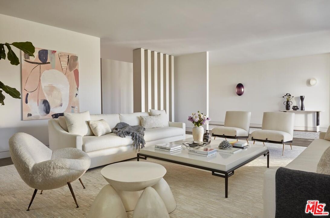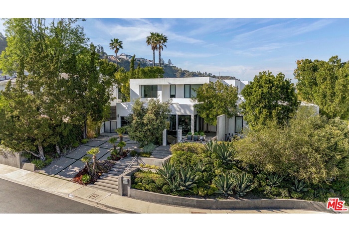 Located at the top of Stone Canyon Road, just minutes from the Hotel Bel-Air, this beautifully designed Mid-Century Modern home offers stunning views of the Stone Canyon Reservoir. Designed by renowned NYC designer Sara Story, the interiors combine modern elegance with timeless sophistication, creating a space that is both stylish and cozy. A formal art-gallery entrance leads to a bright, open floor plan with floor-to-ceiling Fleetwood doors, seamlessly connecting the indoor living spaces to a zero-edge pool and expansive glass-edged deck. The living and great rooms flow effortlessly outside, maximizing the home's indoor-outdoor lifestyle. A fire pit on the deck offers a relaxing space to take in the views, while the outdoor BBQ area is perfect for entertaining. The formal dining room features city lights views alongside an impressive glass wine room, while a first-floor screening room delivers a state-of-the-art home theater experience. A private office offers a serene workspace. The chef's kitchen is equipped with Viking appliances, Walker Zanger exotic marble countertops and backsplash, and a barbecue bar for outdoor cooking. The primary suite boasts stunning blue water views and a luxurious bath finished in Sea Pearl Quartzite. Upstairs, three additional bedrooms offer flexibility - one is perfectly suited for use as a gym or wellness space - while a first-floor guest suite ensures privacy and comfort for visitors. Arlo, Nest, and Sonos systems are integrated throughout, enhancing both convenience and functionality. A true Bel-Air retreat, this home offers breathtaking views, seamless indoor-outdoor living, and exceptional design.