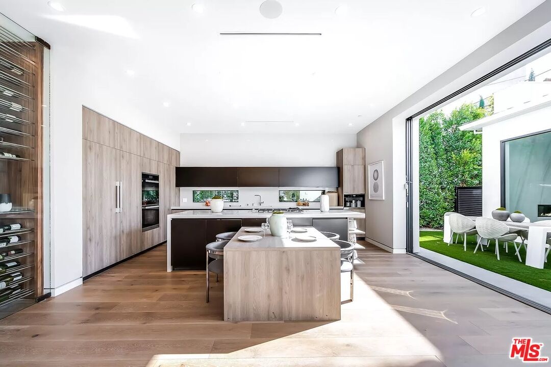 Perfectly located in the heart of West Hollywood, fall in love with this custom designed four bed, four and one-half bath, newer build Contemporary home. Expansive open floor plan with European oak wood floors, high ceilings, and luxurious finishes throughout. The spacious entry hall, highlighted by a floating staircase, is bordered by an elegant formal dining room on one side and a beautiful enclosed outdoor patio on the other. The Italian-designed kitchen features quartz countertops, a center island with an integrated breakfast table, and top-of-the-line Miele appliances. The family room, with its stunning fireplace and expansive pocket sliding glass doors, seamlessly connect to an impressive backyard, perfect for indoor/outdoor entertaining. The main floor also offers a downstairs en-suite and a media room. Upstairs, the primary bedroom features a fireplace, balcony with views of the pool, and walk-in closet. The opulent primary bathroom includes a dual vanity, soaking tub, and rain shower. Two additional suites well-appointed for a guest-room or home office, each with its own private balcony. Backyard features an enclosed cabana, pool, and zero-edge spa. With a state-of-the-art security, cameras and surround sound system, the home is operated by a Control4 system personalized to your lifestyle providing unparalleled convenience. Enjoy a 2-car garage, close proximity to Melrose Place, fine dining and shopping, and West Hollywood living at its finest.