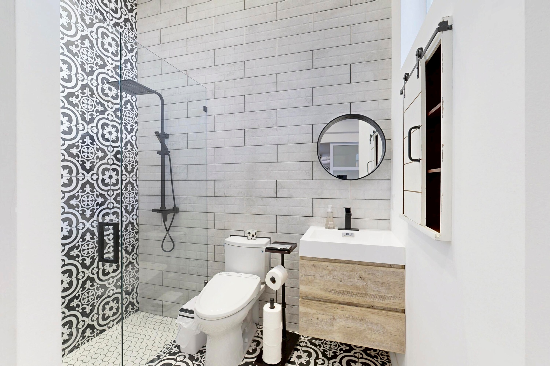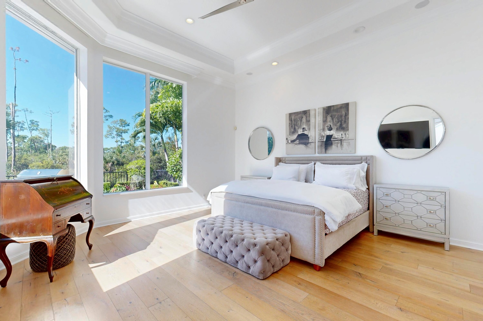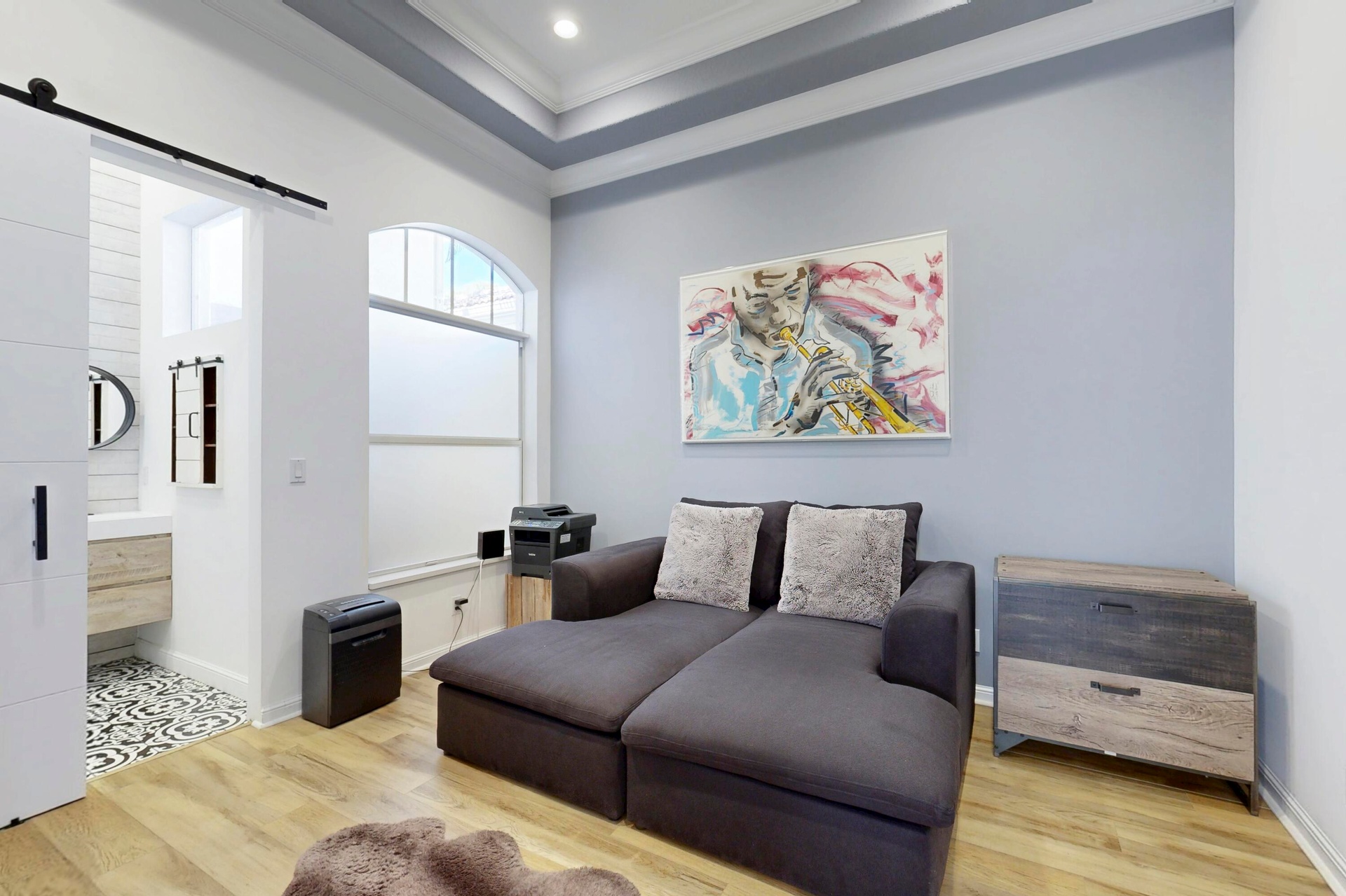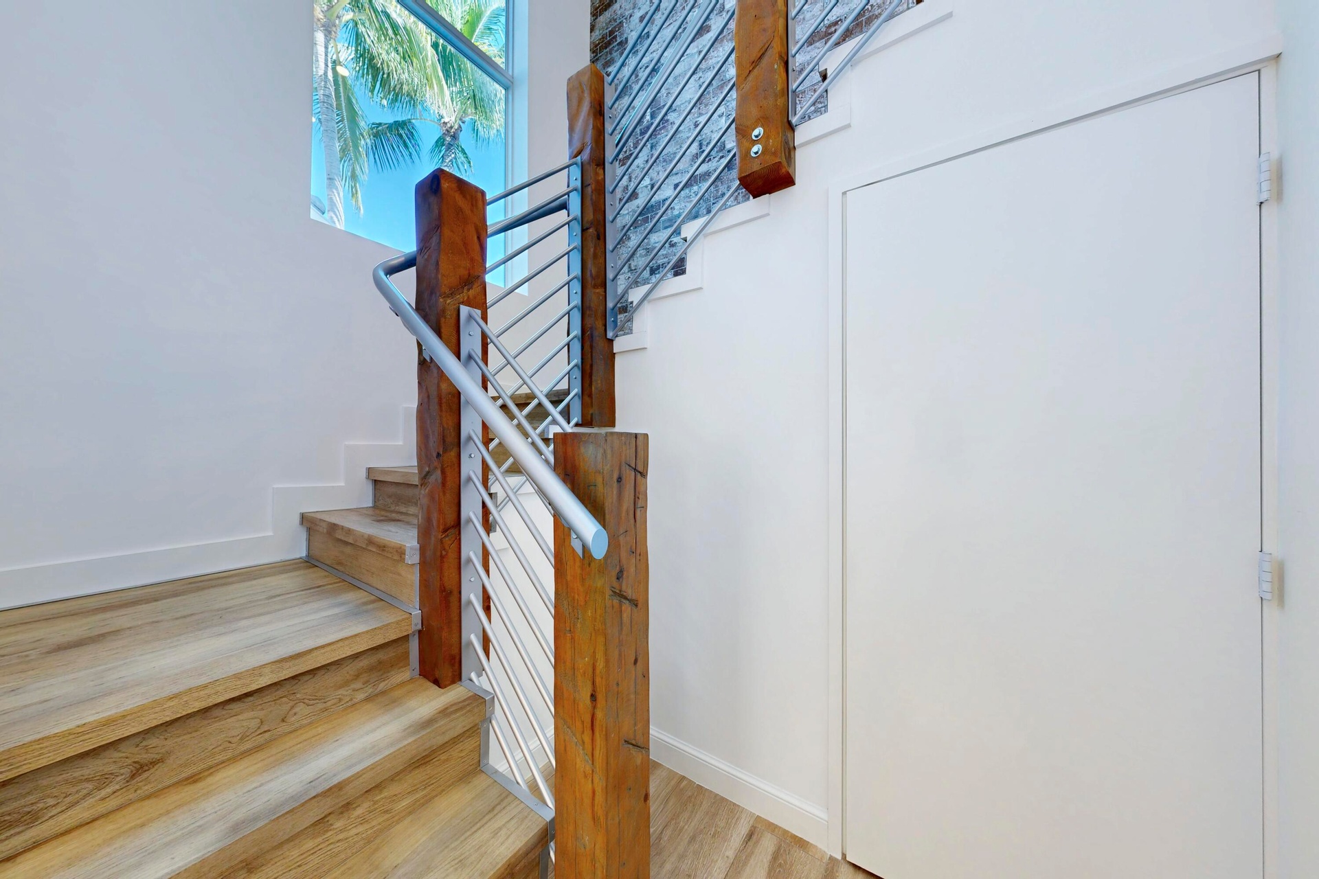 A one-of-a-kind, fully renovated two-story industrial modern home with a golf membership. Offering turnkey living and tucked away on a private cul-de-sac. The residence has been completely updated from front to back, including a new roof, driveway, three air conditioning units, water heater, electrical panels, and a Tesla charging outlet. The newly constructed upper level features a spacious bedroom with a stunning en-suite bathroom, walk-in closet, and a flexible loft-style office/den. An architecturally designed staircase leads down to the open-concept first floor, which includes three additional bedrooms and bathrooms, including the primary suite. Toto washlet toilets in 3 of the 4 bathrooms,Large kitchen has a center island, built in Miele coffeemaker, wine refrigerator,Jenn-air oven The chef's kitchen showcases a large center island, built-in Miele coffee maker with wine refrigerator, Jenn-Air oven, wood-paneled double-door refrigerator, dishwasher, and Thermador induction cooktop. The living room is highlighted by a custom bar with a second wine refrigerator, exposed wood beams, and a cozy fireplace.