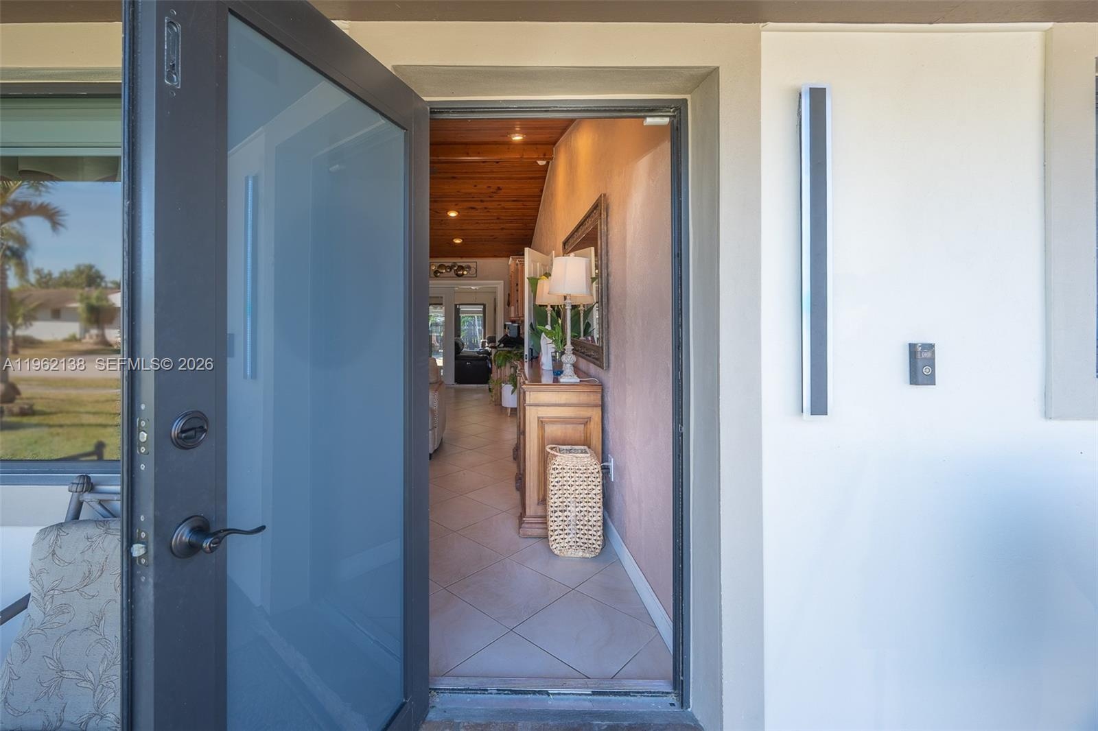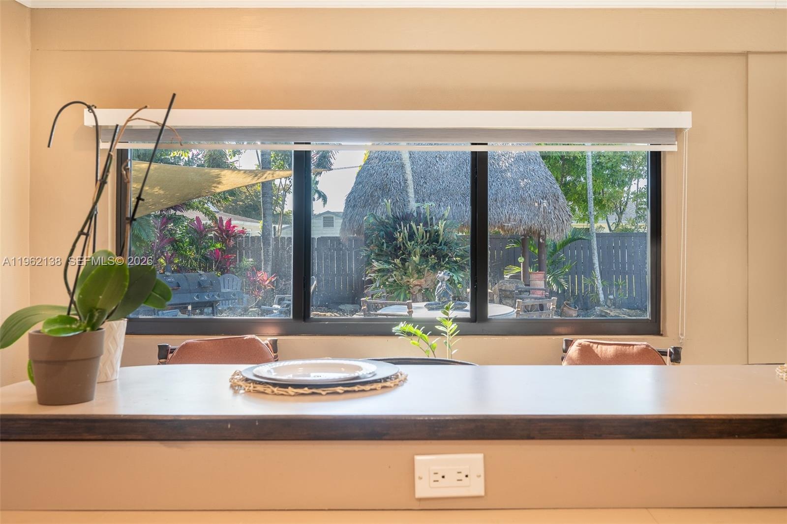 Mature tropical landscaping and fruit trees frame the property, offering a private outdoor retreat perfect for relaxing or entertaining. Enjoy gatherings under the custom tiki hut, surrounded by lush greenery that captures the essence of South Florida living.