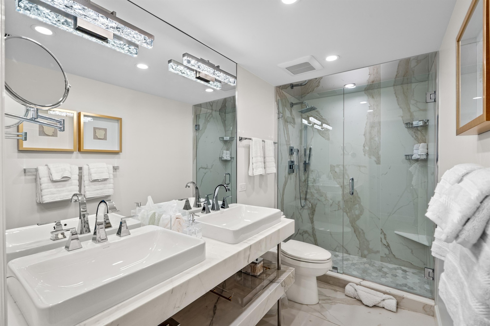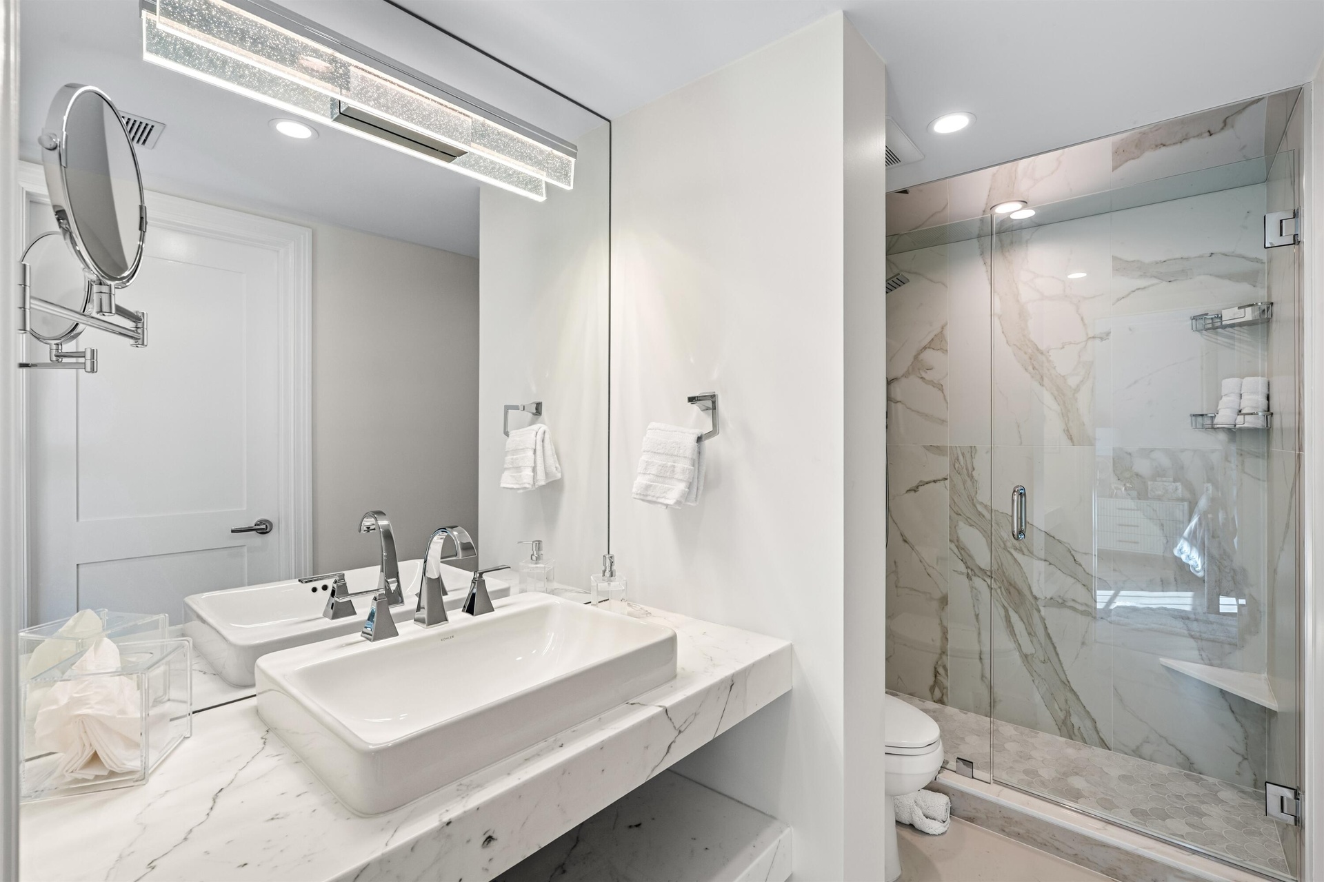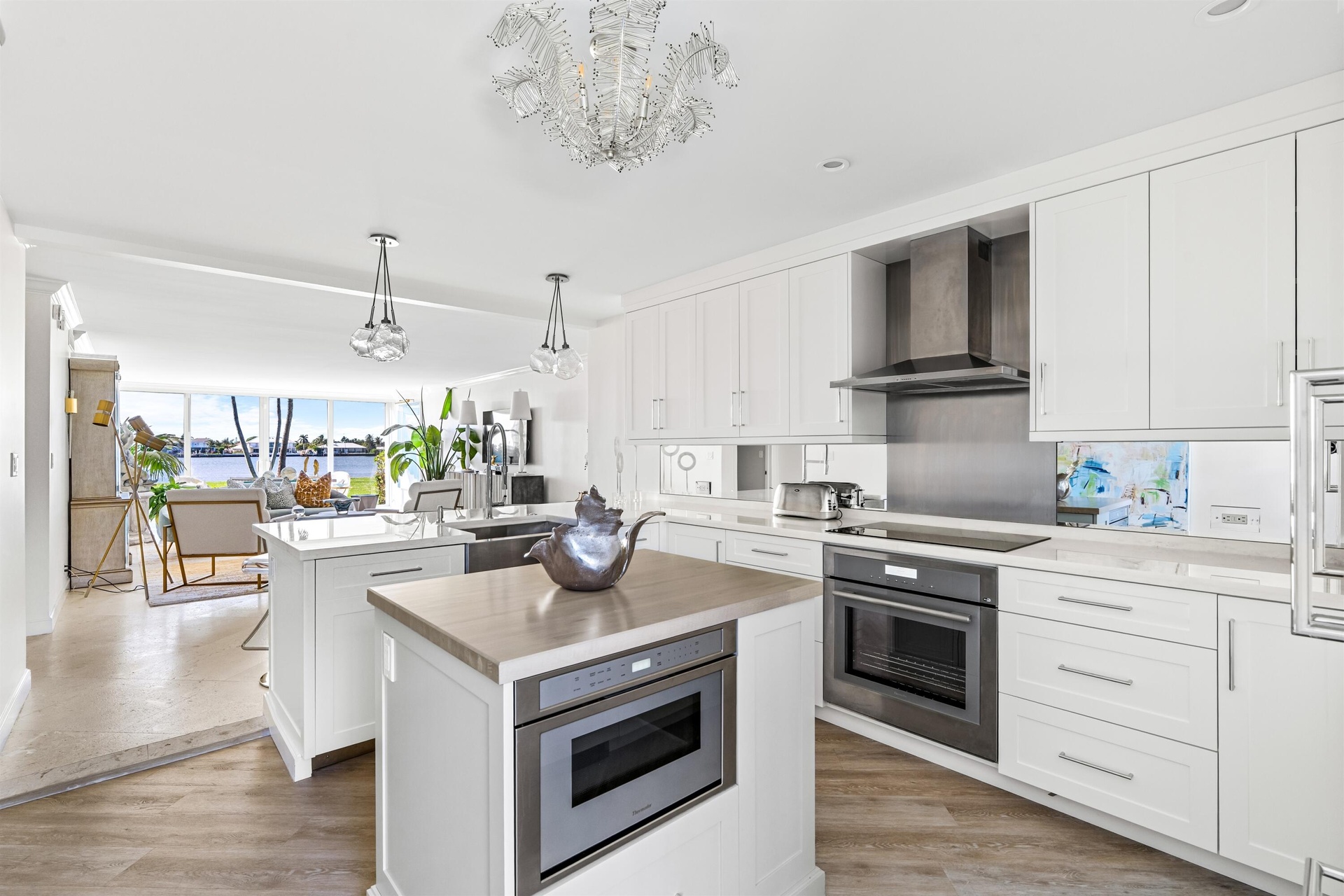 Enjoy unimpeded water and sunset views from this 2BR/2BA first floor corner unit with an open living concept design. This gorgeous home was recently completely gutted and rebuilt with impact floor to ceiling windows and doors in every room, new kitchen, new baths, new coral tile floors, and new hide-a-way Bluetooth blinds throughout. Exquisite finishes include Gracie hand painted wallpaper, elegant kitchen with under-lit counters & top of the line all new Thermador appliances plus marble bathrooms with custom floating vanities. Villa Serein condo complex living uniquely boutique with only 2 stories high and 8 units. Sold beautifully furnished right down to the dishes, flatware, pots, pans and bed linens too! All brand new. NO PETS ALOWED Designer furnished with an expert mix of exceptional antique pieces and modern contemporary. Completely turnkey with beautiful Montauk linens & equipped kitchen. This brand new apartment is ready for immediate occupancy.