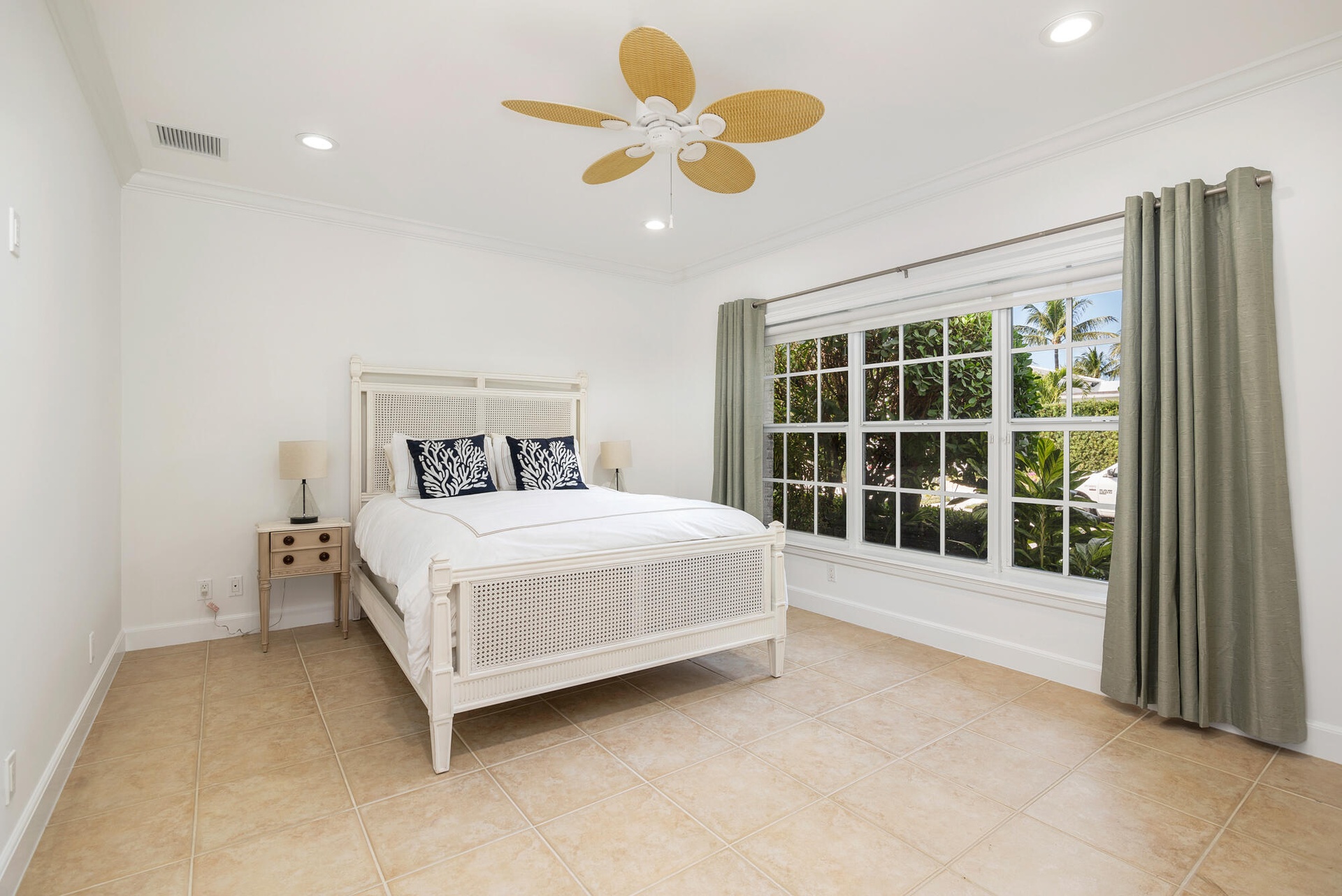 Additional features include a two-car garage, dedicated laundry area, and beautifully landscaped outdoor spaces that enhance both privacy and the overall setting. This North End location, combined with private beach access and immediate proximity to the Lake Trail, makes the property especially appealing for those seeking a relaxed Palm Beach rental close to the water.
