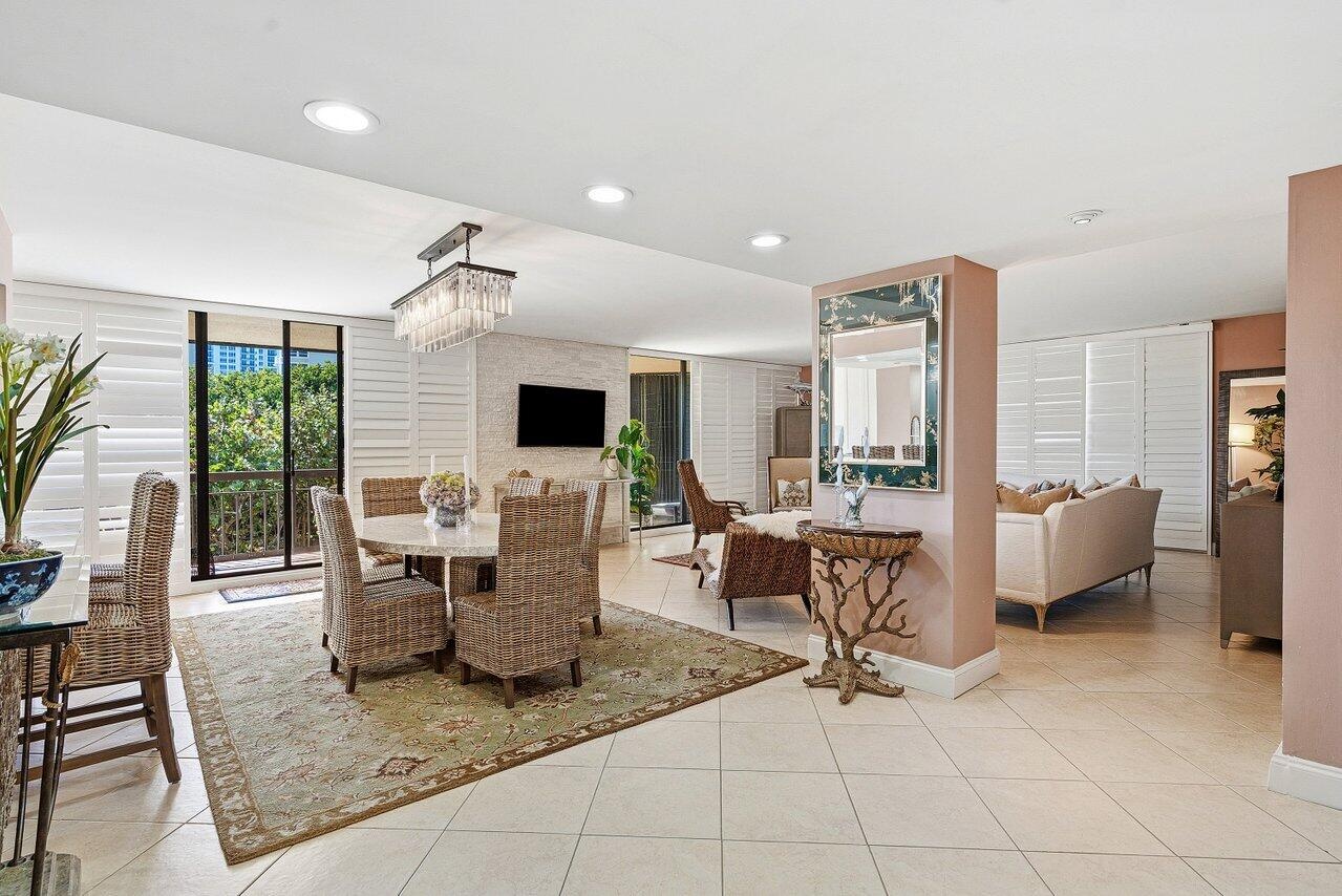 Floor-to-ceiling glass opens to private ocean views from the terrace, while one of the home's most distinctive features is direct, private access to the newly reimagined pool and amenity deck—no elevators This level of access is exceptionally rare on Singer Island and allows the residence to live like a single-family home, with seamless indoor-outdoor flow.