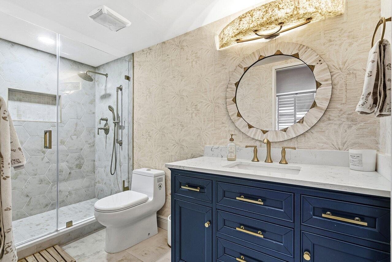 This expansive two-bedroom, three-and-a-half-bath residence features a large, open entertaining area designed for both everyday living and hosting. The primary suite is exceptionally generous, offering two separate bathrooms and dual walk-in closets, creating a private retreat rarely found in condominium living. A full en-suite guest bedroom provides comfort and privacy for visitors.