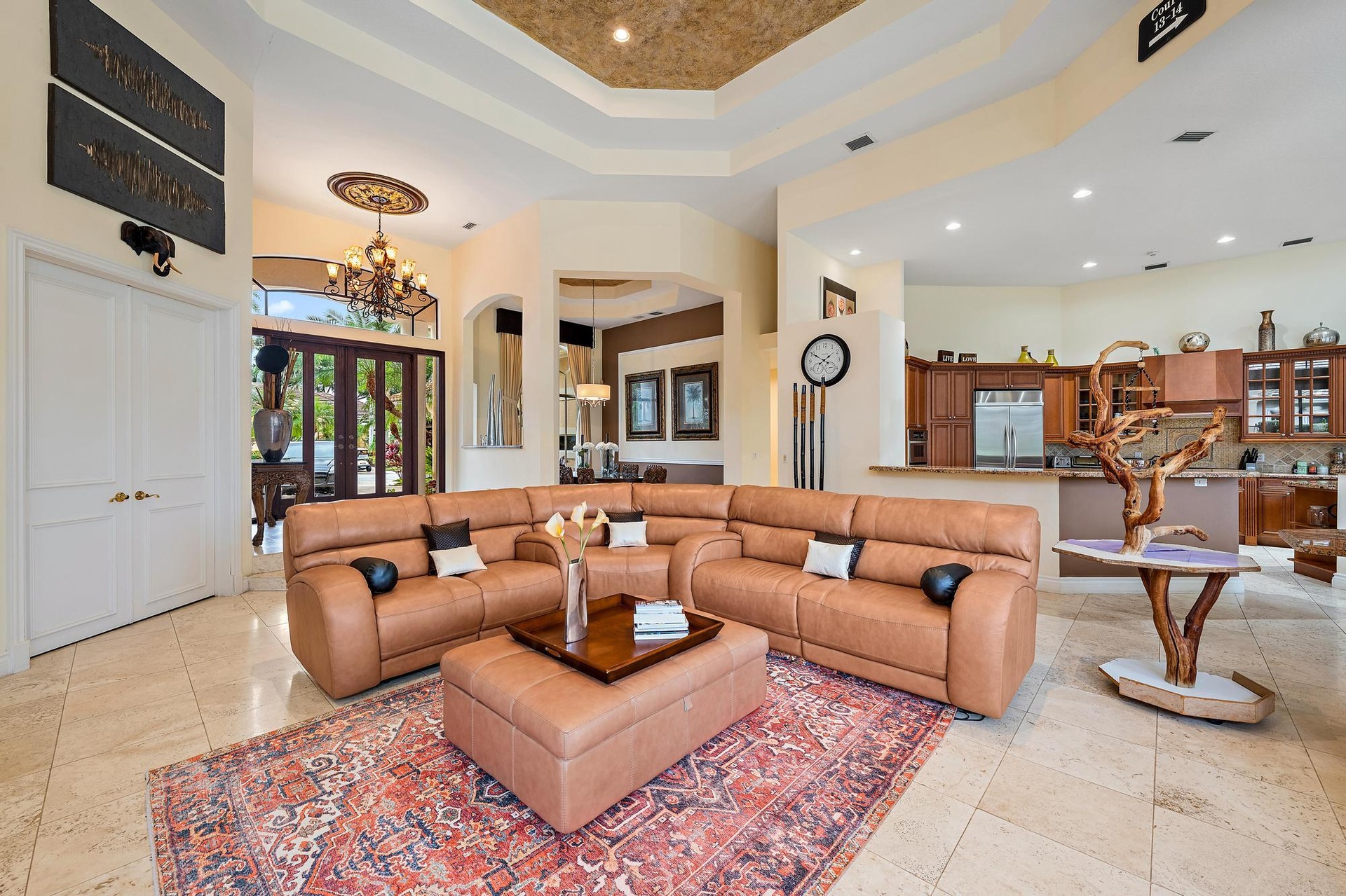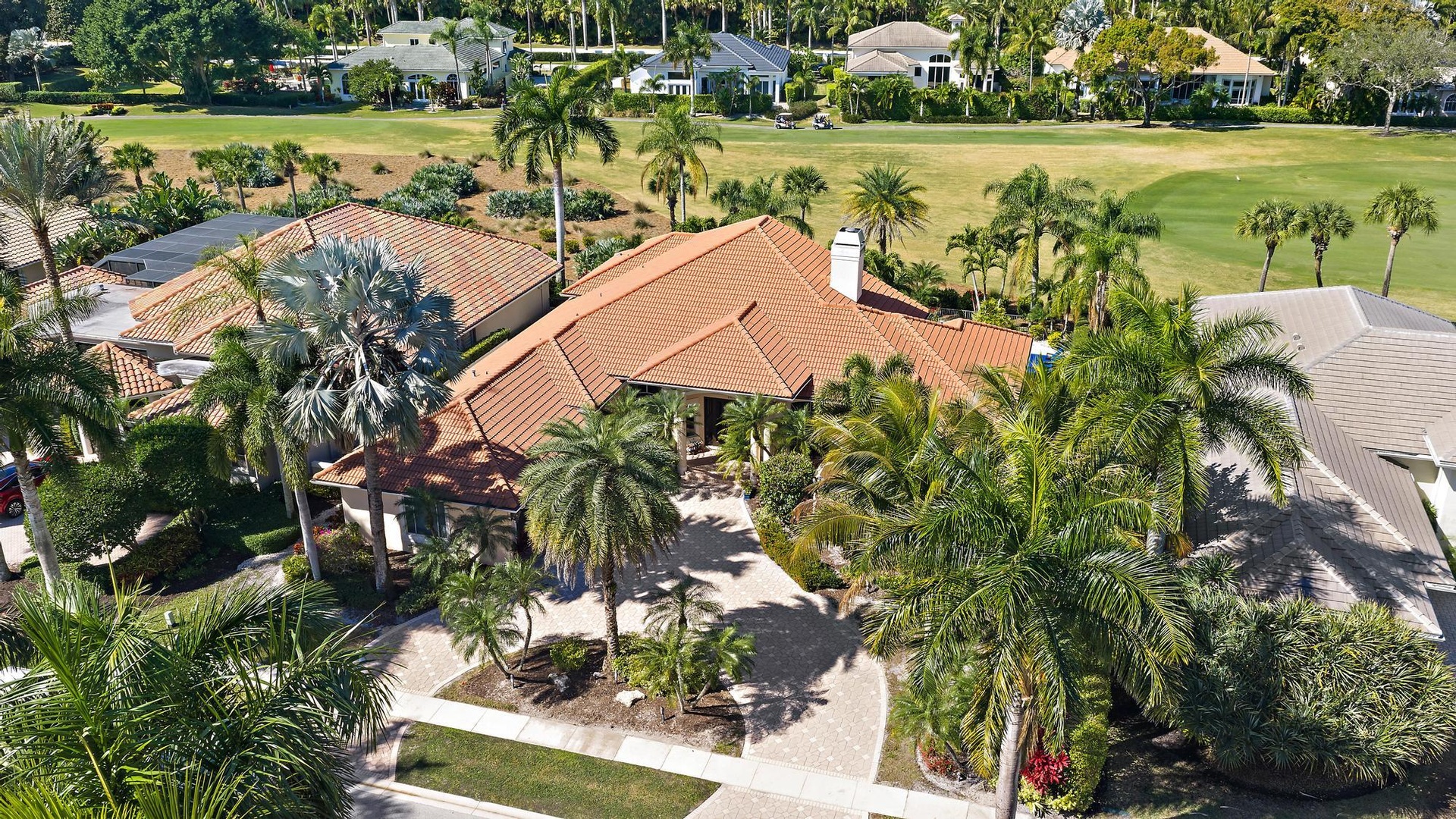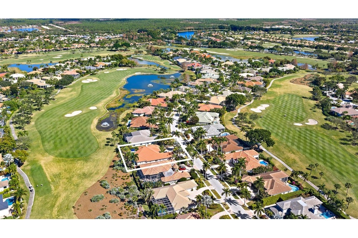 Set on a one-third-acre estate lot within the desirable Egret Meadow neighborhood of the award-winning Club at Ibis, this residence offers a rare combination of scale, privacy, and sweeping golf course views overlooking the 4th fairway of the Jack Nicklaus-designed Legend Course. From the moment you arrive, impressive curb appeal sets the tone, highlighted by a spacious circular driveway and elegant double wood-paneled glass entry doors. Inside, soaring ceiling heights and an open, light-filled layout create an immediate sense of grandeur. This thoughtfully designed 4-bedroom, 4.5-bath plus den estate features expansive living spaces ideal for both refined entertaining and everyday comfort. Saturnia marble flooring flows throughout the main living areas, while the private office is enhanced with updated flooring and custom built-ins. The chef's kitchen offers abundant cabinetry, natural gas cooking, and seamless flow into the living areas, complemented by a wet barperfect for hosting gatherings with ease.