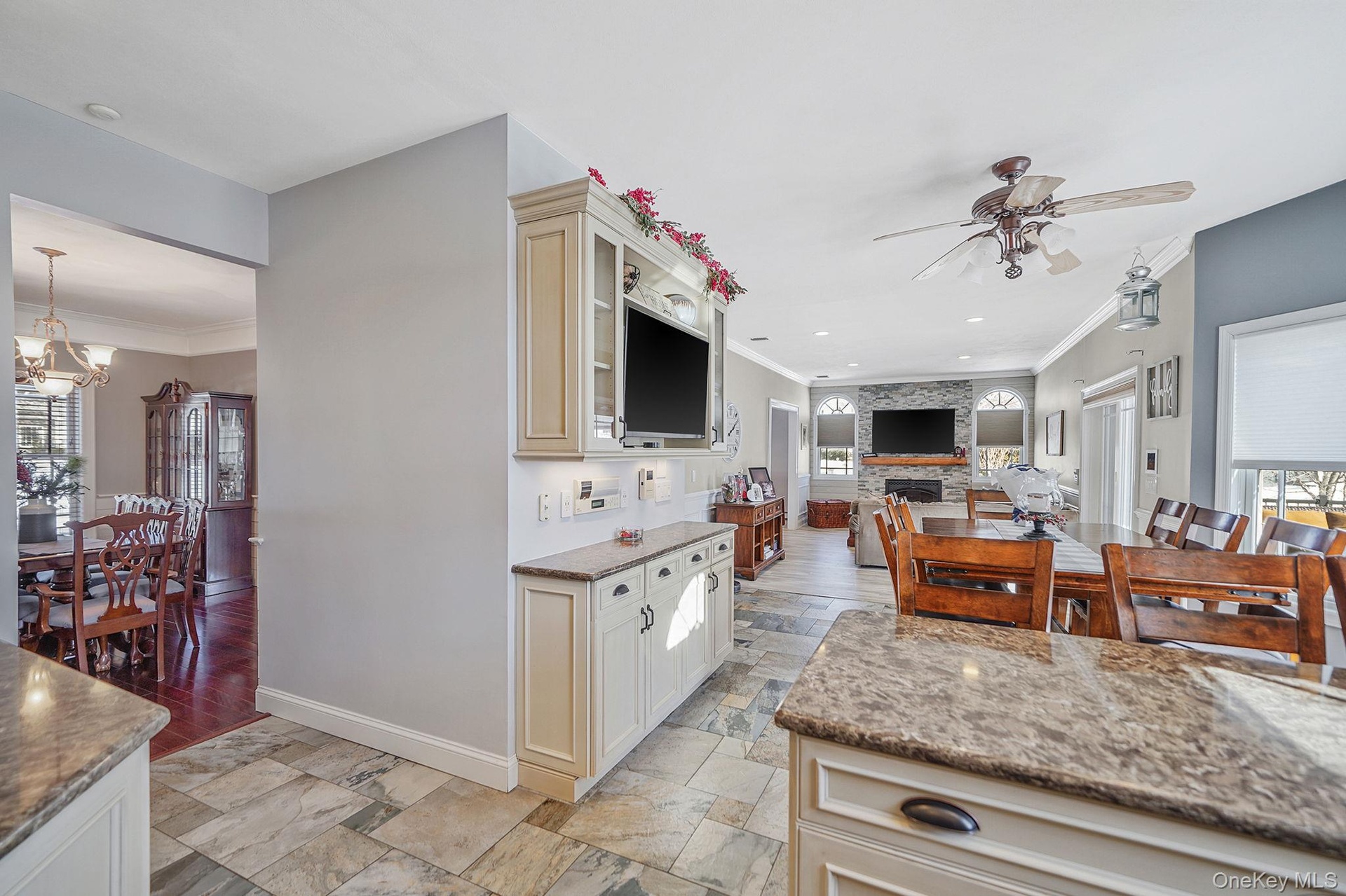 This Diamond updated 4-bedroom, 3.5 bath colonial home offers exceptional indoor and outdoor living enhanced by extensive upgrades. Designed with today's lifestyle in mind this property features 32 owned solar panels, EV charging, radiant floor heating and a fully integrated smart Wi-Fi system. Additional highlights include a 9-camera security system and central vacuum on all levels. A newly upgraded kitchen anchors the home while an inviting den showcases custom stonework and striking gas fireplace. A spacious living room and separate dining room are perfect for large gatherings. The primary bedroom suite has an electric fireplace and a spa-like ensuite. 3 additional spacious bedrooms and an additional full bath complete the second level. A resort style backyard with a 2 tier deck and stone propane fireplace Nicolock pavers, outdoor kitchen, firepit with designated seating area, Saltwater in-ground pool and a pool house/shed. Tasteful landscape lighting highlights the properties exterior grounds. 9 zone inground sprinklers. Complete Vinyl fenced yard. Newer roof (April 2020). Newer skylights (April 2020). New Central Air system (June 2025). Marvin Windows throughout the home. Full Basement with separate outdoor entrance. Don't miss an exceptional opportunity to own a truly one-of-a-kind home where luxury, comfort and thoughtful design come together seamlessly.