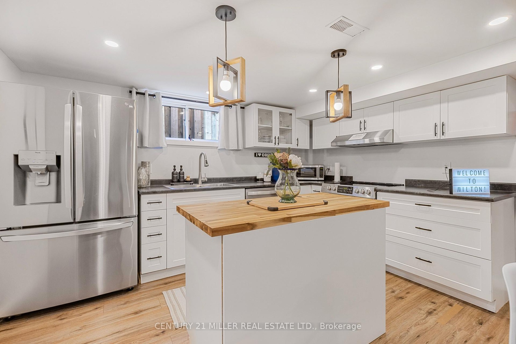 Bright, spacious, and private suite offering approx. 1,250 sq ft in the heart of Downtown Milton. Steps to boutique shops, restaurants, and Mill Pond, and minutes to Halton's conservation areas. This beautifully finished space features two full bedrooms, a full bathroom, and private, non-shared laundry.The open-concept layout offers pot lights in every room, dimmable lighting, and oversized above-grade windows that bring in excellent natural light. The kitchen, dining, and living areas are generous in size and feel like a true apartment, not an afterthought. The kitchen is equipped with full-size stainless steel appliances, a gorgeous butcher block island and a pantry! Storage is exceptional, with a large walk-in closet off the living area plus wall-to-wall bedroom closets with built-in shelving. Neutral finishes throughout create a clean, modern feel. There is also a dedicated office nook ideal for a home office or study space. A newer high-efficiency furnace and heat pump provide efficient, reliable heating and cooling year-round. A huge, welcoming breezeway offers a ton of space as you walk in-unlike typical lower levels suite and entry into the suite is effortless with only six steps down! Tenant will also have a private outdoor area to enjoy!