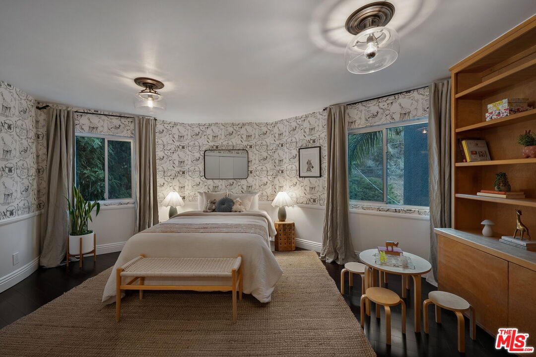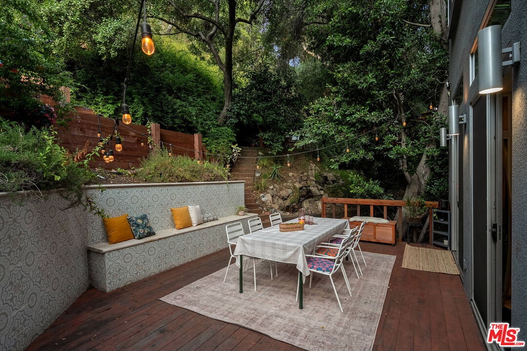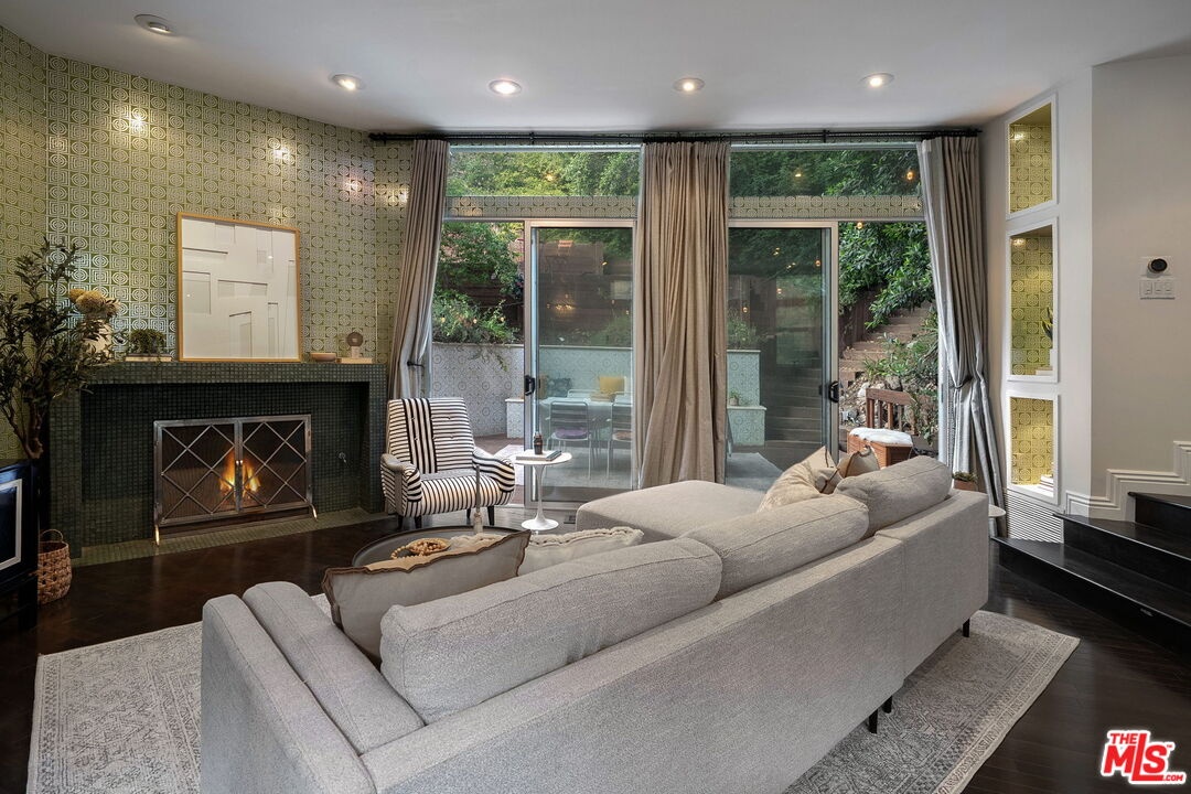 Dubbed by Elle Decor as "The Swankiest House in Hollywood," this iconic Laurel Canyon residence continues to captivate with its bold design and effortless glamour. Originally built in 1978 by acclaimed architect Gary Gilbar and later elevated by celebrity design duo Woodson & Rummerfield, the home is a true modern showpiece. Offering 3 bedrooms, 2 bathrooms, and 1,978 square feet, the interiors blend high style with warm livability. The expansive living and dining rooms showcase soaring ceilings, a striking fireplace, statement wall coverings, and dramatic walls of glass that open seamlessly to an entertainer's deck.The terraced grounds create a private oasis with a dramatic 9-foot waterfall, raised vegetable beds, and ambient Malibu lighting for unforgettable evenings under the stars. The chef's kitchen pairs sleek design with premium appliances, including a Viking range with warming drawer, Fisher & Paykel dual dishwasher, Miele built-in coffee system, and custom bi-fold cabinetry.A chic guest bedroom and designer bath complete the main level. Upstairs, the primary suite features treetop views, vaulted ceilings, a fireplace, lounge area, custom walk-in closet, and a beautifully remodeled bath with dual vanities and refined finishes. The third bedroom is equally distinctive with bespoke built-ins and curated design details throughout.