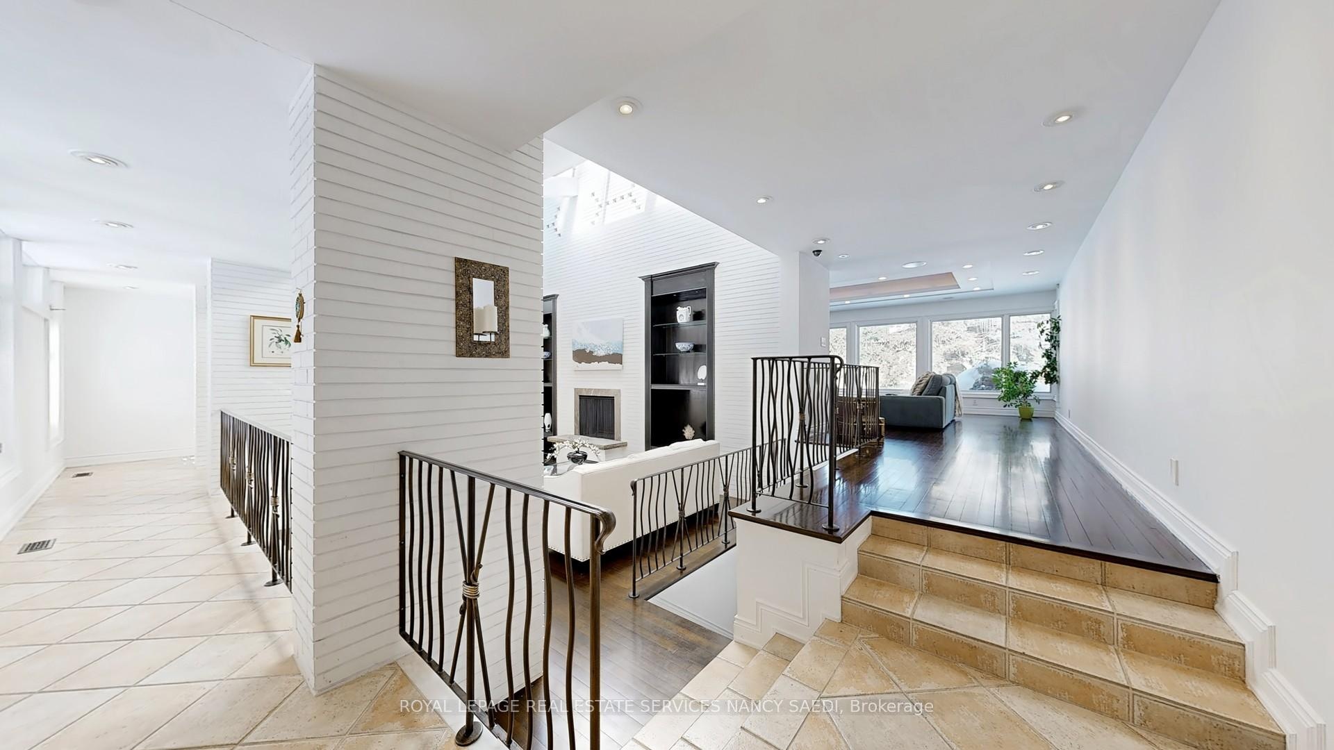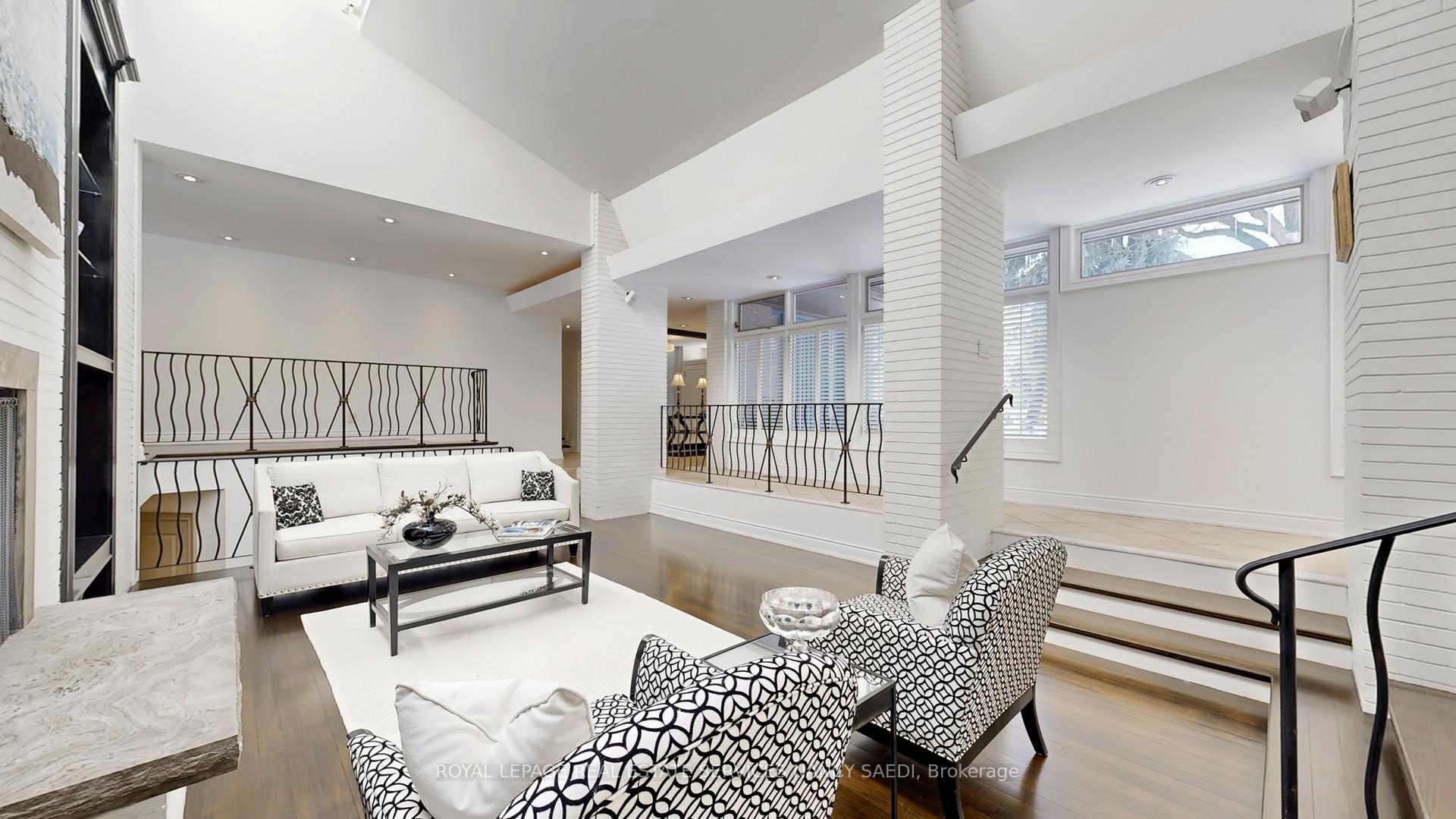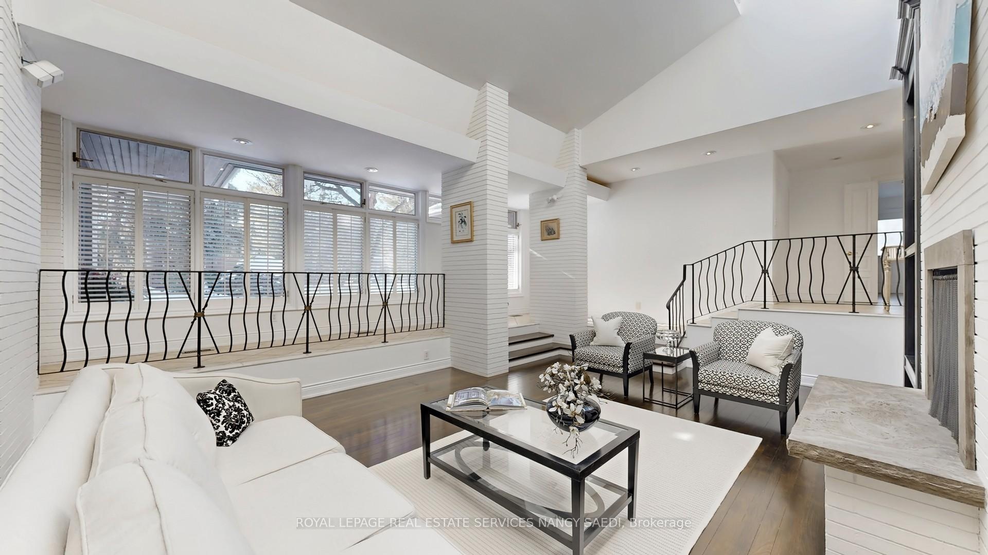 Architecturally Distinct Residence Situated On An Exceptional 128.75 x 159.17 Ft Treed Lot In A Prestigious And Highly Sought-After Enclave. This Remarkable Split-Level Home Presents A Rare Opportunity For Buyers Seeking Space, Privacy, And True Architectural Character.Dramatic Ceiling Heights, Expansive Skylights, And Walls Of Windows Fill The Home With Natural Light, Creating A Bright And Airy Atmosphere Throughout. Elegant White Brick Accents, Rich Hardwood Floors, And Custom Railings Define The Interior's Timeless Design. Generous Principal Rooms Offer Outstanding Flow For Both Everyday Living And Entertaining, Enhanced By Multiple Fireplaces And Inviting Gathering Spaces.The Bedroom Level Provides Comfortable And Private Accommodations, Including A Well-Appointed Primary Retreat With Walk-In Closet. Updated Bathrooms Add A Polished Contemporary Touch While Maintaining The Home's Refined Aesthetic.The Finished Lower Level Adds Exceptional Versatility Featuring A Large Recreation Area, Custom Wet Bar Ideal For Entertaining, Dedicated Fitness / Yoga Studio With Mirrored Walls, And A Bright Nanny Room With Ample Storage.Private Driveway And Expansive Backyard Setting Complete This Exceptional Property. Ideally Located Near Top-Rated Schools, Parks, And Outstanding Amenities.A Rare Offering Combining Architectural Identity, Exceptional Lot Size, And Enduring Appeal.