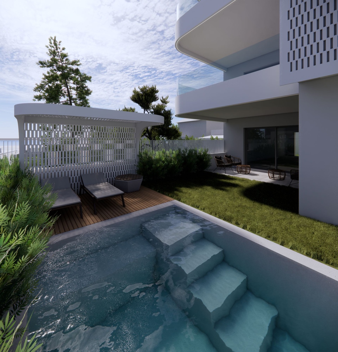 Private pool in front of the living room and terrace