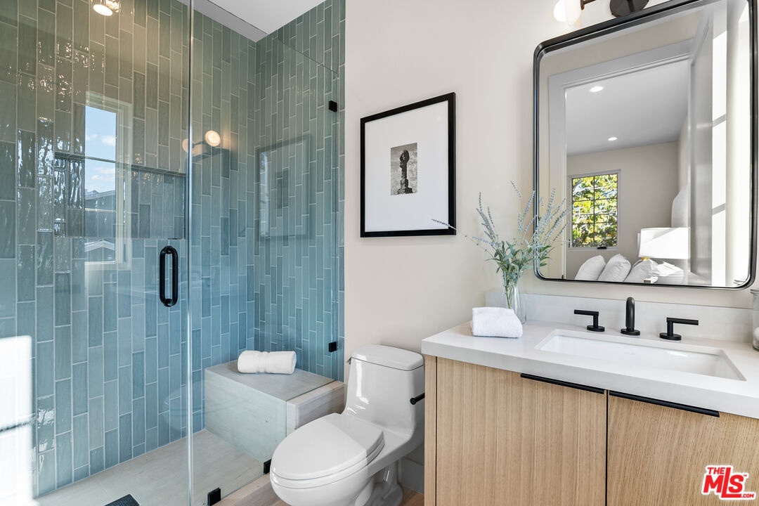 A newly built traditional home by Smart Builders, known for thoughtful craftsmanship and custom design, set on a charming corner lot along tree-lined streets in the heart of Mar Vista and within the highly regarded Mar Vista school system. Inside, the first floor welcomes you with a formal dining room featuring Fleetwood sliding doors found throughout the home and an elegant living room highlighted by custom moulding and a stunning marble slab fireplace crafted from Antolini Breccia Capraia marble.The gourmet kitchen is a true showpiece, featuring matching marble countertops, rich green cabinetry, and a white oak island, complemented by a full suite of Thermador appliances including range, refrigerator and freezer, microwave, and dishwasher, while the main level also includes a beautifully appointed powder room. A generously sized downstairs secondary primary suite larger than a typical bedroom offers exceptional flexibility for guests or multigenerational living.Upstairs, the expansive primary suite serves as a private retreat, featuring a large walk-in closet, a spacious spa-like bathroom, and a private balcony off the bedroom. Three additional upstairs suites provide ample space and privacy, each with its own well-appointed bathroom, along with a conveniently located second-floor laundry room. Thoughtfully designed throughout, this exceptional residence seamlessly blends classic traditional elegance with modern luxury in one of Mar Vista's most desirable neighborhoods.