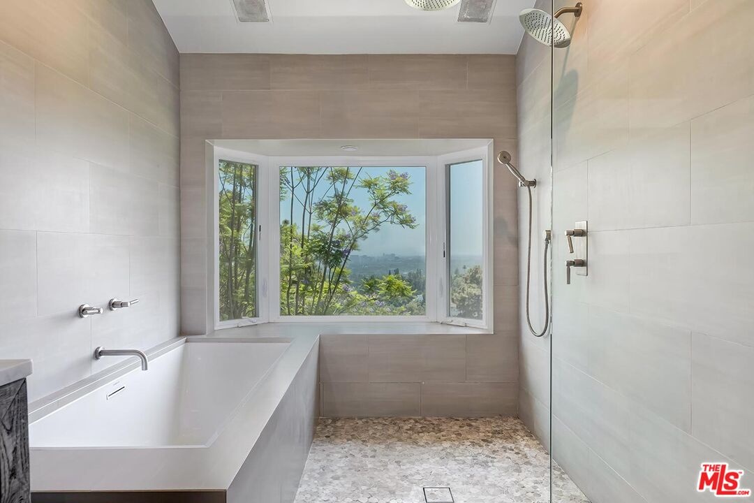 Designer Custom Home with Panoramic Views in Prime BHPO. Set high above the city in a peaceful, private enclave of the Beverly Hills Post Office, this striking 3BD + 3.5BA + Bonus Room Villa blends dramatic design with modern luxury, and a highly flexible floorplan. Designed by a celebrity designer, the residence showcases custom quality woodwork and detailing like no other. The breathtaking 180 views of the city skyline, ocean, and canyons are showcased from every room. The expansive living room is filled with natural light and defined by soaring beamed ceilings, a stunning stone fireplace, and oversized windows framing Downtown LA and West Hollywood, including the Pacific Deign Center. It flows seamlessly into the dining area and out to the entertainer's dream deck, spanning nearly the entire length of the home, offering unobstructed panoramic vistas including Century City, the ocean, the Getty Center and canyons, and effortless indoor/outdoor living. The chef's kitchen is outfitted with high-end stainless steel appliances, abundant cabinetry, stylish tile flooring, and a bay window with hillside views, plus direct access to the deck for morning coffee or al fresco dining. The luxurious primary suite is a true retreat, featuring a wall-to-wall window of view, a massive walk-in dressing room with custom built-ins and an additional wall of closets. The beautifully renovated spa-like en-suite primary bathroom includes double sinks, intricate tilework, and a soaking tub set within the shower, all overlooking the treetops and skyline. The main level also includes a light-filled second bedroom with built-ins, a fully renovated hall bath with skylight, and a chic powder room with custom paint. Downstairs has en-suite third room with more views and renovated bathroom, as well as the laundry room and Bonus room, ideal for a home office, creative studio, or gym. Other great features include Gothic inspired architectural detail, beautiful hardwood floors throughout, dual zone HVAC, lush greenery including a variety of fruit trees and direct access garage with extensive storage and rubberized flooring for another in-home gym option. Located on a peaceful cul-de-sac street, surrounded by prestigious estate properties and offering effortless access to Beverly Hills, West Hollywood, the Valley, and the Westside, this one-of-a-kind residence delivers privacy, scale, architectural pedigree, and unforgettable indoor/outdoor entertaining.