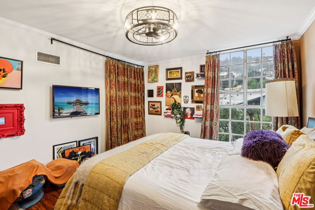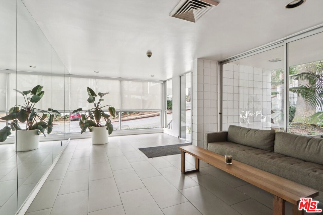 This top floor, two-bedroom condo in West Hollywood's iconic Sunset Penthouse building offers unbeatable views and classic mid-century modern style by renowned architect Frank P. Schneider. Located just below Sunset Boulevard, the Northeast corner unit sits beside the elevator, creating the feel of a private lift delivering you directly into your penthouse retreat. Inside, a bright open floor plan with high ceilings and hardwood floors feature a dramatic floor-to-ceiling glass wall that opens to a large private balcony with sweeping Hollywood Hills views. The spacious living and dining areas, complete with a wet bar and chef's kitchen, are ideal for entertaining, while additional highlights include recessed lighting, central heating and air conditioning, washer/dryer hookups, two side-by-side covered parking spaces, extra storage, and access to a rooftop terrace with panoramic 360-degree views perfect for sunset gatherings on the sundeck. Priced under $1 million, this home presents an exceptional opportunity for first-time buyers to enter the market in style, with prime walkability to the Sunset Strip, La Cienega, and Santa Monica Boulevard, Saddle Ranch, Sunset Tower Hotel, THE PUBLIC (formerly known as The Standard), The Comedy Store, just blocks from top restaurants and nightlife. William S. Hart Park and Off-Leash Dog Park offers a peaceful, tree-lined retreat on the former estate of silent-film star William S. Hart, providing a charming neighborhood oasis for residents and their pets while remaining close to the Sunset Tower Hotel and the heart of West Hollywood. Walk score 97!!!!