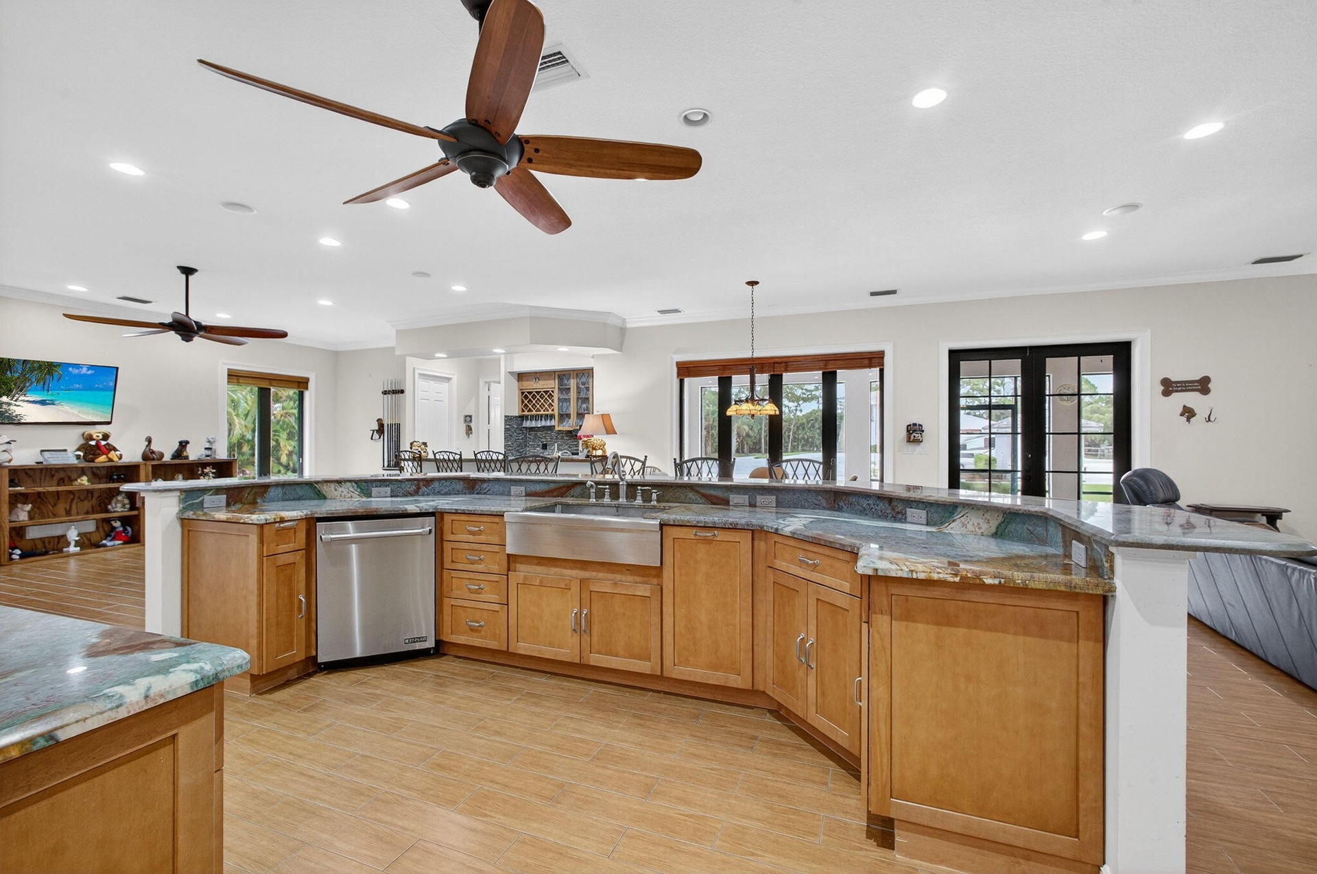 A 20 x 40 - 10' deep pool, impact windows , beautiful SLATE roof and spacious three-car garage completes the main residence.