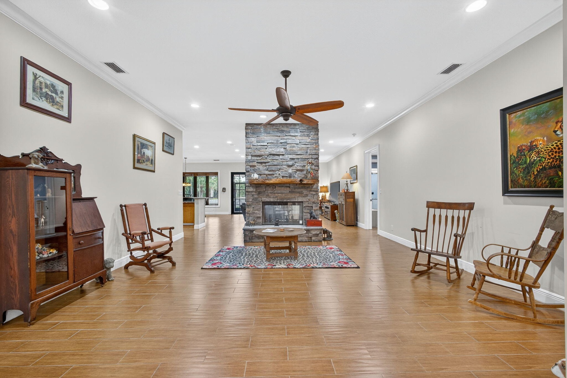 The main house, built in 2011, offers 4904 SF of living space. Upon entering you are greeted by a ''pass-thru'' floor to ceiling, stone fireplace that serves both the living room and the family room.