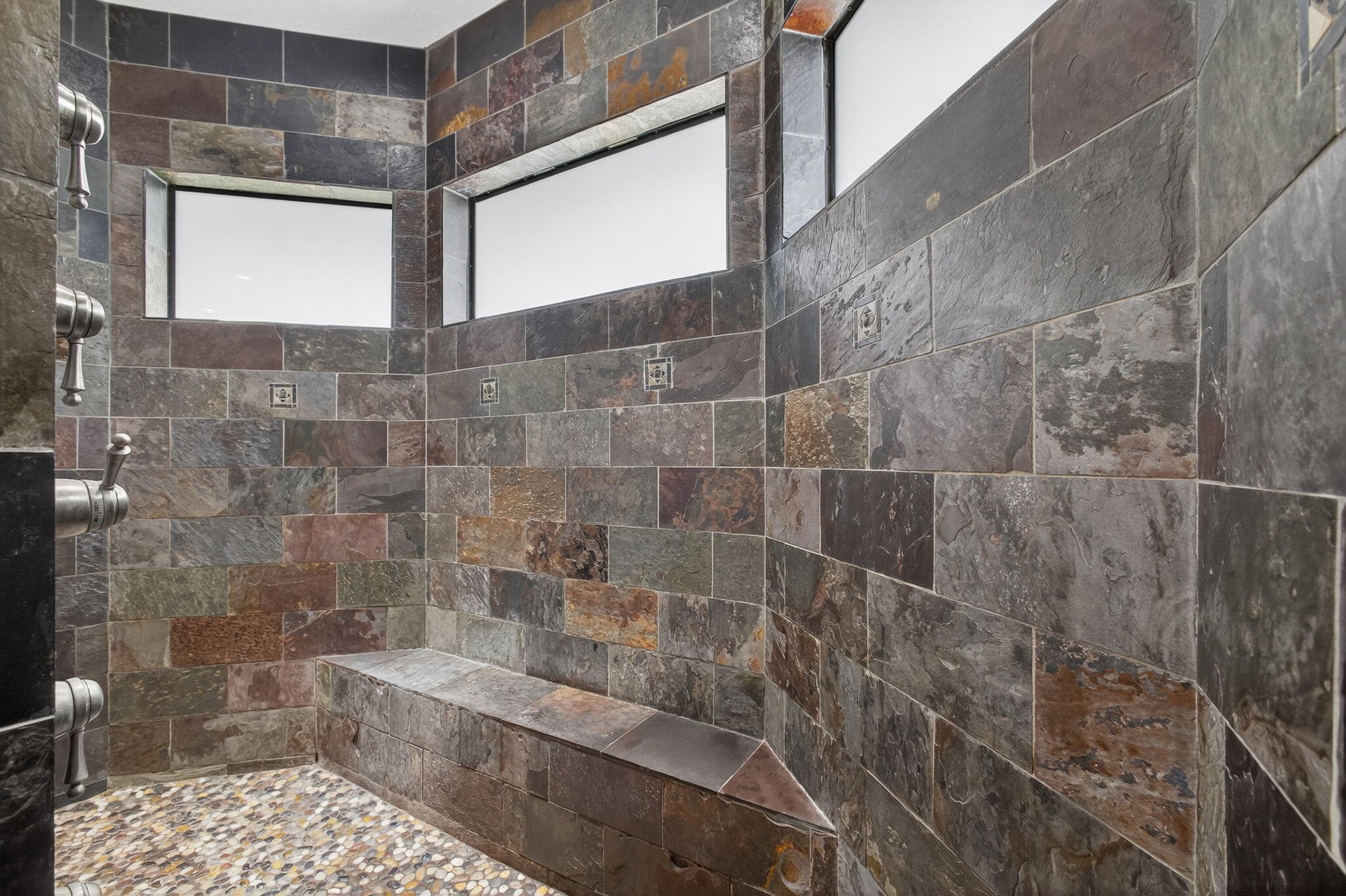 The primary bedroom suite measures 26'x20' with the above-mentioned bonus room while the primary bathroom offers a spa-like experience boasting a full-sized sauna, a jacuzzi tub, walk-thru shower and his and her water closets.