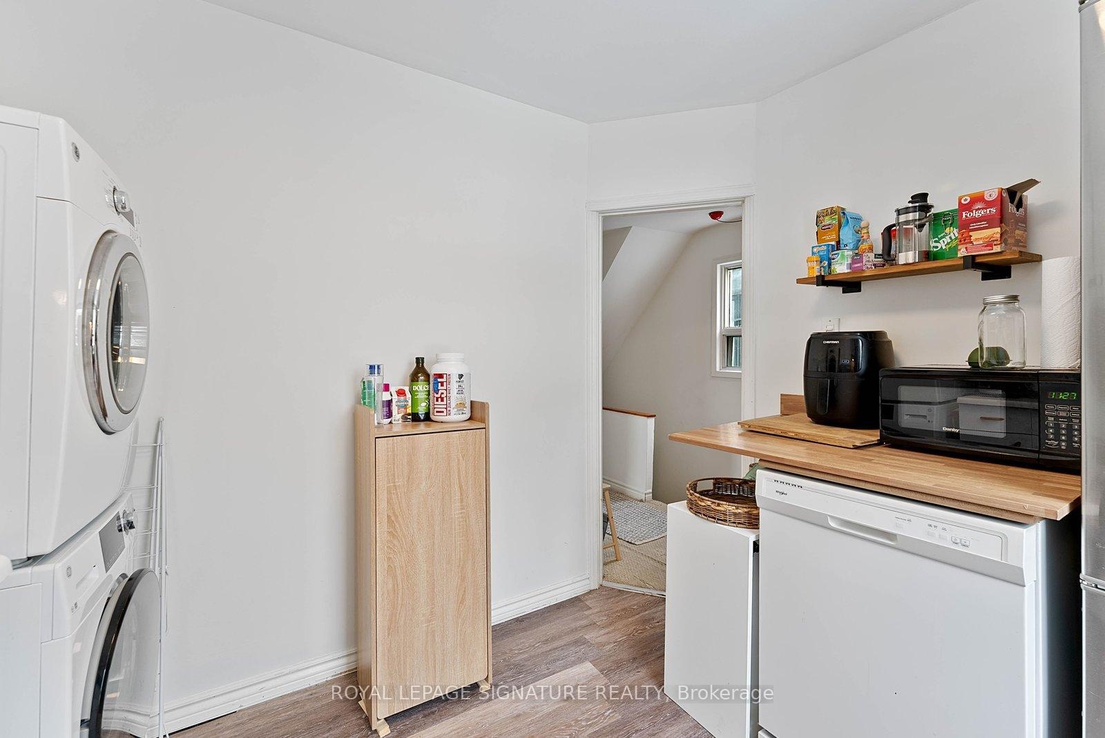 Live The Leslieville Lifestyle in this upper two storey detached duplex home with utilities. This lovely home has a great layout across approximately that offers a flexible configuration with the generouslysized living room and separate dining room that could easily be used as a 3rd bedroom. The upper level has an open concept bedroom/homeoffice/living room with a walk-out to your private deck. One full bathroom and in-suite laundry within the kitchen complete the key features of thehome. The ideal home for a family or up to 3 roommates. Enjoy all that Leslieville has to offer with the plethora of restaurants, cafes andboutiques. Easy streetcar access to Downtown Toronto or The Beach. Just minutes on foot to the family friendly Greenwood Park where you canenjoy the 35m outdoor pool in the summer and Toronto's first covered outdoor ice/ball hockey rink. Also at Greenwood Park are baseballdiamonds, pickleball court, outdoor table tennis, fitness equipment, a splash pad for kids, an ice-skating trail and more! Street permit parking available.