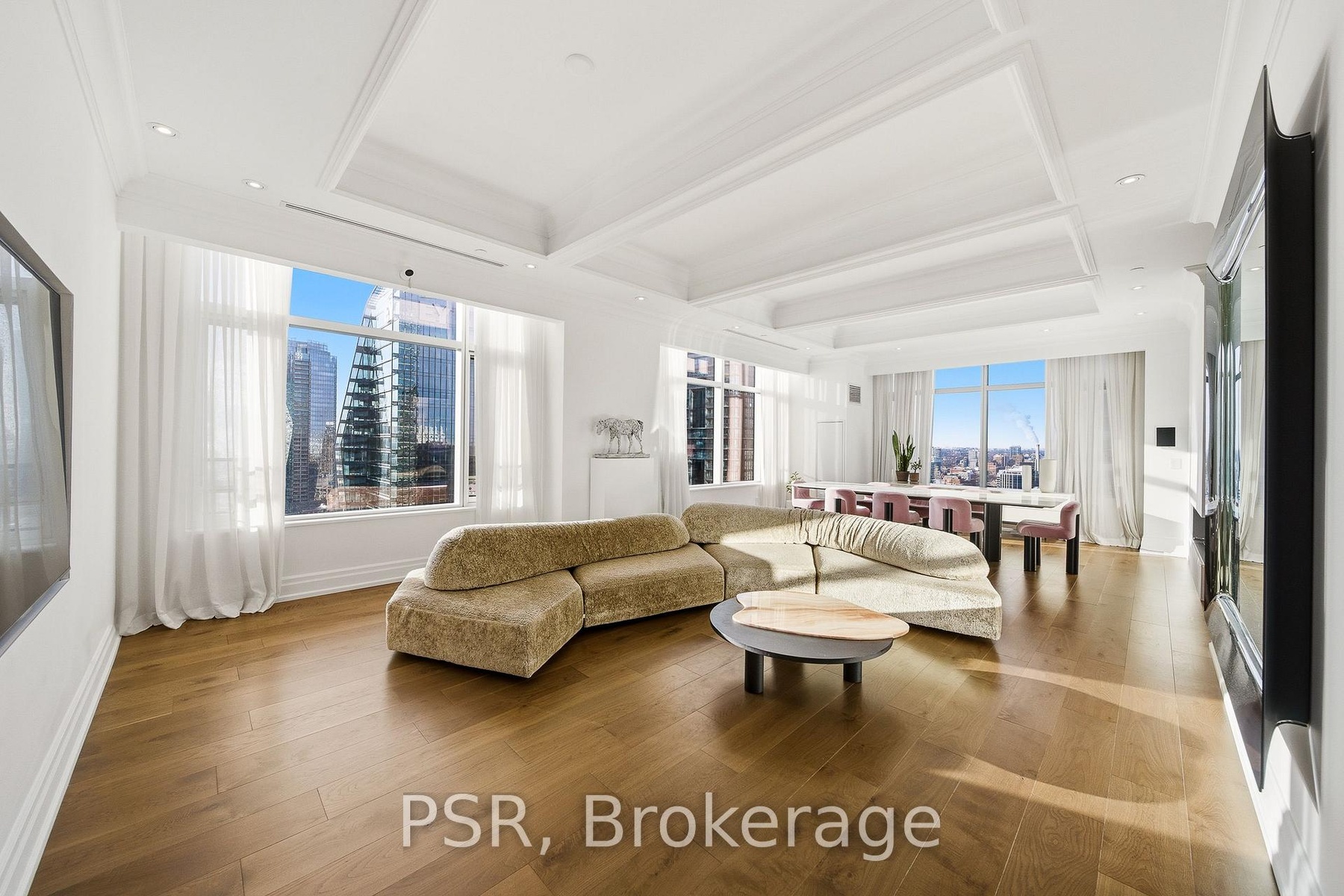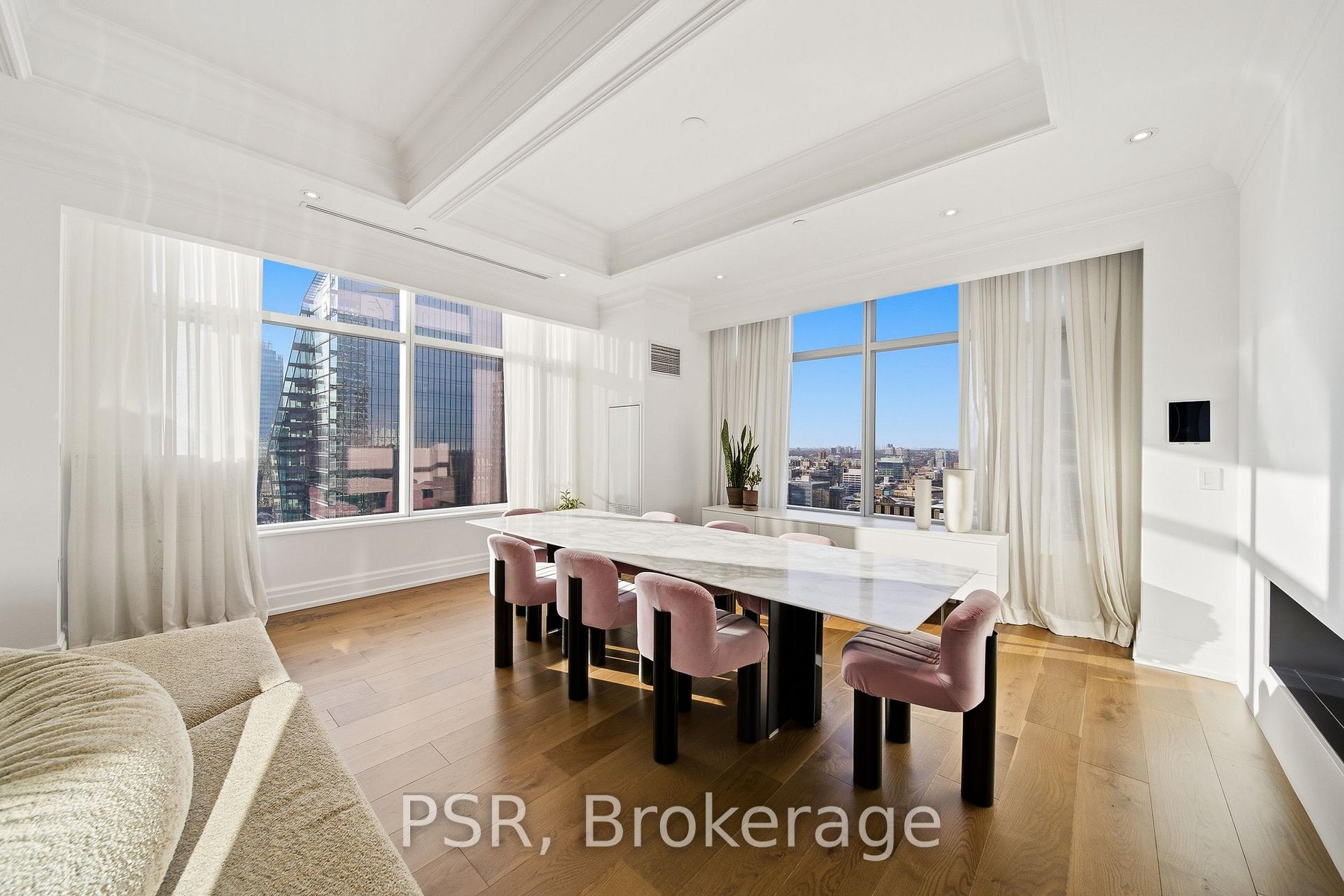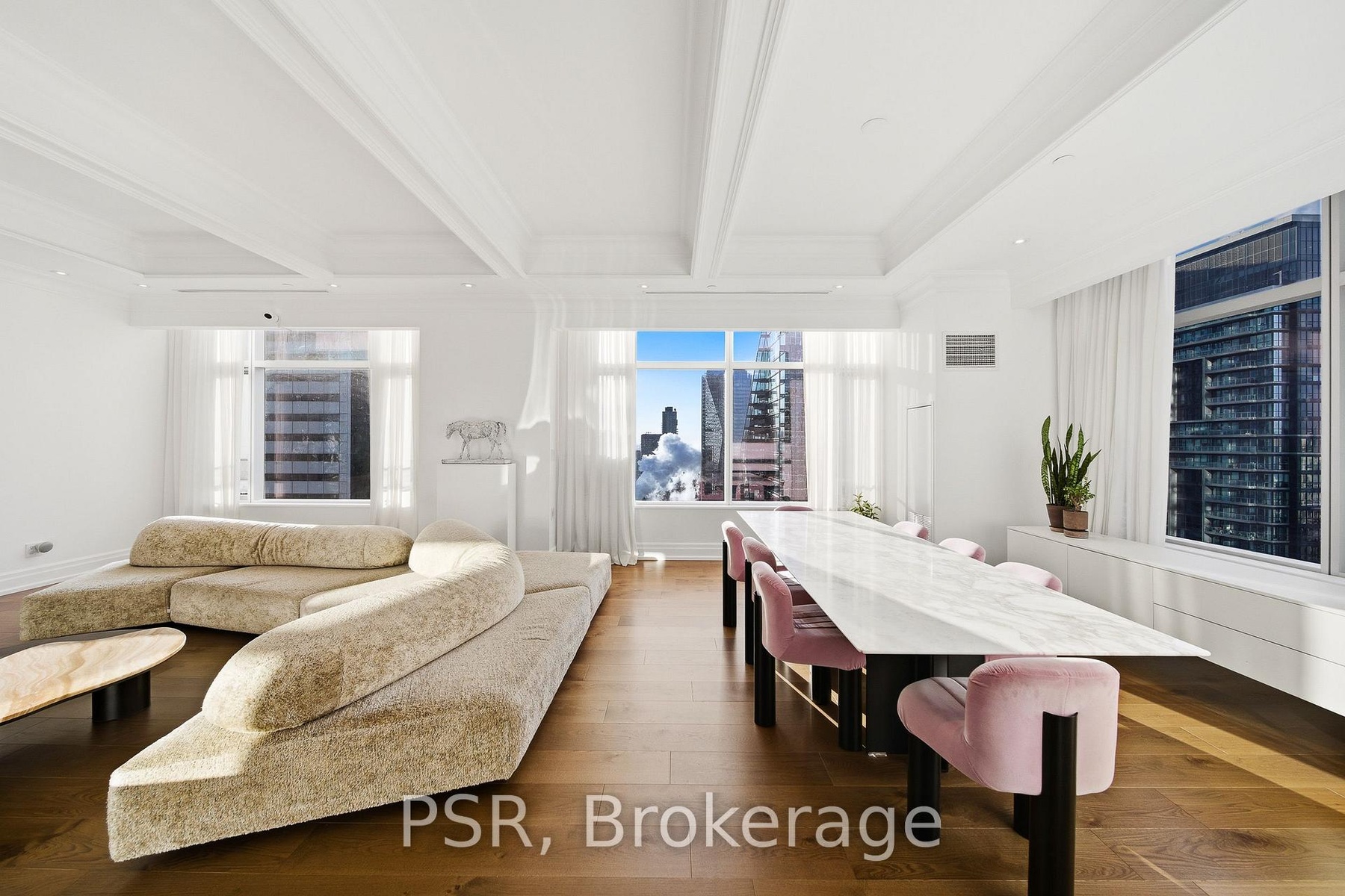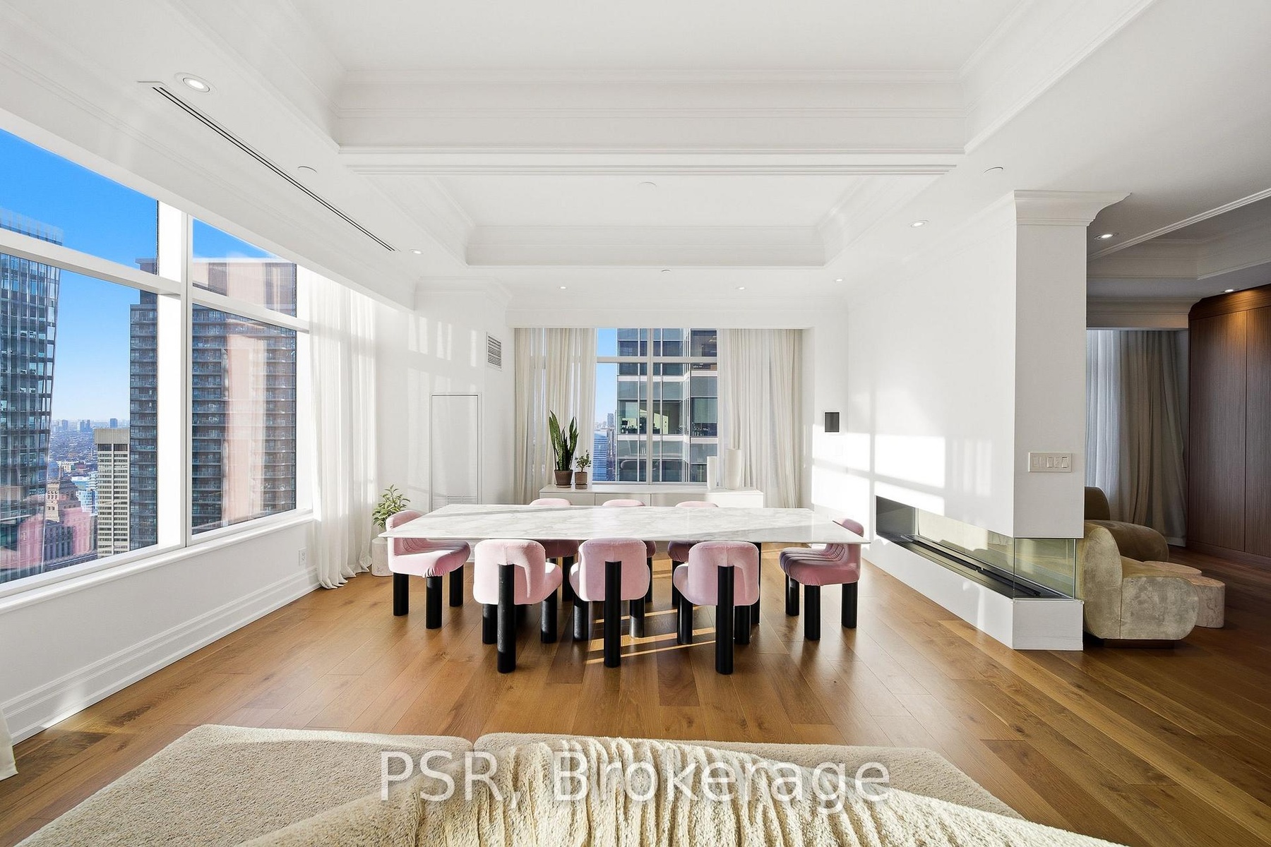 An Exceptional Offering - Welcome To Suite 3601 At The Iconic St. Regis Residences. This Beautifully Reimagined 2 Bedroom, 3 Bathroom, Corner Suite Is Presented Fully Furnished. Showcasing Refined Craftsmanship And Thoughtful Design Throughout - No Detail Has Been Overlooked Or Expense Spared. Ideal As A Sophisticated Full-Time Residence Or An Elegant Pied-A-Terre, The Suite Features Extensive Renovations Throughout, Boasting Custom Millwork, A Striking Double-Sided Fireplace, Marble Clad Powder Room, Dramatic 10.5' Coffered Ceilings, And Italian Hardwood And Stone Flooring Throughout. A Desirable Northwest Exposure Delivers Panoramic City Skyline And Lake Ontario Views. The Serene Primary Bedroom Retreat Offers Generous Custom Closets, Integrated Built-Ins, And A Spa-Inspired 4pc. Ensuite. Tenant To Pay Hydro & Valet/Parking. 1 Locker Included. As A Resident Of The St. Regis You'll Enjoy Daily Access To World Class Hotel Amenities - 24 Hour Concierge, Indoor Saltwater Pool, State Of The Art Fitness Centre, Sky Lobby Terrace, And More.