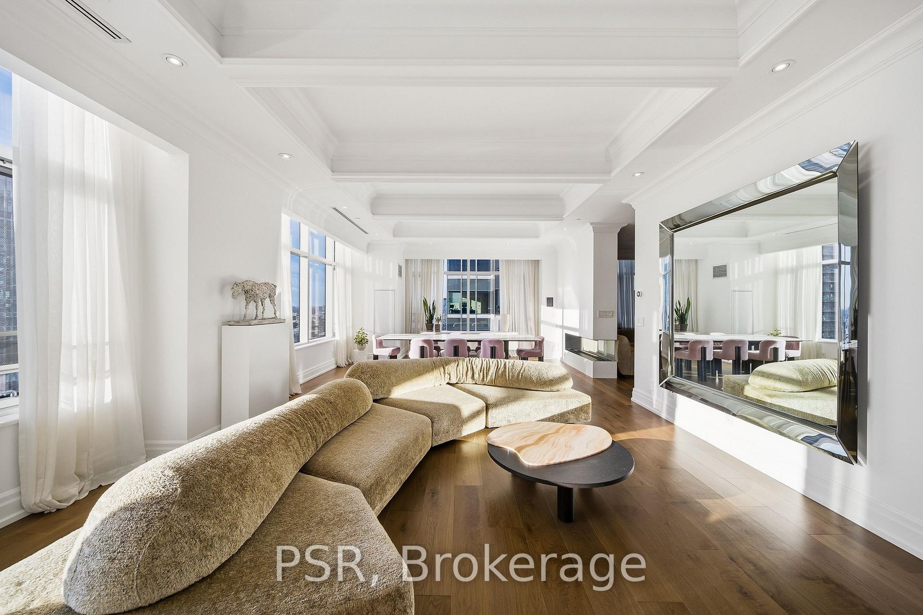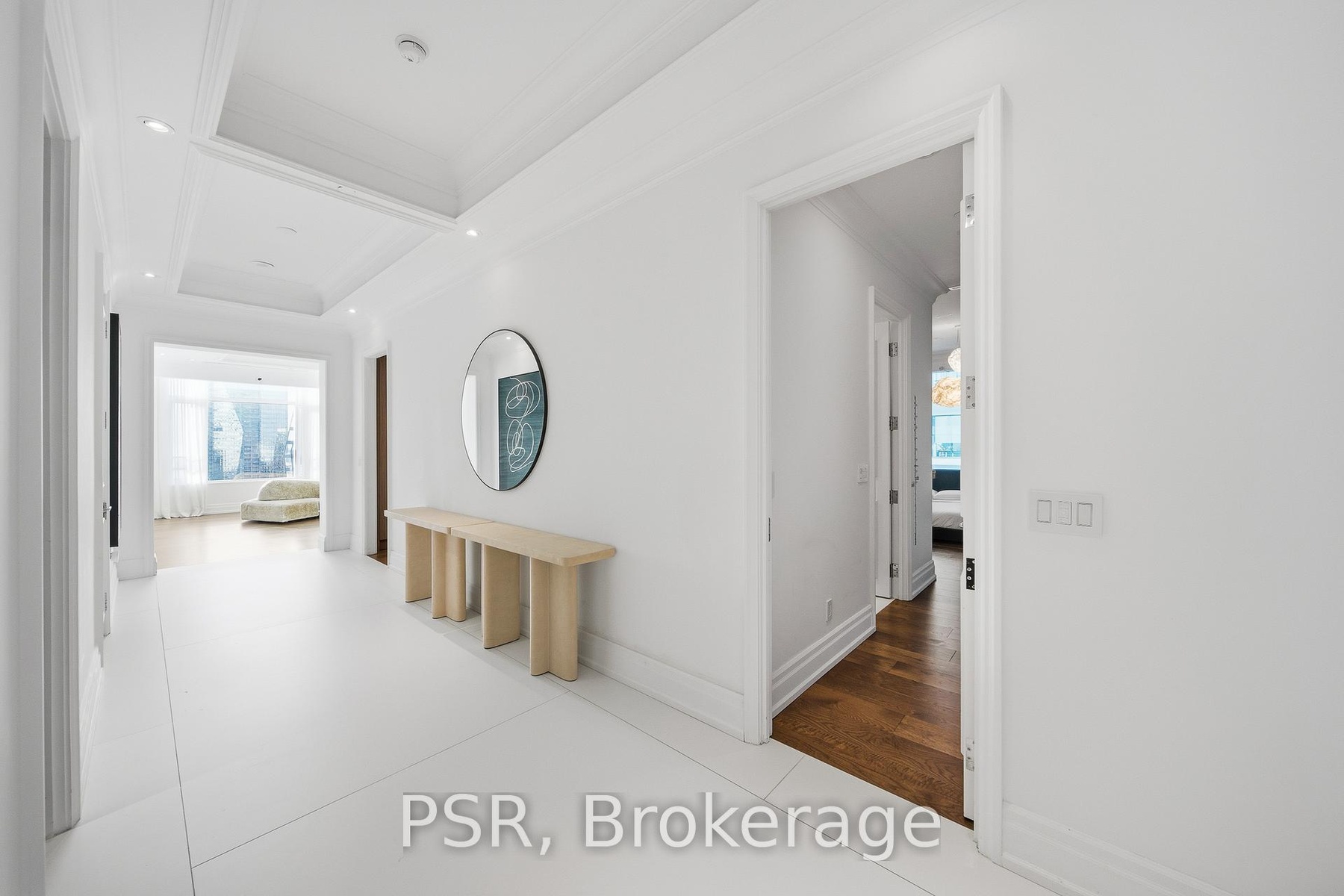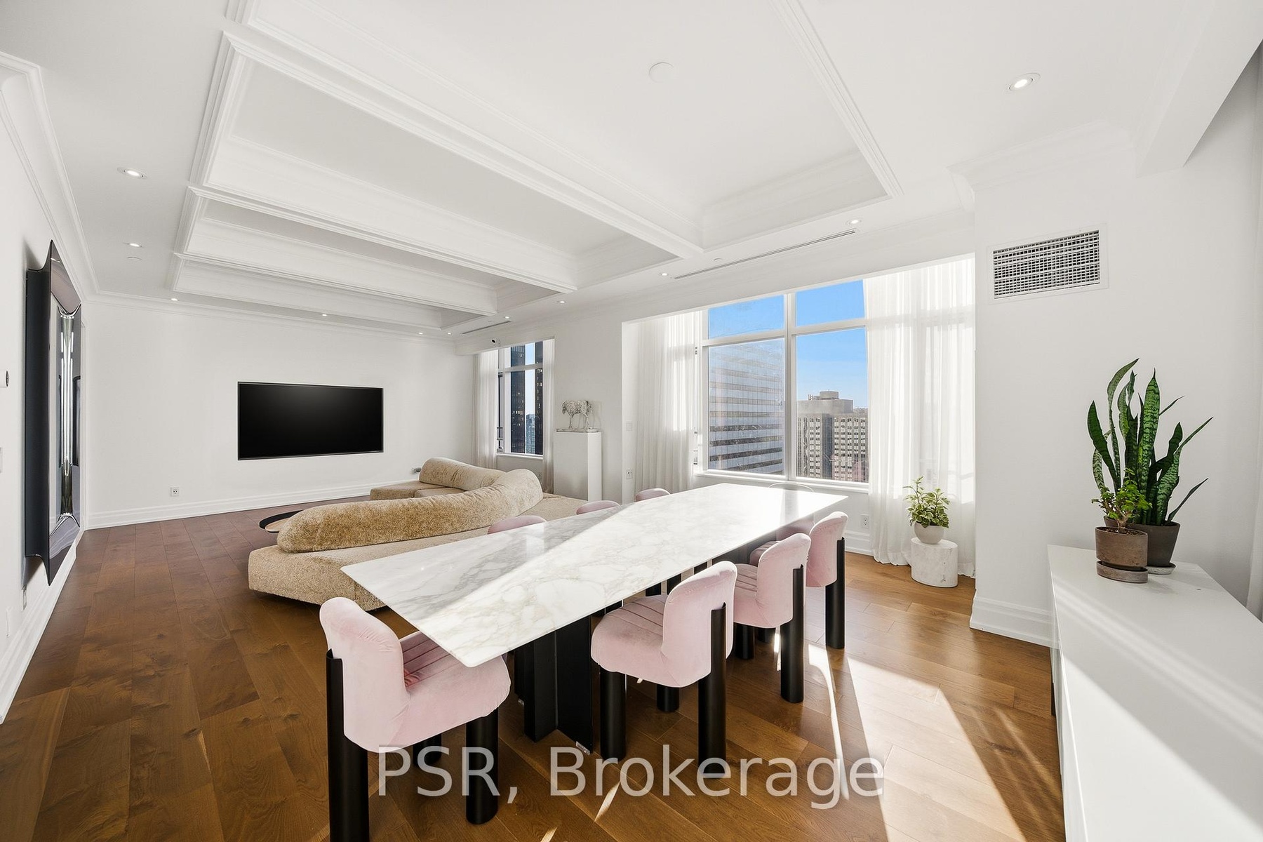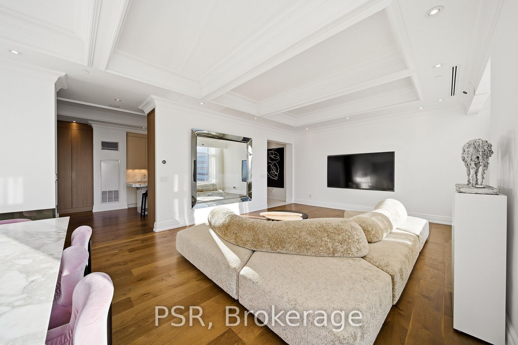 An Exceptional Offering - Welcome To Suite 3601 At The Iconic St. Regis Residences. This Beautifully Reimagined 2 Bedroom, 3 Bathroom, Corner Suite Is Presented Fully Furnished. Showcasing Refined Craftsmanship And Thoughtful Design Throughout - No Detail Has Been Overlooked Or Expense Spared. Ideal As A Sophisticated Full-Time Residence Or An Elegant Pied-A-Terre, The Suite Features Extensive Renovations Throughout, Boasting Custom Millwork, A Striking Double-Sided Fireplace, Marble Clad Powder Room, Dramatic 10.5' Coffered Ceilings, And Italian Hardwood And Stone Flooring Throughout. A Desirable Northwest Exposure Delivers Panoramic City Skyline And Lake Ontario Views. The Serene Primary Bedroom Retreat Offers Generous Custom Closets, Integrated Built-Ins, And A Spa-Inspired 4pc. Ensuite. Tenant To Pay Hydro & Valet/Parking. 1 Locker Included. As A Resident Of The St. Regis You'll Enjoy Daily Access To World Class Hotel Amenities - 24 Hour Concierge, Indoor Saltwater Pool, State Of The Art Fitness Centre, Sky Lobby Terrace, And More.
