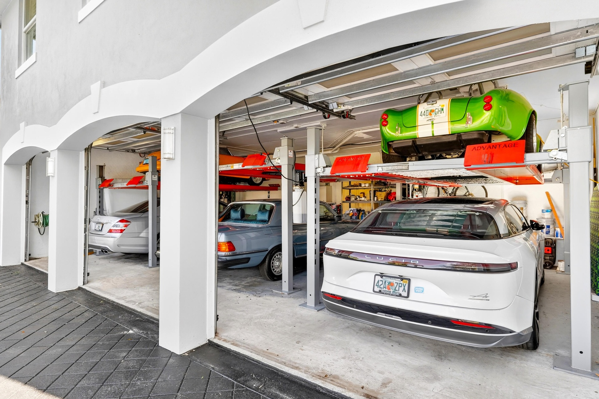 Bring your cherished collectible cars to this spectacular contemporary residence, perfectly tucked away on a peaceful cul de sac overlooking the fresh waters of Lake Mangonia.