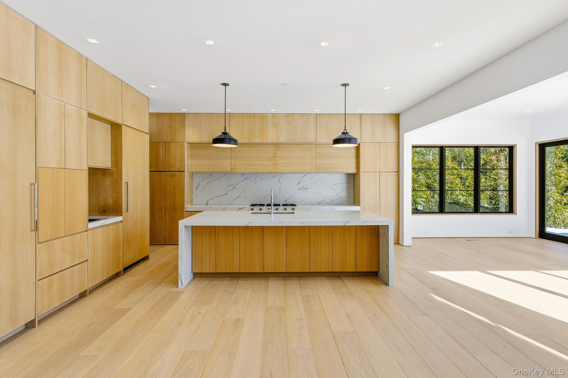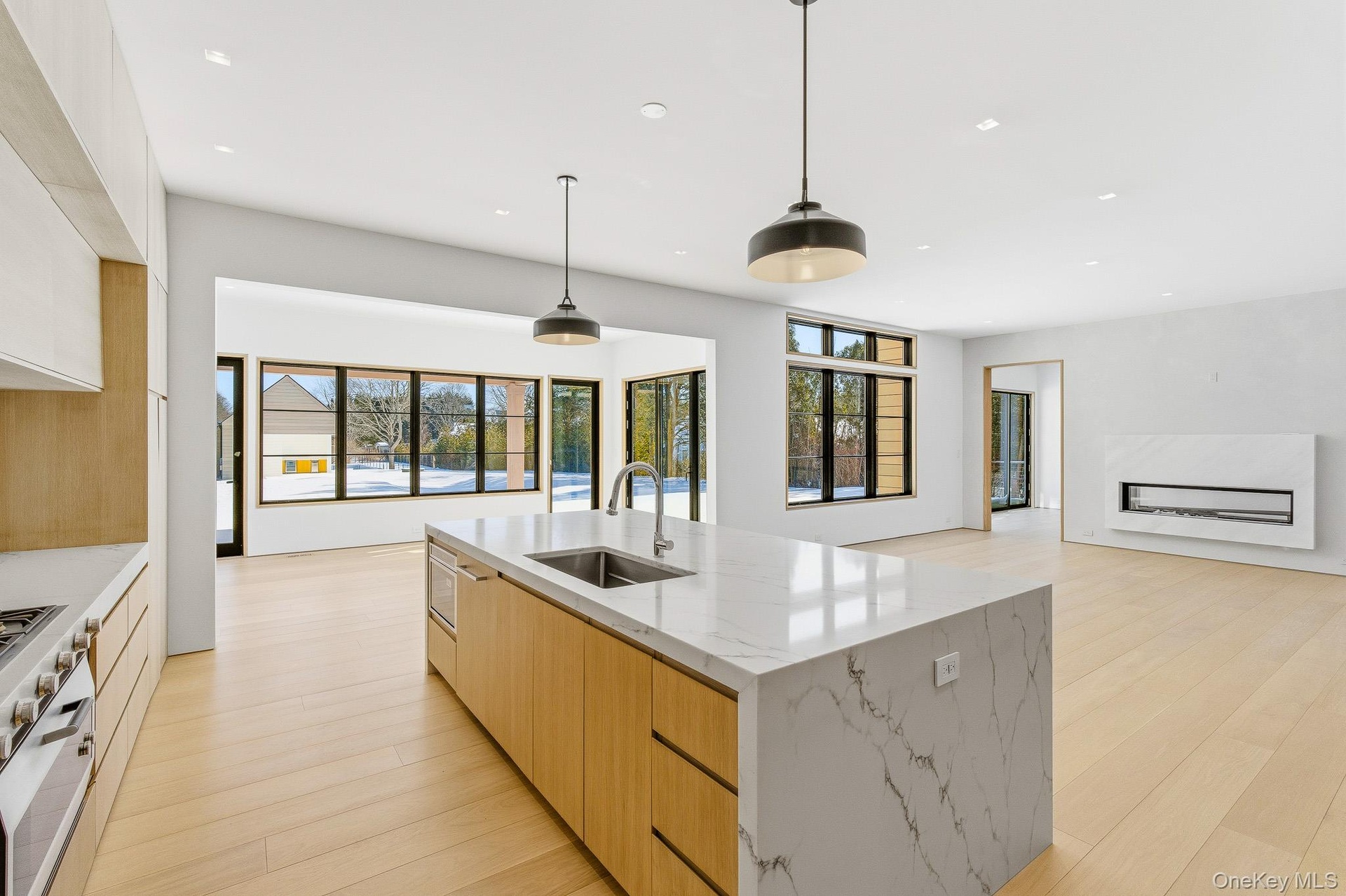 Step inside and be greeted by a soaring double-height foyer, setting the tone for the grand yet warm interior that flows effortlessly into the heart of the home—an open-concept living space anchored by a gourmet chef’s kitchen. Outfitted with state-of-the-art stainless steel appliances, an oversized island, and a walk-in pantry, this kitchen is ideal for both casual breakfasts and large-scale entertaining. A sleek double-sided fireplace connects the great room and den, while a formal dining room, home office, mudroom with built-ins, and a junior primary suite with a private deck complete the first floor.
