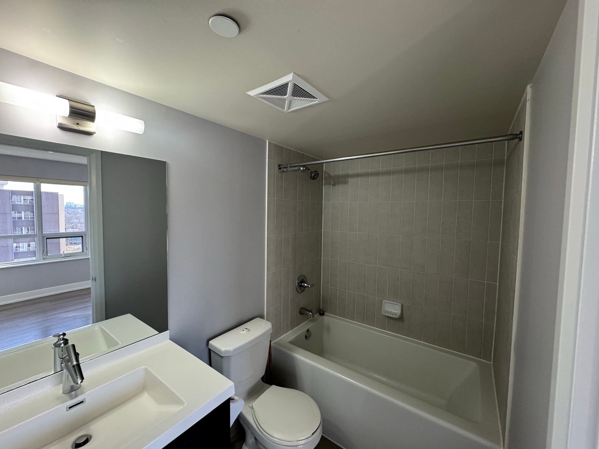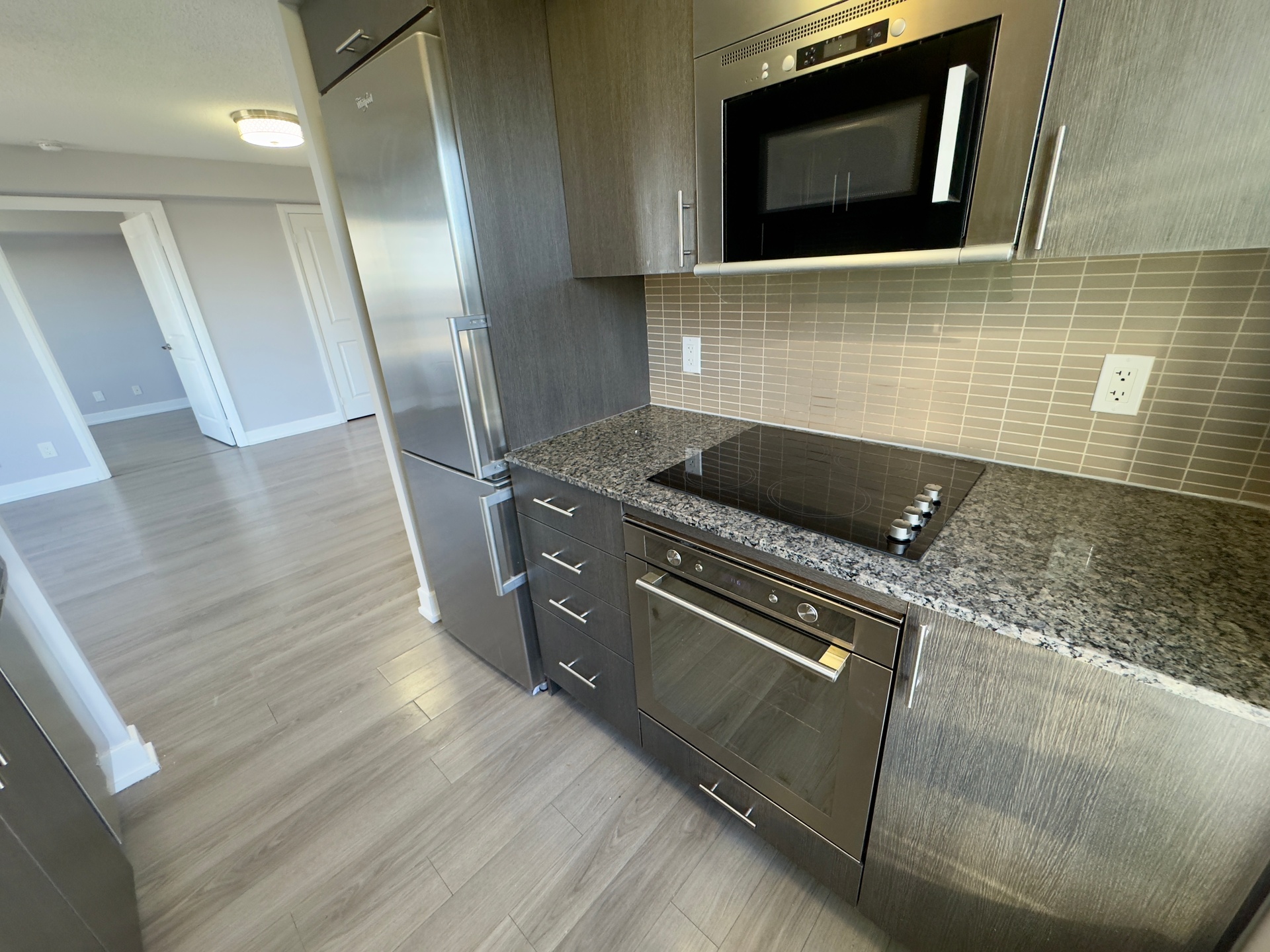 Welcome to West Village I by Tridel, Etobicoke West Mall's premier community. This unit offers 815 square feet of living space. The north-facing balcony provides outdoor space, with a tranquil view. The building offers an impressive array of amenities. Residents have access to a well-equipped gym, a stunning two-story aquatic center with an indoor pool, whirlpool, and a sauna. For those who enjoy entertaining, the building includes a stylish party room and a media room perfect for private screenings. Guest suites are also available for visiting friends and family. With 24/7 concierge and security, you can feel confident and comfortable in your new home. Right at Highway 427, this location provides convenience for commuters, offering easy access to downtown Toronto, Pearson Airport, and other major highways. Nearby parks, shops, and dining options enhance the overall appeal, making this unit an excellent choice for those seeking modern living in a well-connected area. This unit offers the perfect combination of convenience, comfort, and lifestyle amenities in a sought-after building.