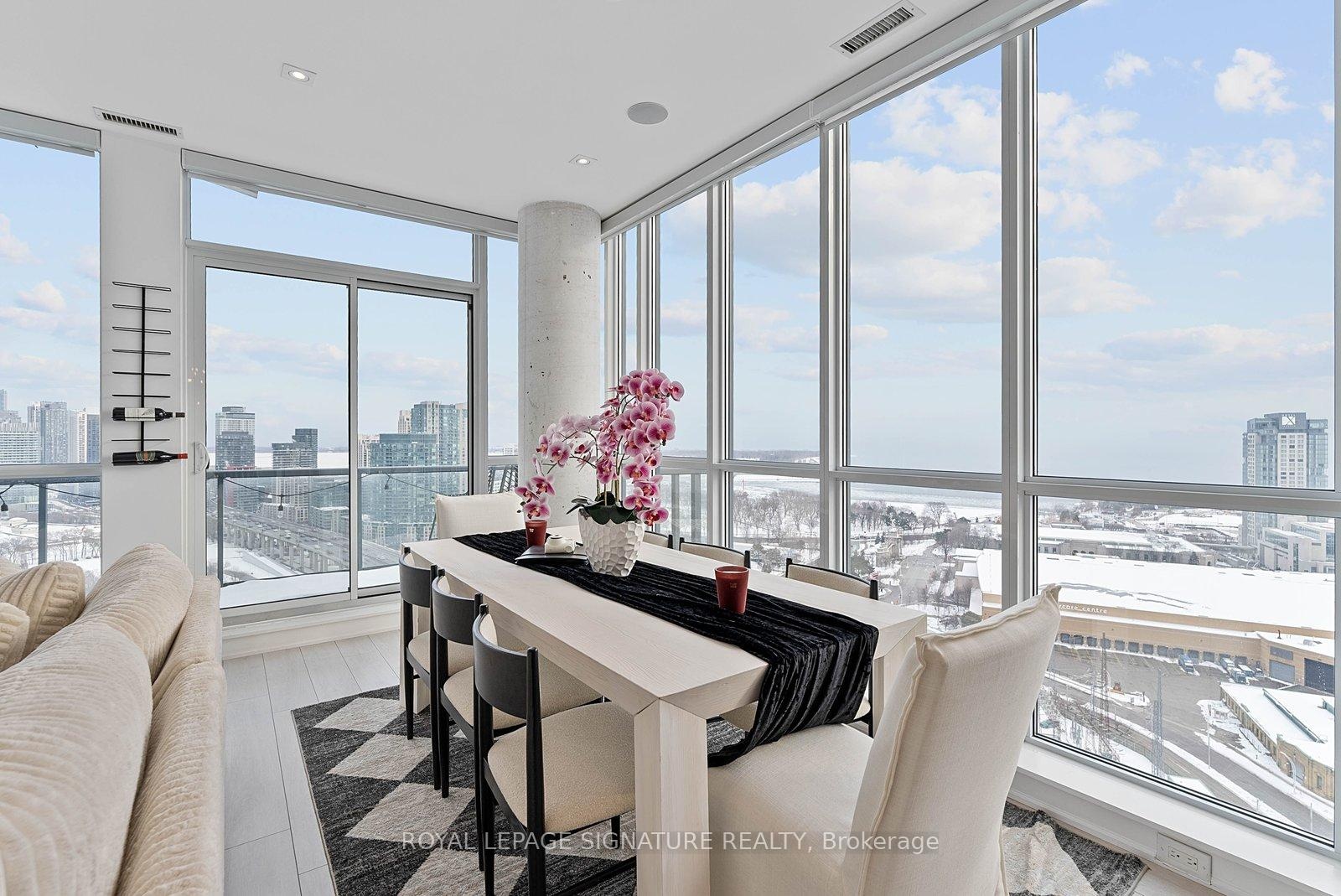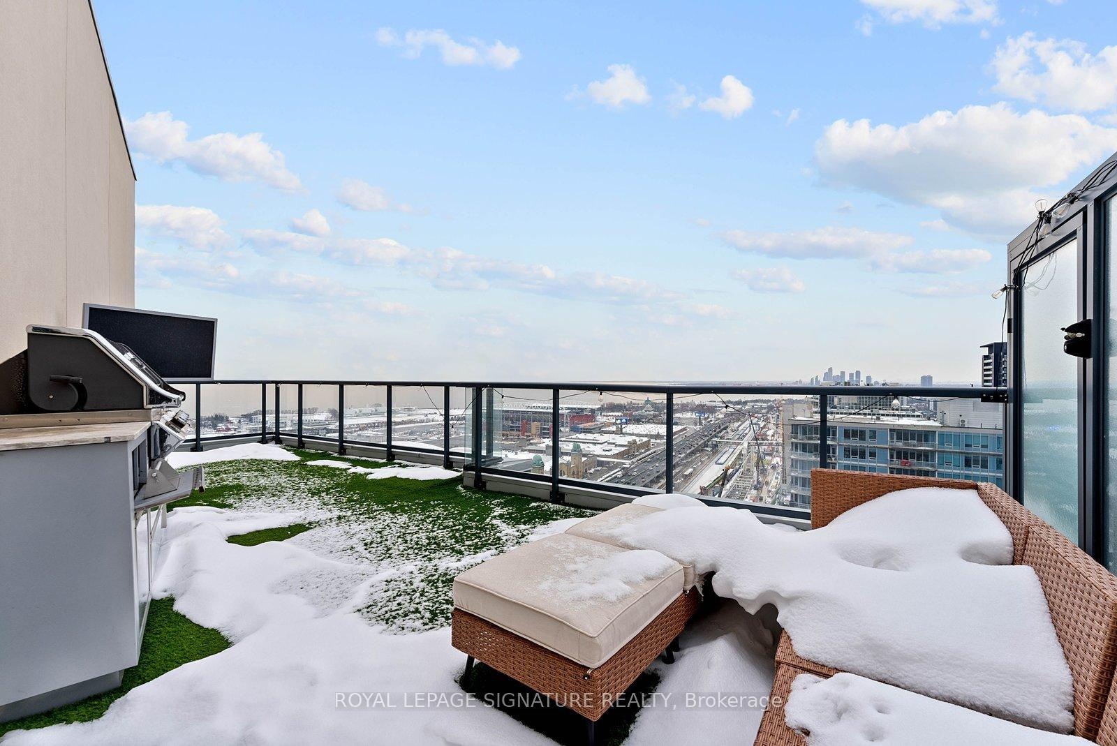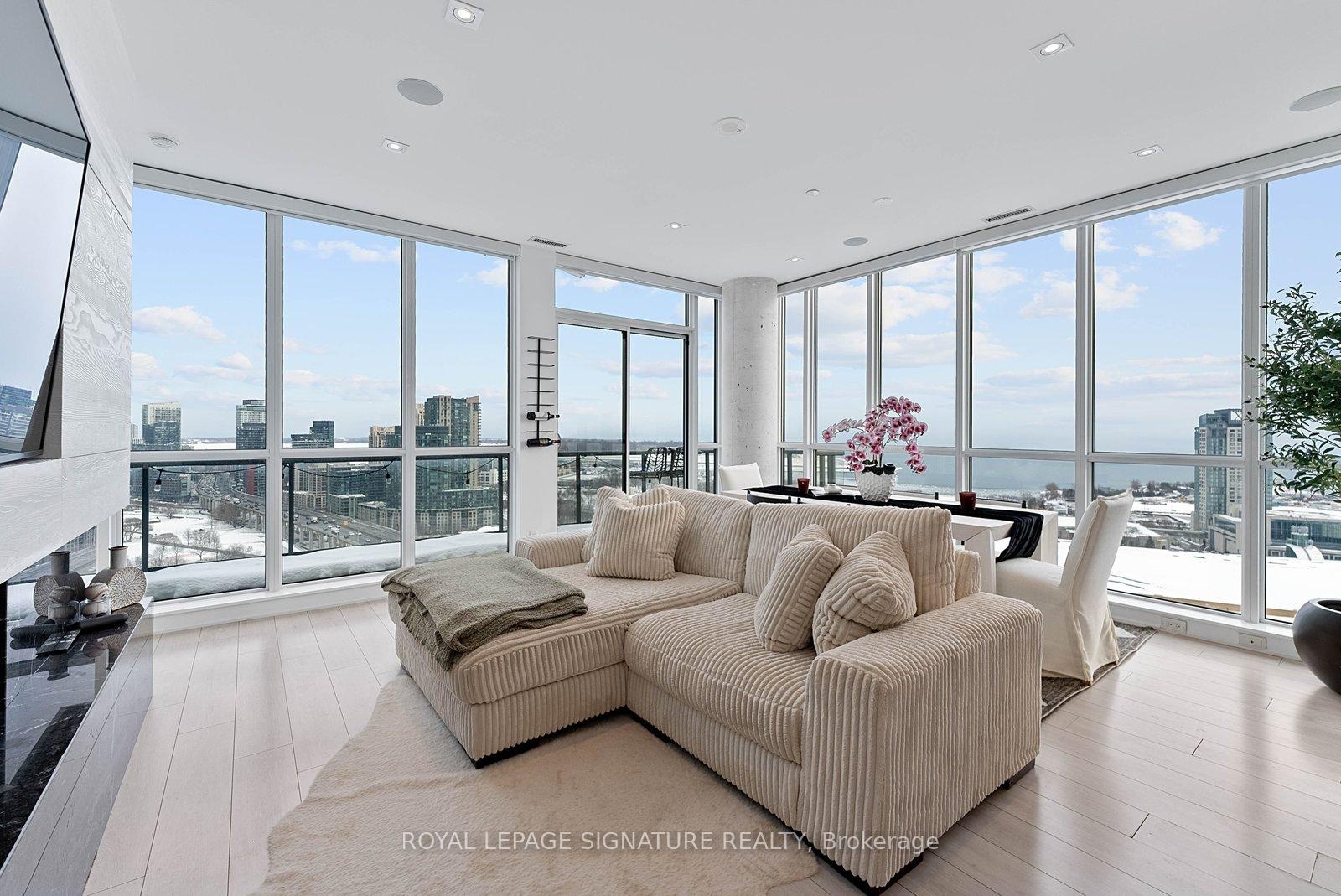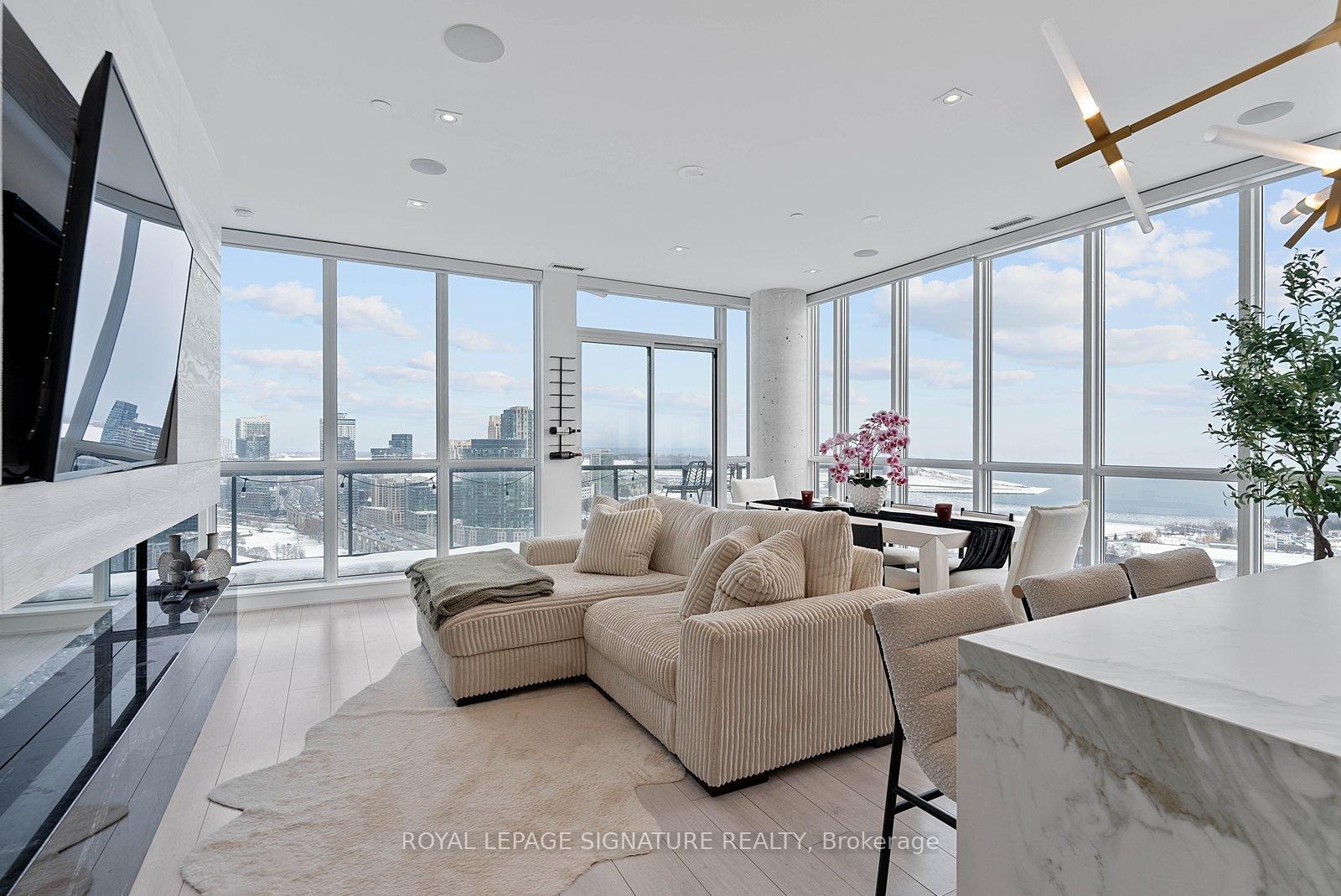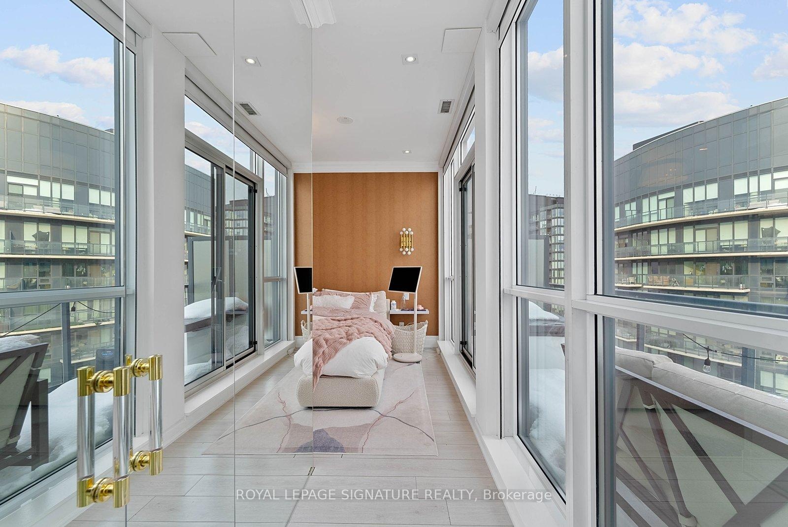 Experience elevated penthouse living in this one-of-a-kind 2+1 bedroom, 2 bathroom residence offering an expansive 1,855 sq ft of refined interior space and exceptional outdoor living. This stunning corner suite features floor-to-ceiling windows, an open-concept layout designed for entertaining, and breathtaking east-facing views of the CN Tower and Lake Ontario from the private balcony. A true standout, the private rooftop terrace offers an extraordinary retreat with southwest exposure, spectacular sunset views, and additional water vistas - perfect for hosting or relaxing above the city.The thoughtfully designed interior showcases contemporary finishes, a modern chef's kitchen with high-end appliances, spacious bedrooms, built-in storage, and flexible den space. The primary suite features a walk-out to the balcony and a private ensuite. Rarely offered wellness features including a private infrared sauna and cold plunge elevate the home's resort-like experience. Complete with parking, locker, and full-service building amenities, this exceptional residence offers sophisticated urban living at its finest. Ideally situated in the heart of Liberty Village, this residence offers the perfect balance of privacy and convenience - steps to premier dining, cafés, fitness studios, and waterfront trails, with seamless access to Downtown Toronto, Billy Bishop Airport, major highways, and key venues for the upcoming FIFA World Cup.