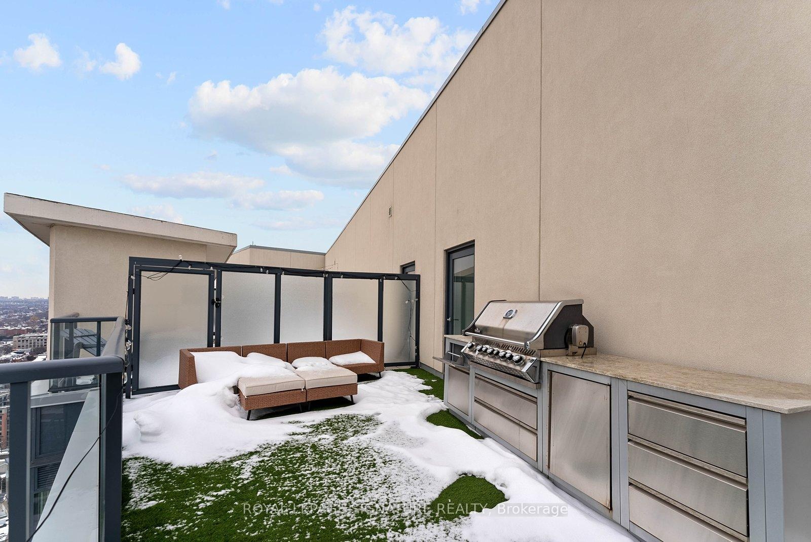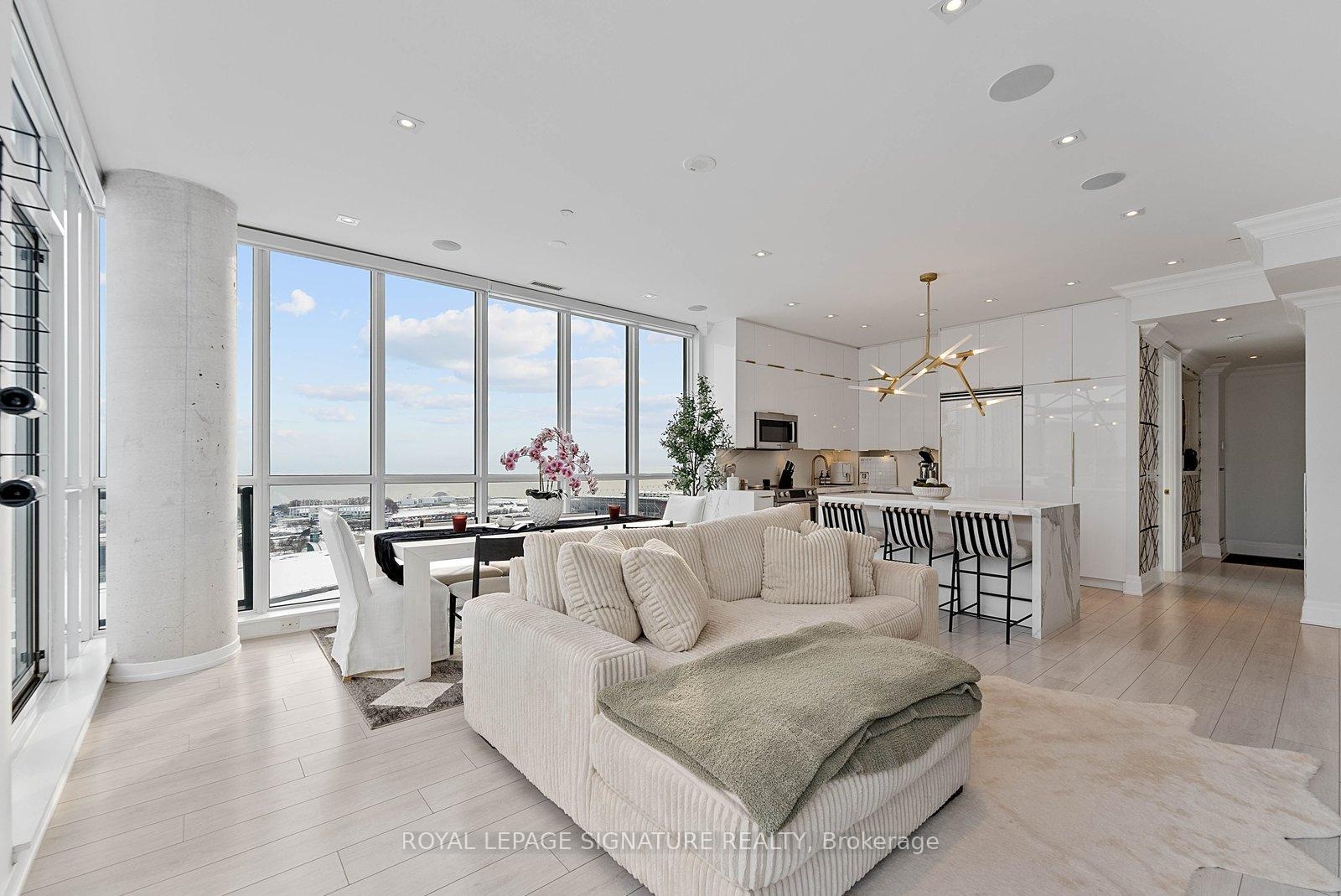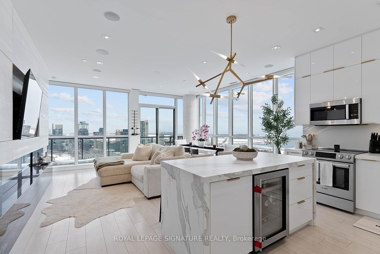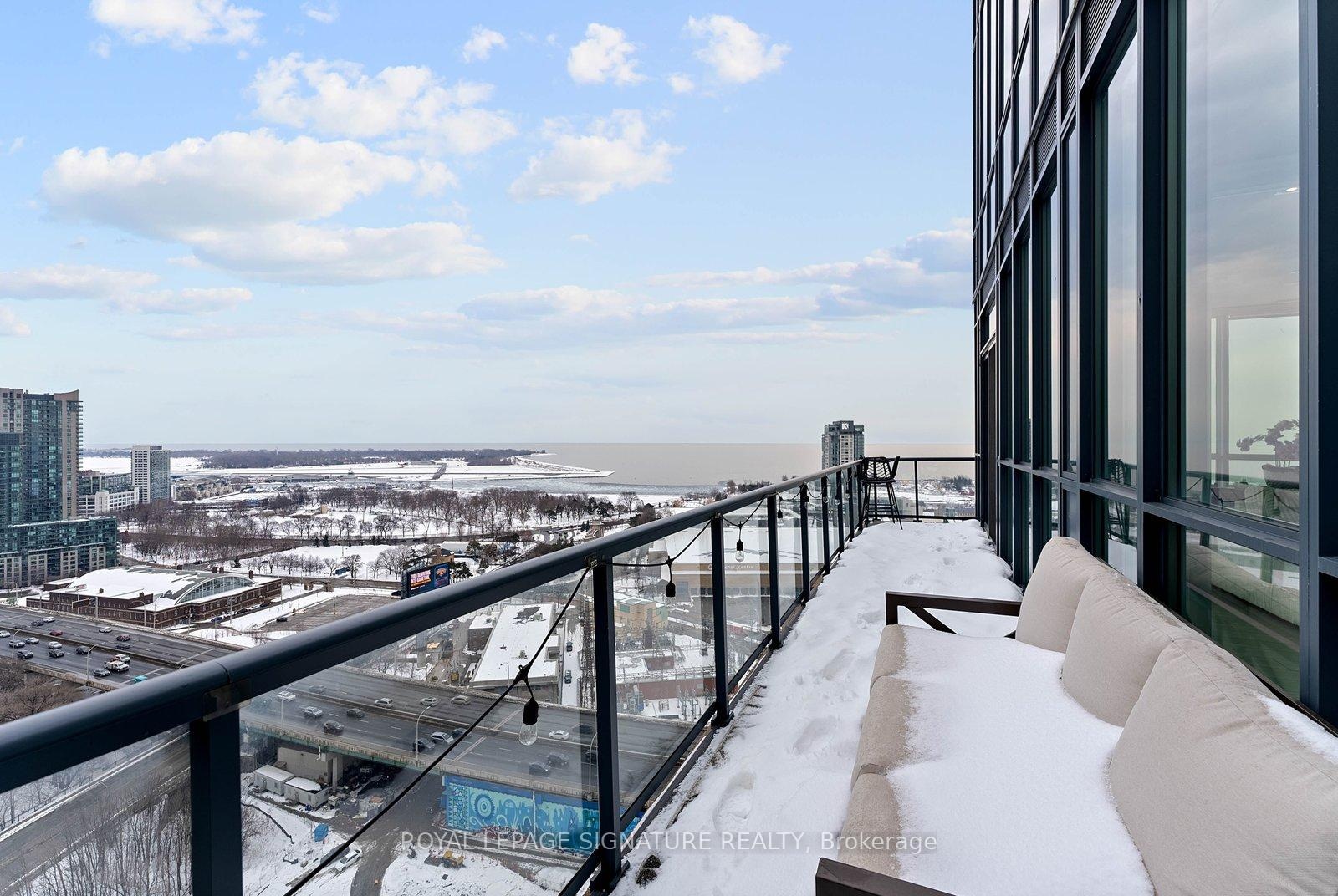 Experience elevated penthouse living in this one-of-a-kind 2+1 bedroom, 2 bathroom residence offering an expansive 1,855 sq ft of refined interior space and exceptional outdoor living. This stunning corner suite features floor-to-ceiling windows, an open-concept layout designed for entertaining, and breathtaking east-facing views of the CN Tower and Lake Ontario from the private balcony. A true standout, the private rooftop terrace offers an extraordinary retreat with southwest exposure, spectacular sunset views, and additional water vistas - perfect for hosting or relaxing above the city.The thoughtfully designed interior showcases contemporary finishes, a modern chef's kitchen with high-end appliances, spacious bedrooms, built-in storage, and flexible den space. The primary suite features a walk-out to the balcony and a private ensuite. Rarely offered wellness features including a private infrared sauna and cold plunge elevate the home's resort-like experience. Complete with parking, locker, and full-service building amenities, this exceptional residence offers sophisticated urban living at its finest. Ideally situated in the heart of Liberty Village, this residence offers the perfect balance of privacy and convenience - steps to premier dining, cafés, fitness studios, and waterfront trails, with seamless access to Downtown Toronto, Billy Bishop Airport, major highways, and key venues for the upcoming FIFA World Cup.