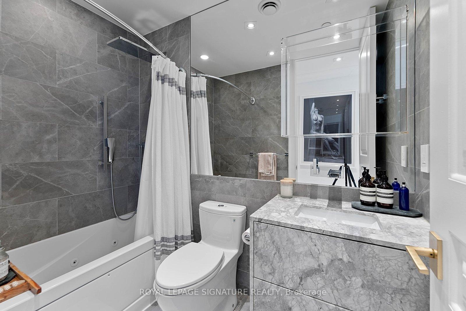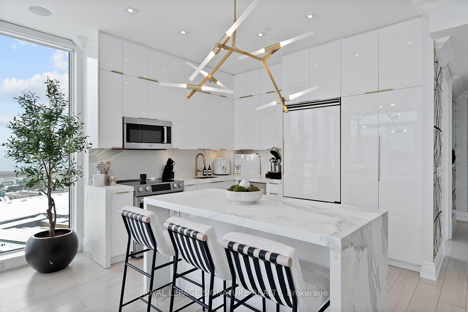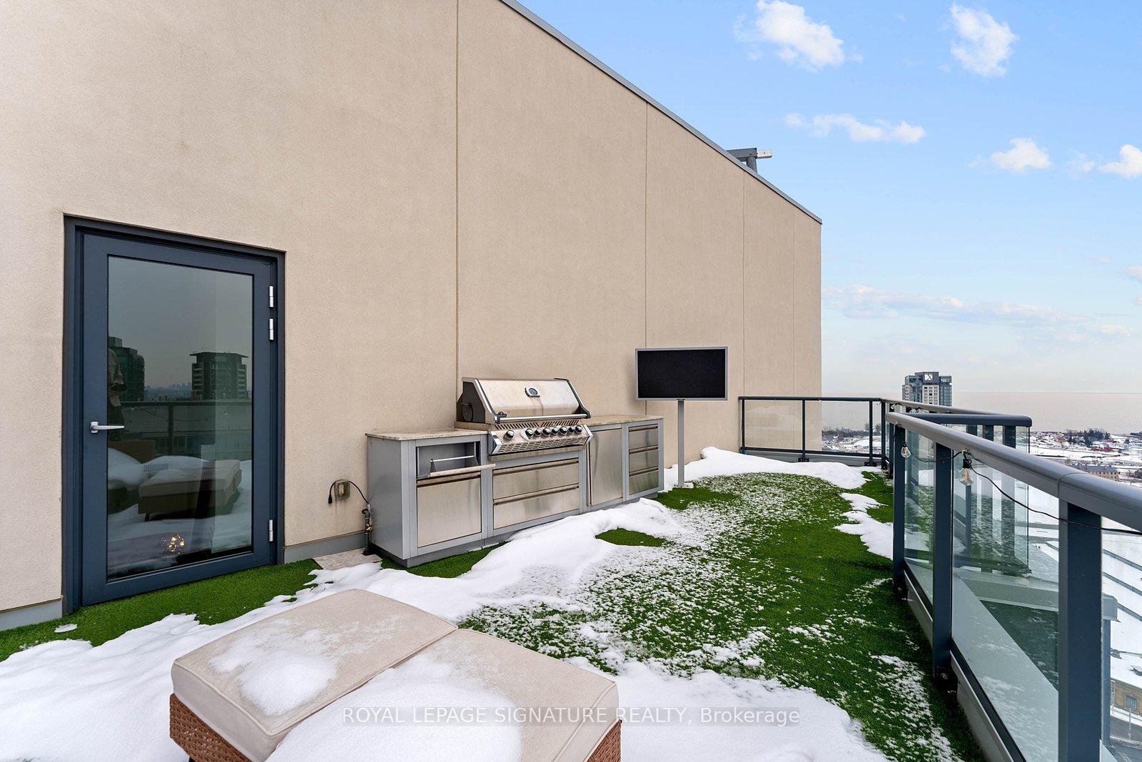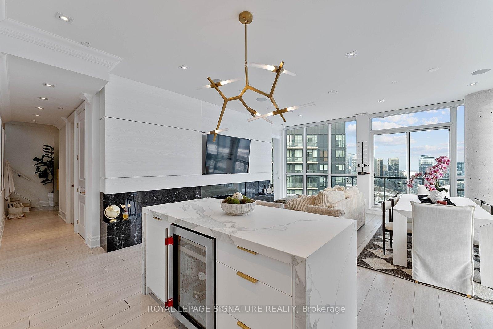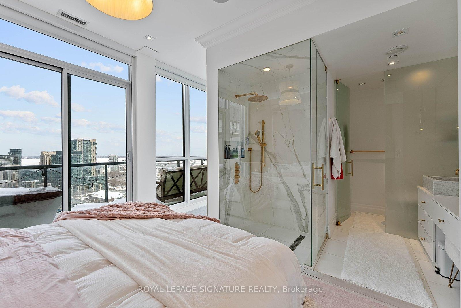 Experience elevated penthouse living in this one-of-a-kind 2+1 bedroom, 2 bathroom residence offering an expansive 1,855 sq ft of refined interior space and exceptional outdoor living. This stunning corner suite features floor-to-ceiling windows, an open-concept layout designed for entertaining, and breathtaking east-facing views of the CN Tower and Lake Ontario from the private balcony. A true standout, the private rooftop terrace offers an extraordinary retreat with southwest exposure, spectacular sunset views, and additional water vistas - perfect for hosting or relaxing above the city.The thoughtfully designed interior showcases contemporary finishes, a modern chef's kitchen with high-end appliances, spacious bedrooms, built-in storage, and flexible den space. The primary suite features a walk-out to the balcony and a private ensuite. Rarely offered wellness features including a private infrared sauna and cold plunge elevate the home's resort-like experience. Complete with parking, locker, and full-service building amenities, this exceptional residence offers sophisticated urban living at its finest. Ideally situated in the heart of Liberty Village, this residence offers the perfect balance of privacy and convenience - steps to premier dining, cafés, fitness studios, and waterfront trails, with seamless access to Downtown Toronto, Billy Bishop Airport, major highways, and key venues for the upcoming FIFA World Cup.