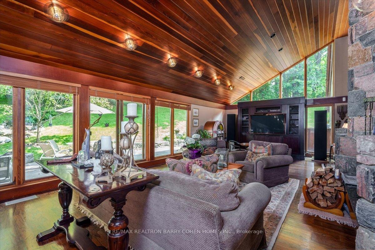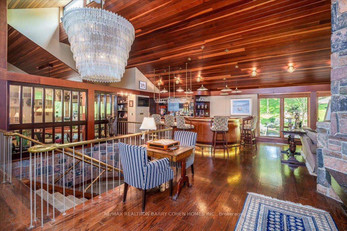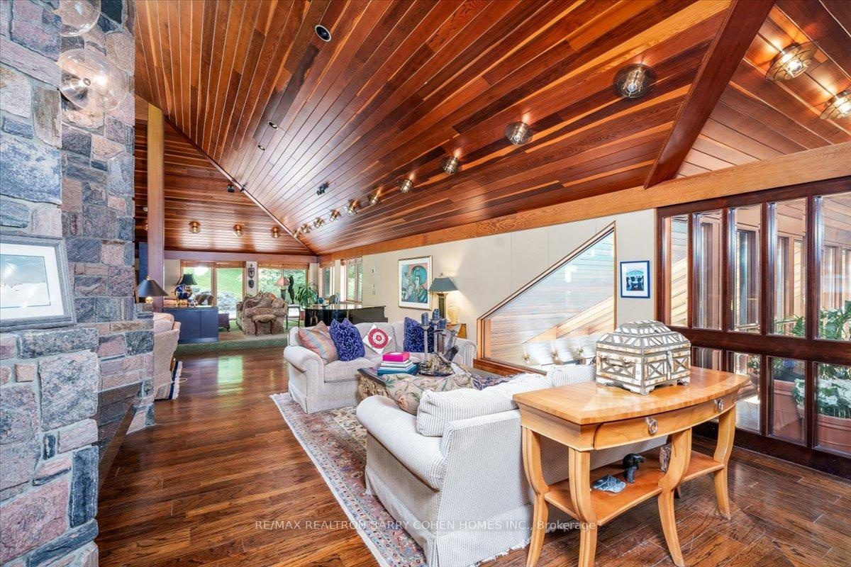 A Rarely Offered 15,000SqFt Prestigious Estate On An Exclusive Cul-De-Sac Bordering Aurora's Exclusive Beacon Hall Golf Club. Nestled Amid A Premium 4-Acre Lot! The Property's Severance Potential Provides An Added Investment Opportunity. The Existing Estate Is An Architectural Marvel. Designed By Famed Architectural Firm Laszlo Nemeth Associates & Features Outstanding Indoor & Outdoor Entertaining Spaces Including Covered Outdoor Kitchen W/Multiple Terraces, Majestic Lawns & Forests, Plus A Bridge Leading To The Tennis Court & Tennis Pavillion. An Additional Outdoor Hot Tub Sits Beside The Swimming Pool, Highlighted By A Cascading Waterfall Feature. The Great Rm Centres Around A Striking 20ft+ 4-Sided Floor-to-Ceiling Stone Fireplace Crowned By Vaulted Ceilings & Surrounded By Wall-To-Wall Windows W/Multiple. A Large Bar, Sunken Billiard Rm, Family Rm, Grand Dining Rm & Gourmet Kitchen Complete The Main Floor Entertaining Spaces. Main Floor Primary Suite Boasts His & Hers Dressing Rooms, Spacious 9-Piece Ensuite & Private Stair To The Indoor Pool Complex Complete W/ Grotto Hot Tub W/Waterfall, Walkout To Rear Gardens, Full Service Bar & Spa Zone Featuring Marble Steam Room, Sauna, Shower Rm & Exercise Room. The Main Floor Bedrm Wing Features 2 Additional Bedrooms W/Ensuites, Spacious Office W/ Wet Bar & Powder Rm, Games Rm, Laundry, Guest Wing W/2 Bedrms Plus Ensuites. The Top-Floor Office, Complete W/An Adjacent Washroom, Presents An Idyllic Workspace Filled W/ Natural Light While Also Offering Excellent Potential To Be Converted Into An Additional Bedrm. Included Is A 1-Bedrm Self-Contained Apartment W/Separate Entrance For In-Laws Or Staff Including Kitchen, Bathrm & Living Rm. A Rare Offering W/Unmatched Amenities, Luxurious Privacy, Investment & Development Potential, Conveniently Located Close To St. Andrew's College, St Anne's School, The Country Day School, & Villanova. Steps to Beacon Hall Golf Course, Close To Magna Golf Club & Several Club Link Courses.