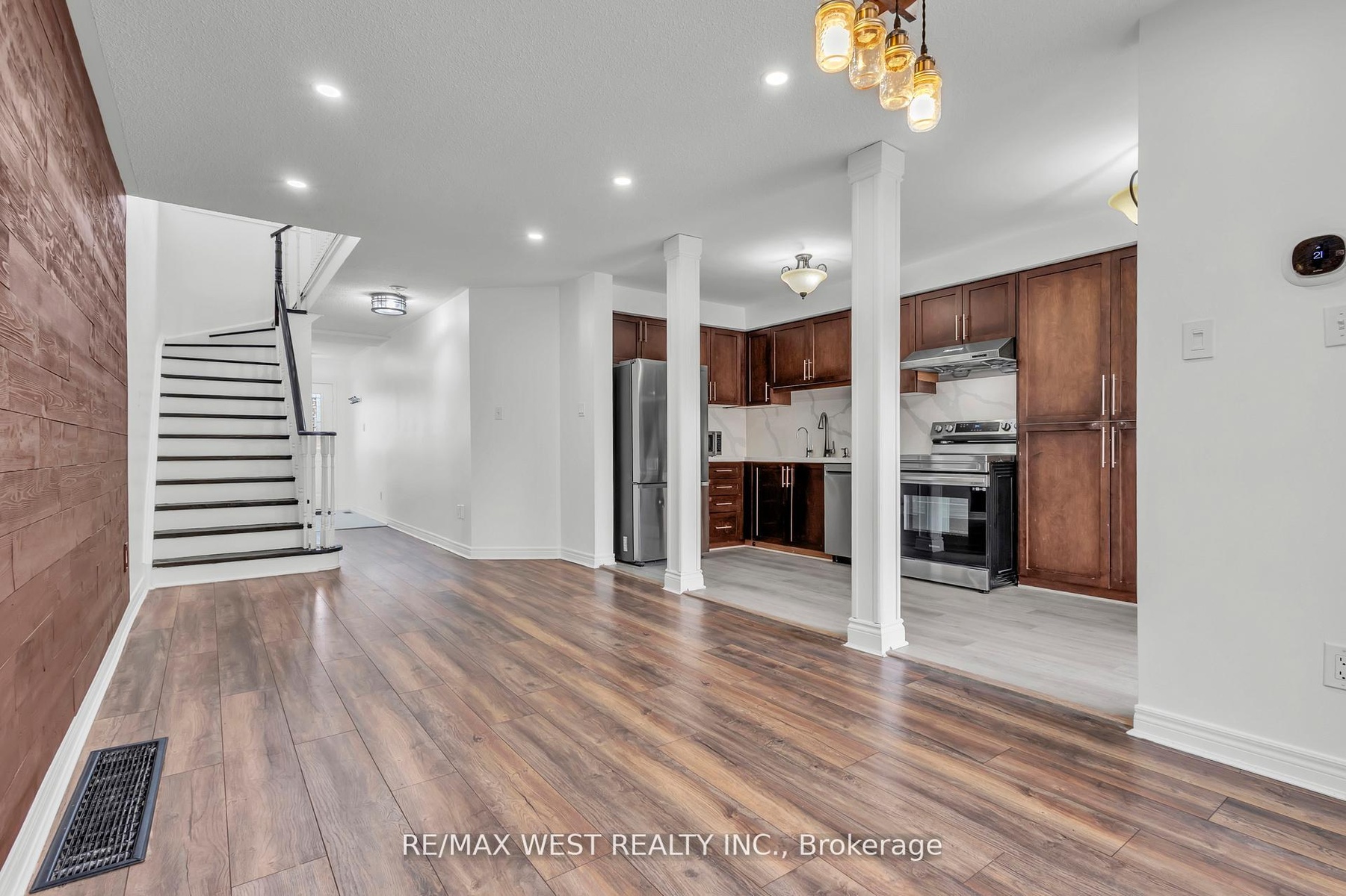 Welcome to 3865 Allcroft Road, a freshly painted, well-maintained 3-bedroom, 3-bathroom freehold townhome located in the heart of Lisgar, one of Mississauga's most family-friendly and convenient neighbourhoods. This move-in-ready home is ideal for families, professionals, or newcomers seeking comfort, space, and excellent connectivity.The bright open-concept main floor features seamless flow between the living, kitchen, and family areas, with carpet-free flooring throughout, modern lighting, and large windows creating a clean and airy atmosphere. The living room is highlighted by a custom wood accent wall, adding warmth and character.The modern kitchen offers quartz countertops and backsplash, ample cabinetry, and updated appliances (2022), with open sightlines ideal for everyday living and entertaining.Upstairs features three generously sized bedrooms, including a spacious primary bedroom with a custom feature wall. Secondary bedrooms are bright and versatile, suitable for children, guests, or a home office.All three bathrooms have been tastefully updated with contemporary vanities, modern finishes, and stylish lighting. The fully finished basement provides flexible additional living space, perfect for a media room, play area, or work-from-home setup.Enjoy a private, fully fenced backyard with a raised deck, ideal for outdoor dining and summer BBQs. Prime location just a 3-minute walk to Mississauga Derry Woods YMCA Child Care Centre, and close to schools, parks, Lisgar GO Station, major highways (401/403/407), shopping, and restaurants.